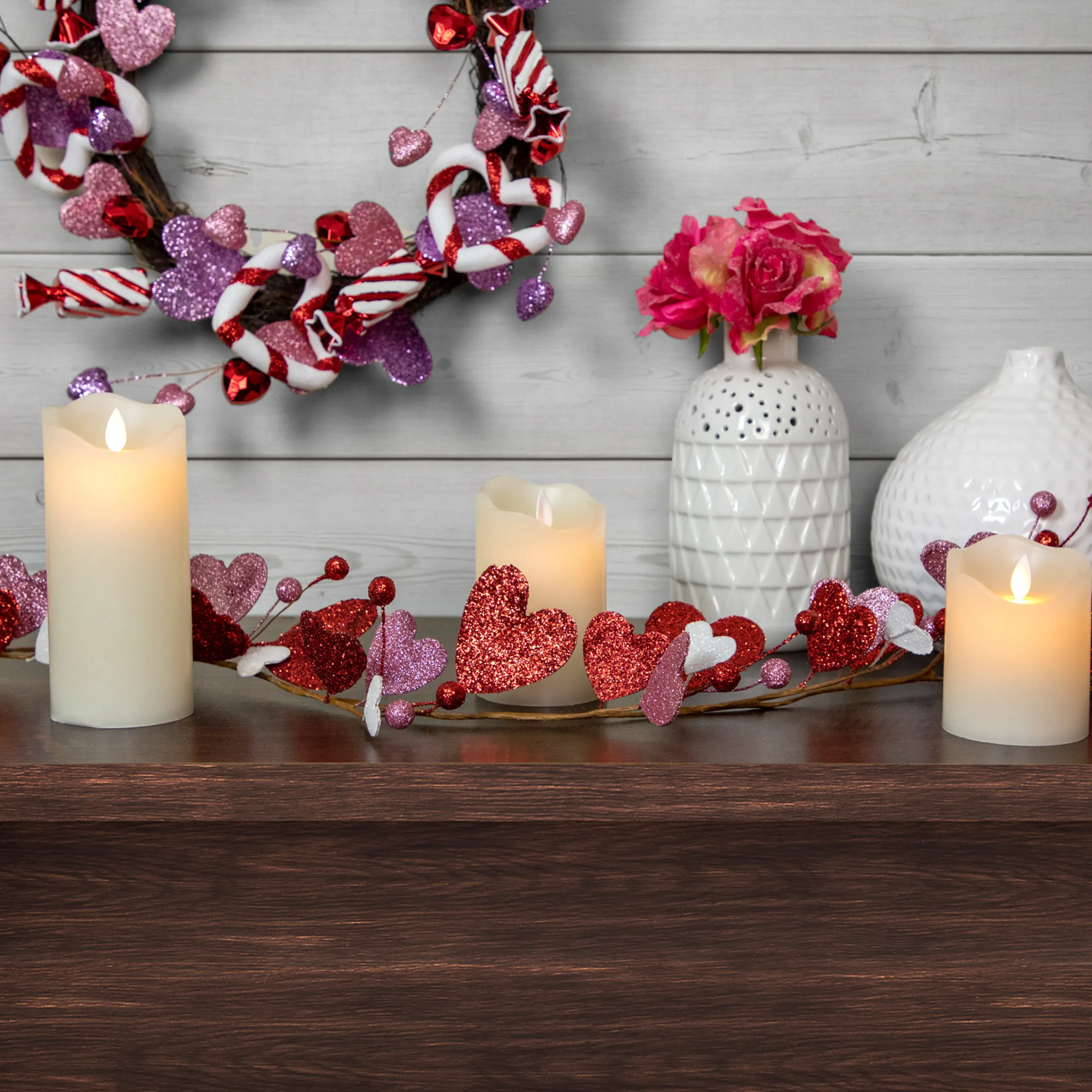 Add A Touch Of Romance With This Valentine’s Day Garland. This Garland Features A Captivating Blend Of Red, Pink, And White Glitter Hearts And Accented With Glittered Berries, That Will Shimmer With Every Movement. Hang It On Walls, Doorways, Or Mantels To Create A Dreamy Atmosphere That Will Set Hearts Aflutter. Perfect For Spreading Love And Joy, It Is A Must-Have Decoration For Those Seeking To Make This Special Occasion Truly Unforgettable.