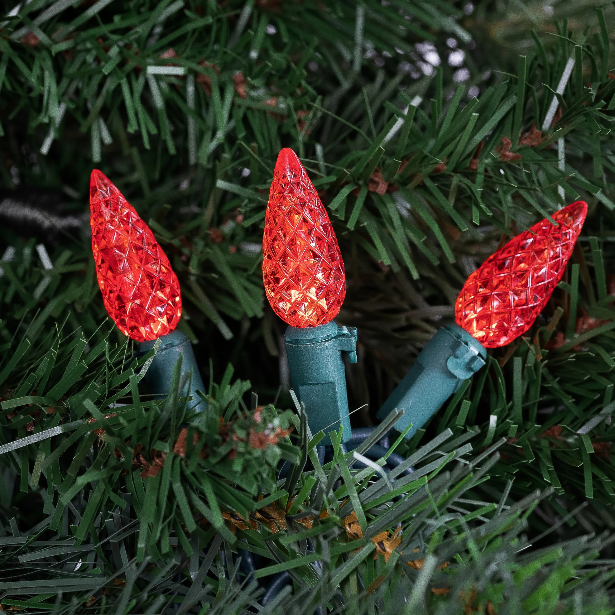 Get Into The Holiday Spirit With Our Set Of Red Led Faceted C6 Christmas Lights! With A Lengthy Green Wire, These Lights…