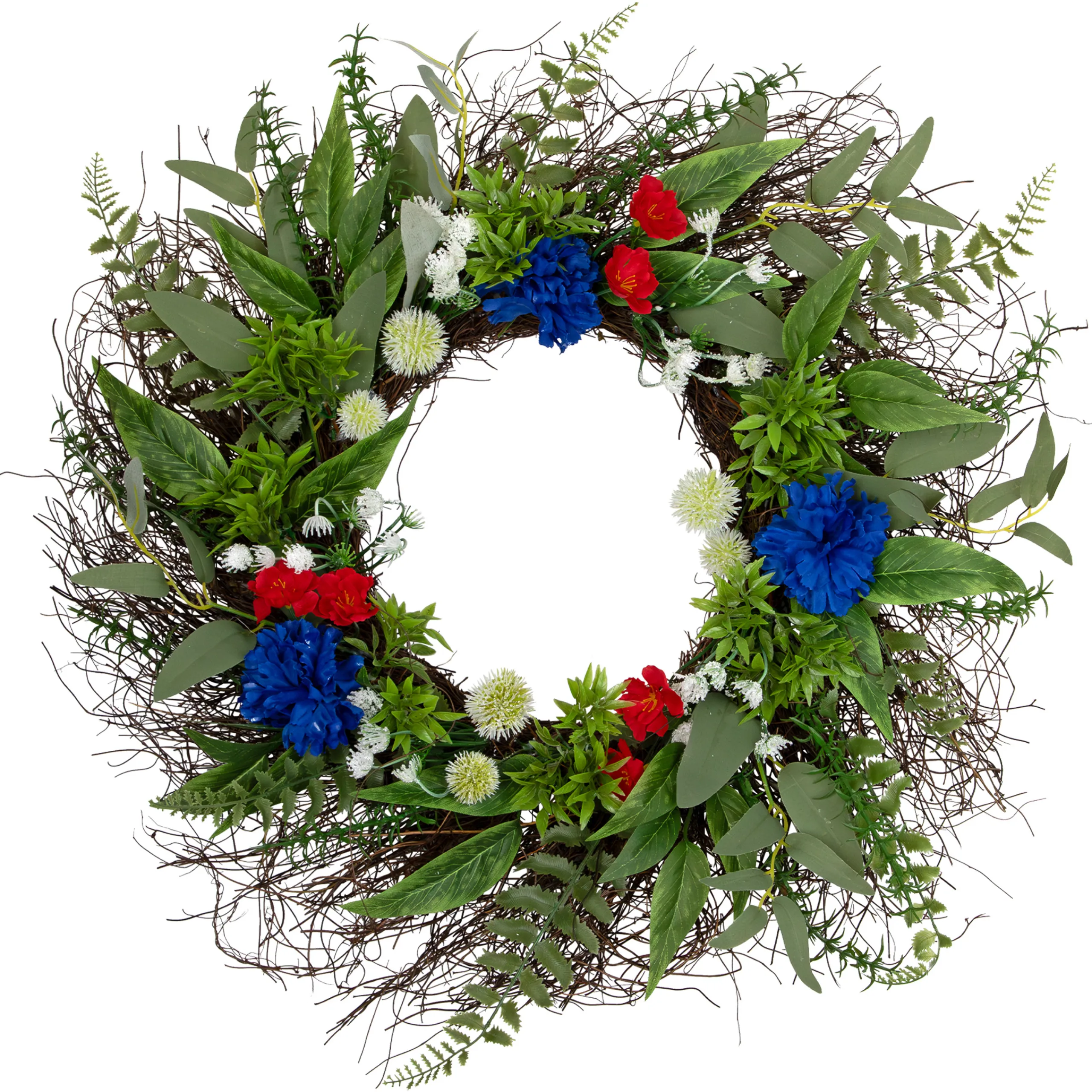 Northlight Americana Mixed Floral Patriotic Wreath, 24-Inch, Unlit