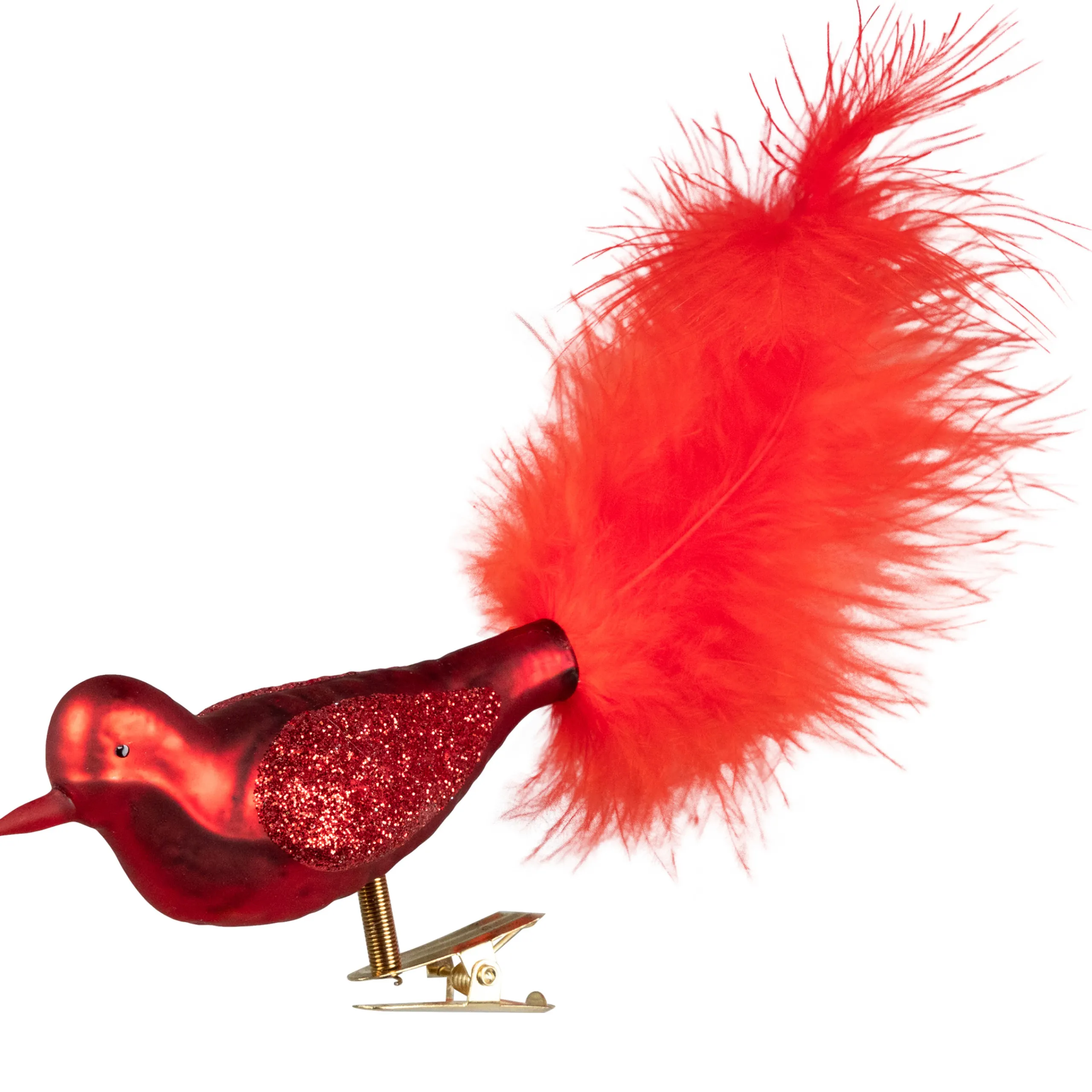 Northlight Animals>5.5″ Red Bird With Feather Tail Glass Clip On Christmas Ornament
