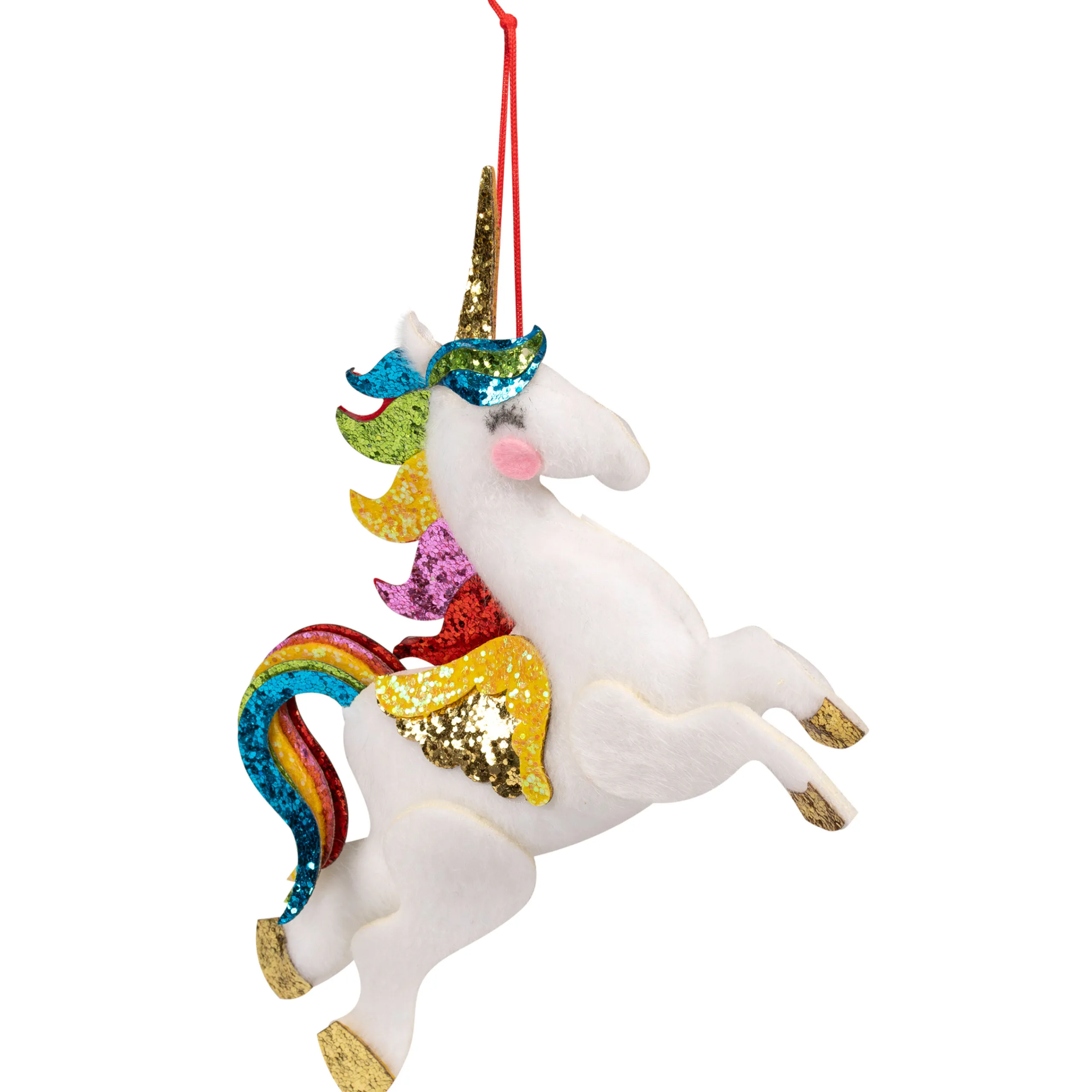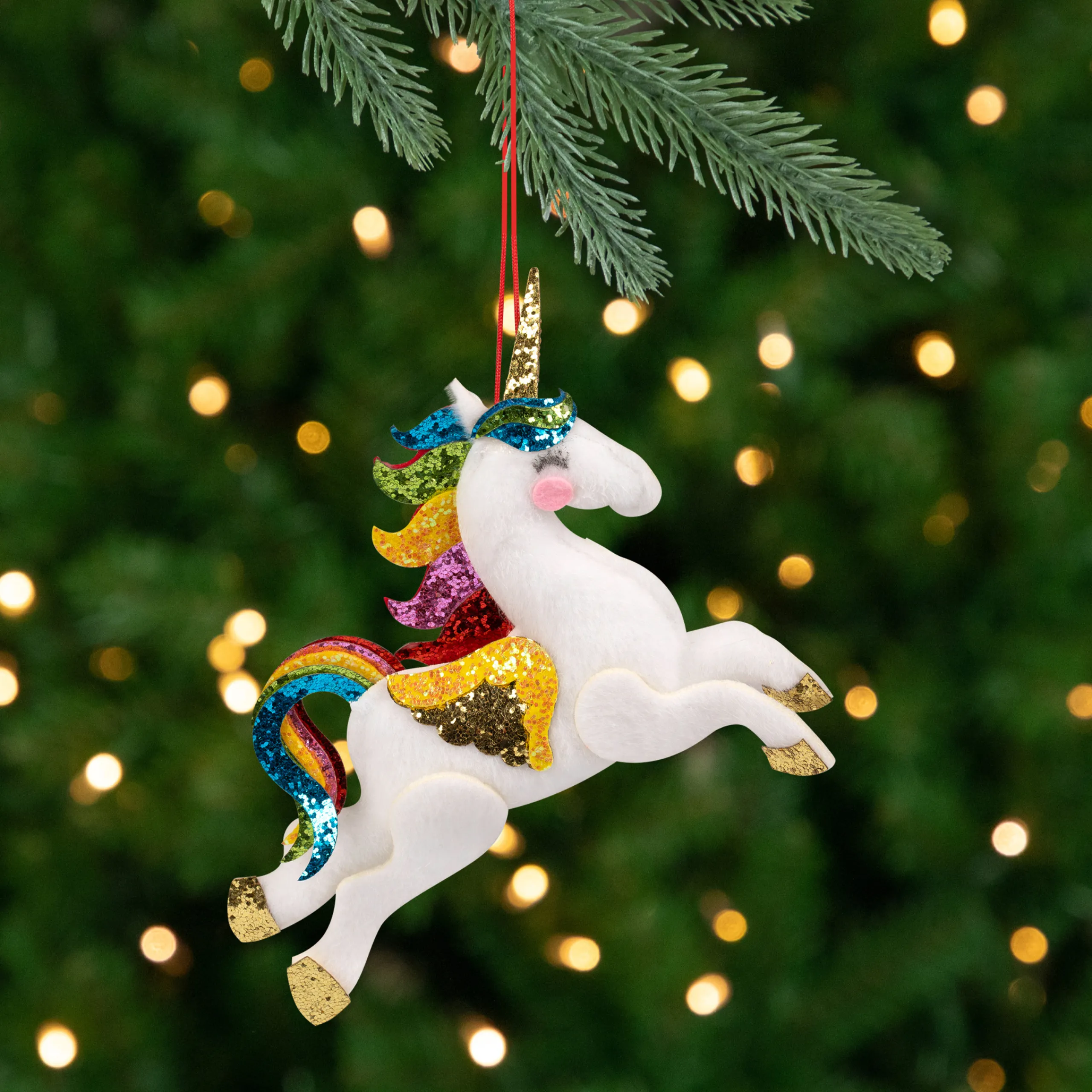 Add This Unique And Fun Plush Christmas Ornament To Your Holiday Decor. This Adorable Unicorn Features A Rainbow Glittered Mane And Tail. Accented With Gold Glittered Hooves, Horn And Wing. This Ornament Will Add A Little Sparkle To Your Tree, Your Mantle, Window, Or Anywhere You Wish To Add A Little Bit Of Fun.