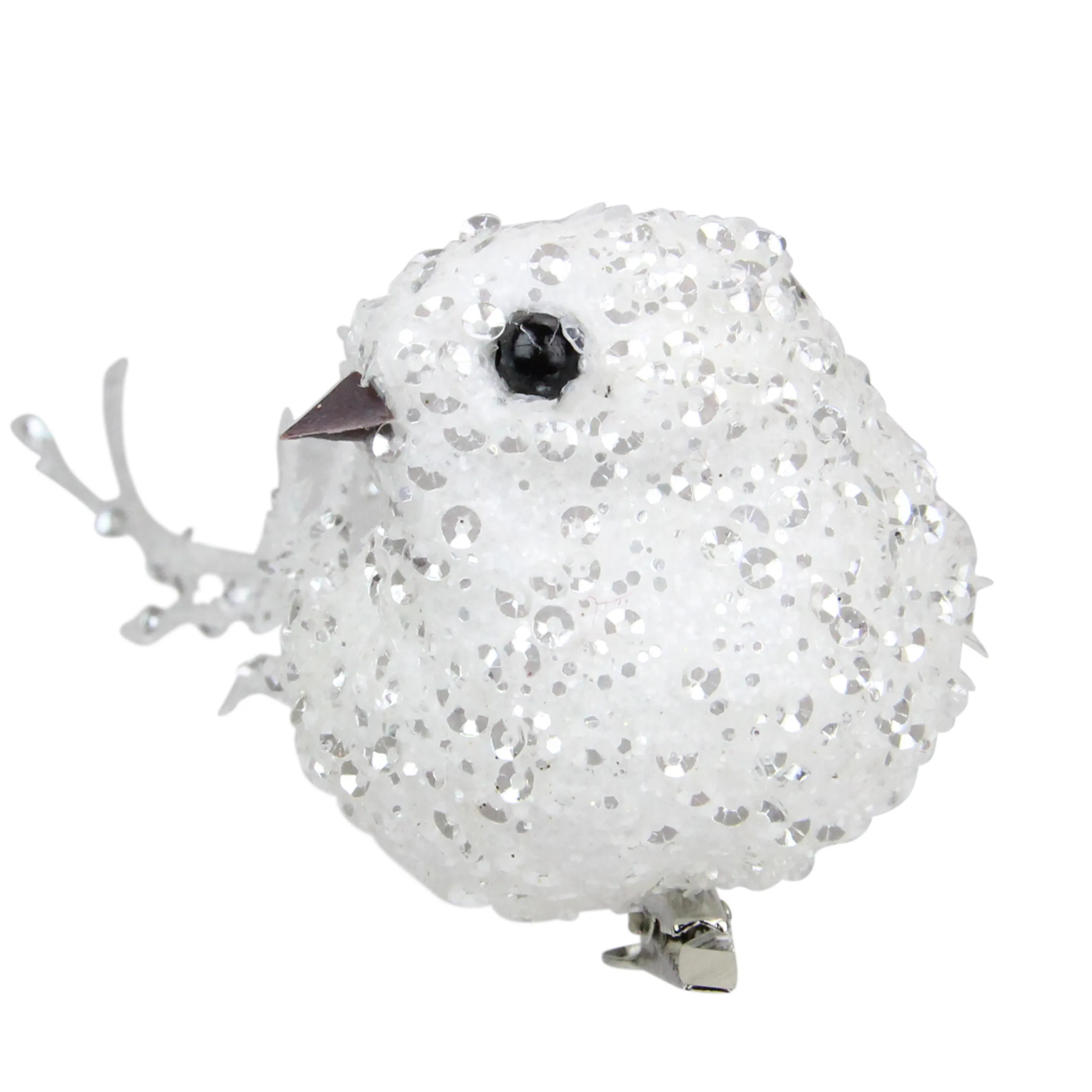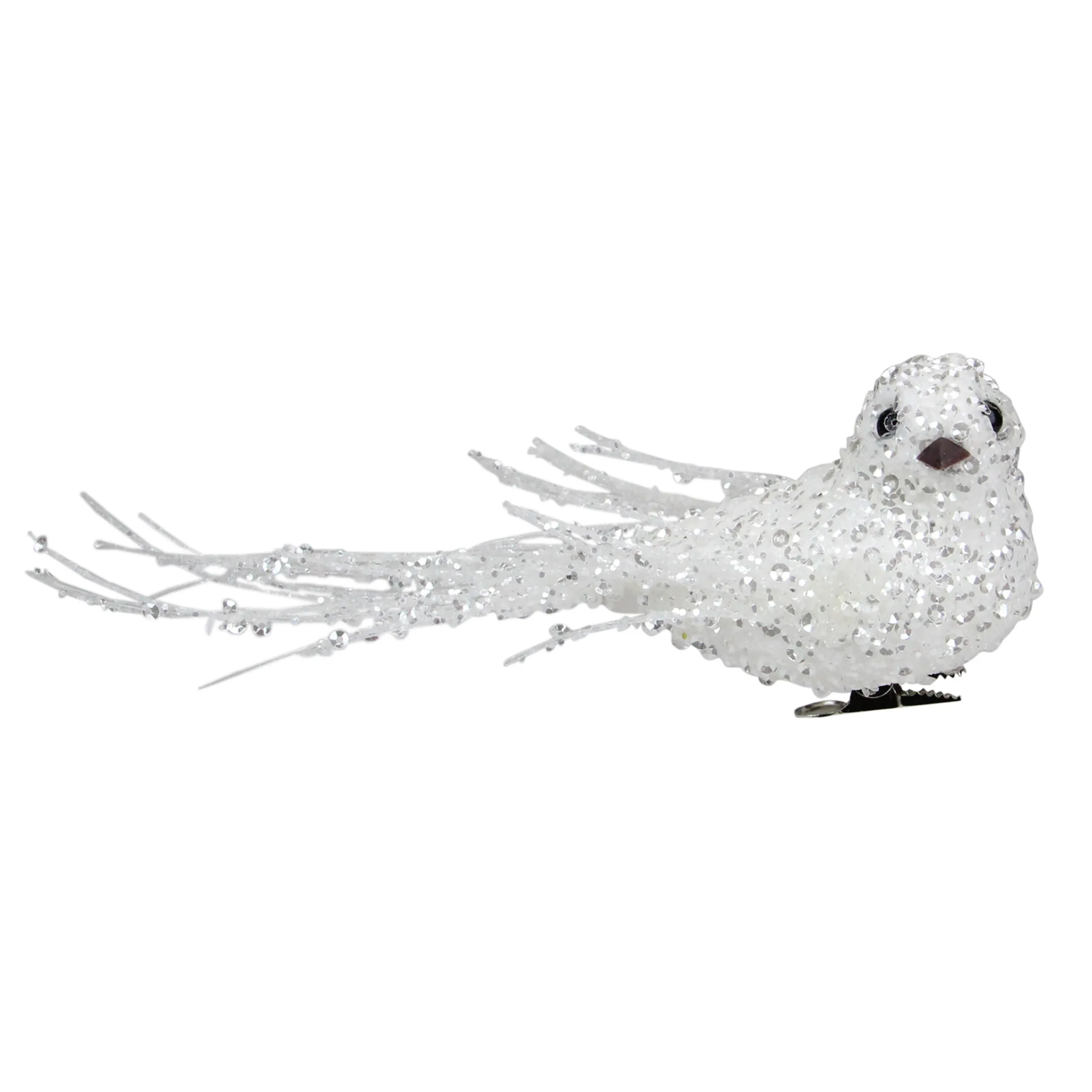 Northlight Animals>7.5″ White And Silver Sequined Bird Christmas Ornament With Clip