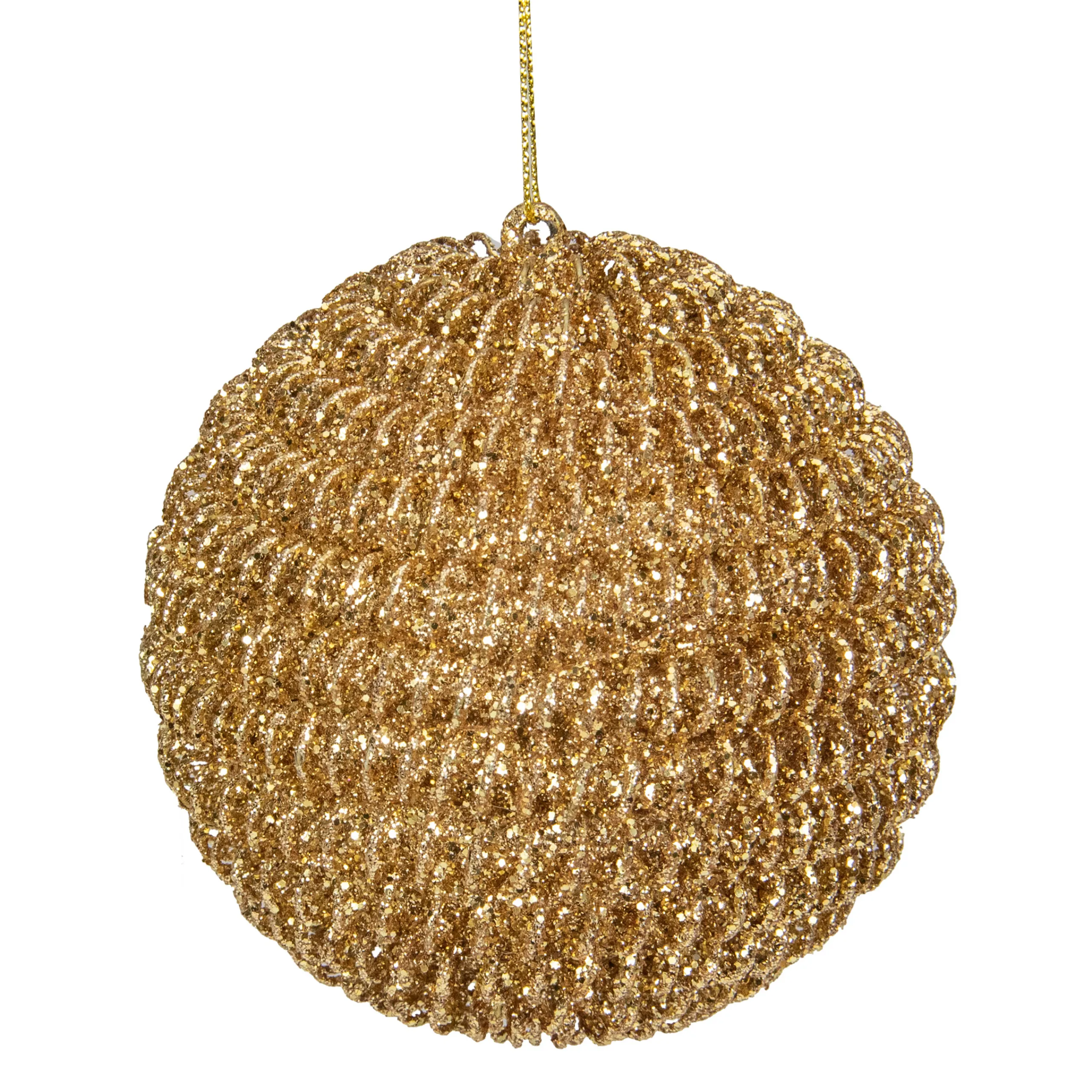 Northlight Balls>4″ Gold Glitter Spiral Coiled Wire Christmas Ball Ornament