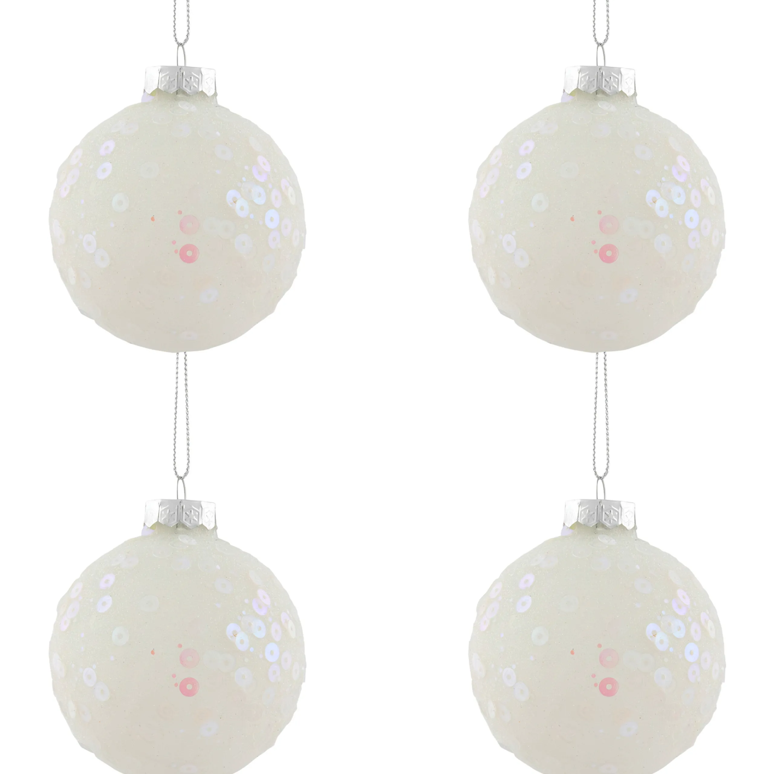 Northlight Balls>4Ct White Sequined Shiny Christmas Ball Ornaments 2.75″ (70Mm)