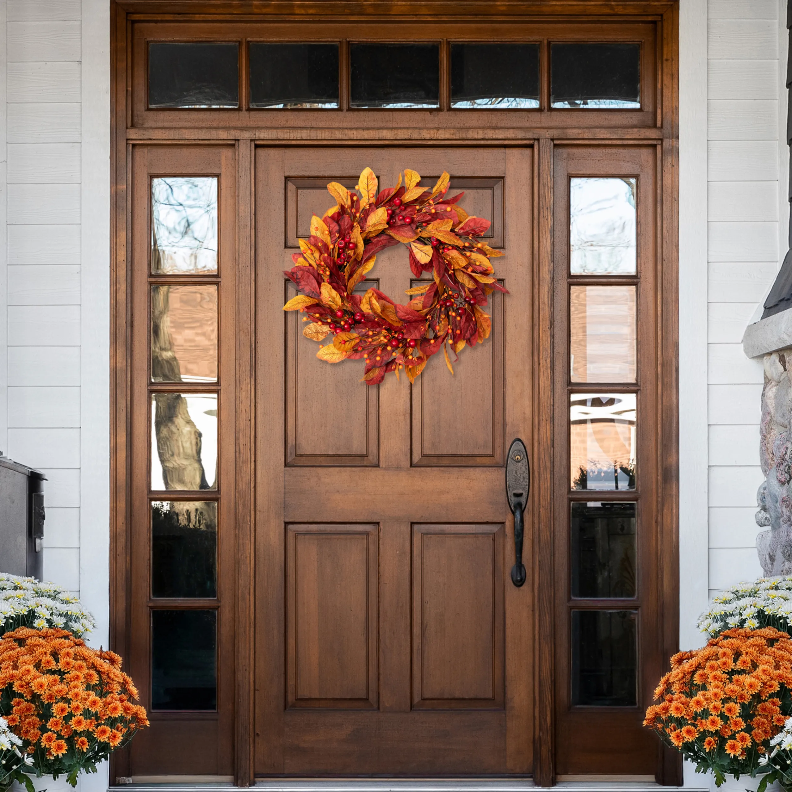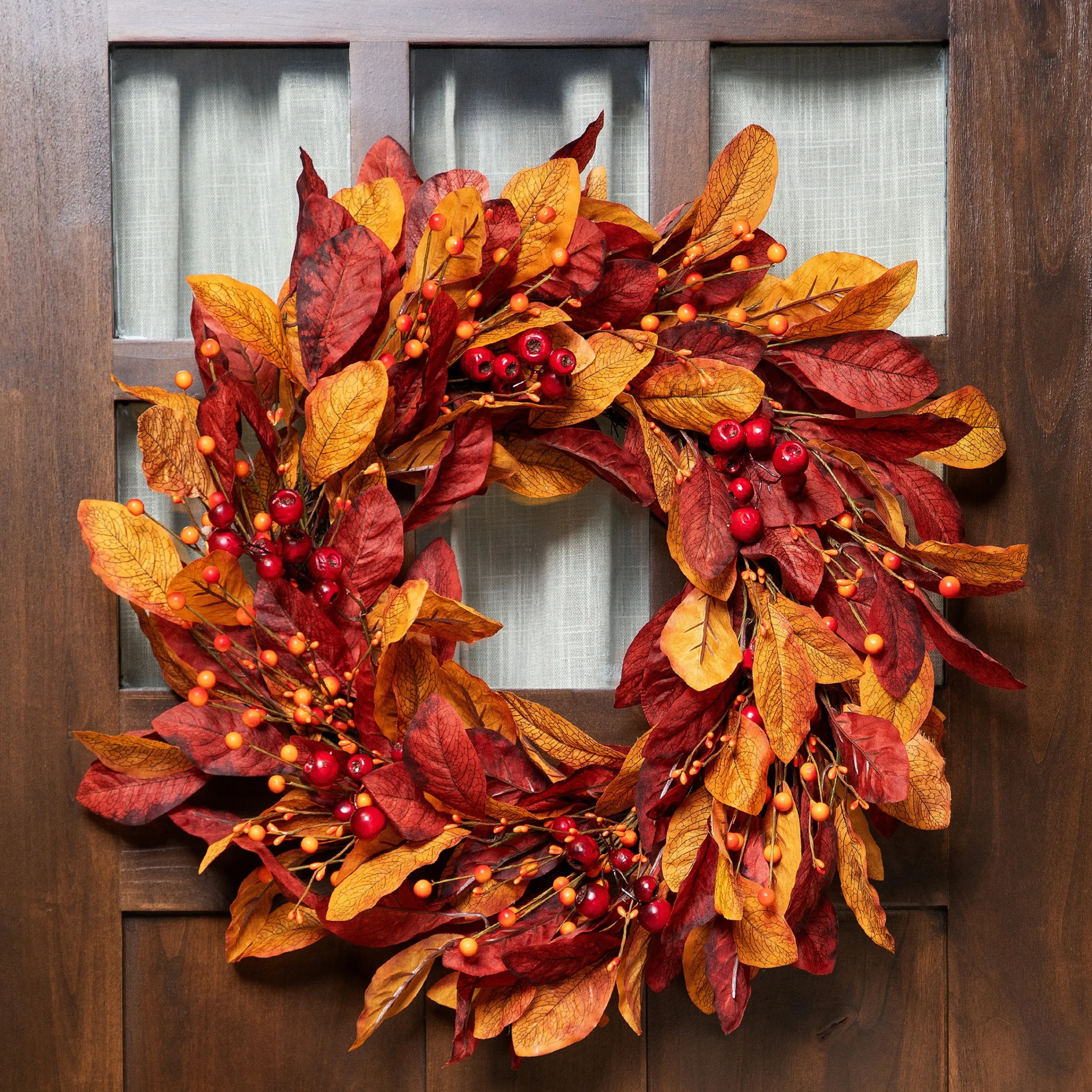 Features Red And Orange Leaves Accented With Berries