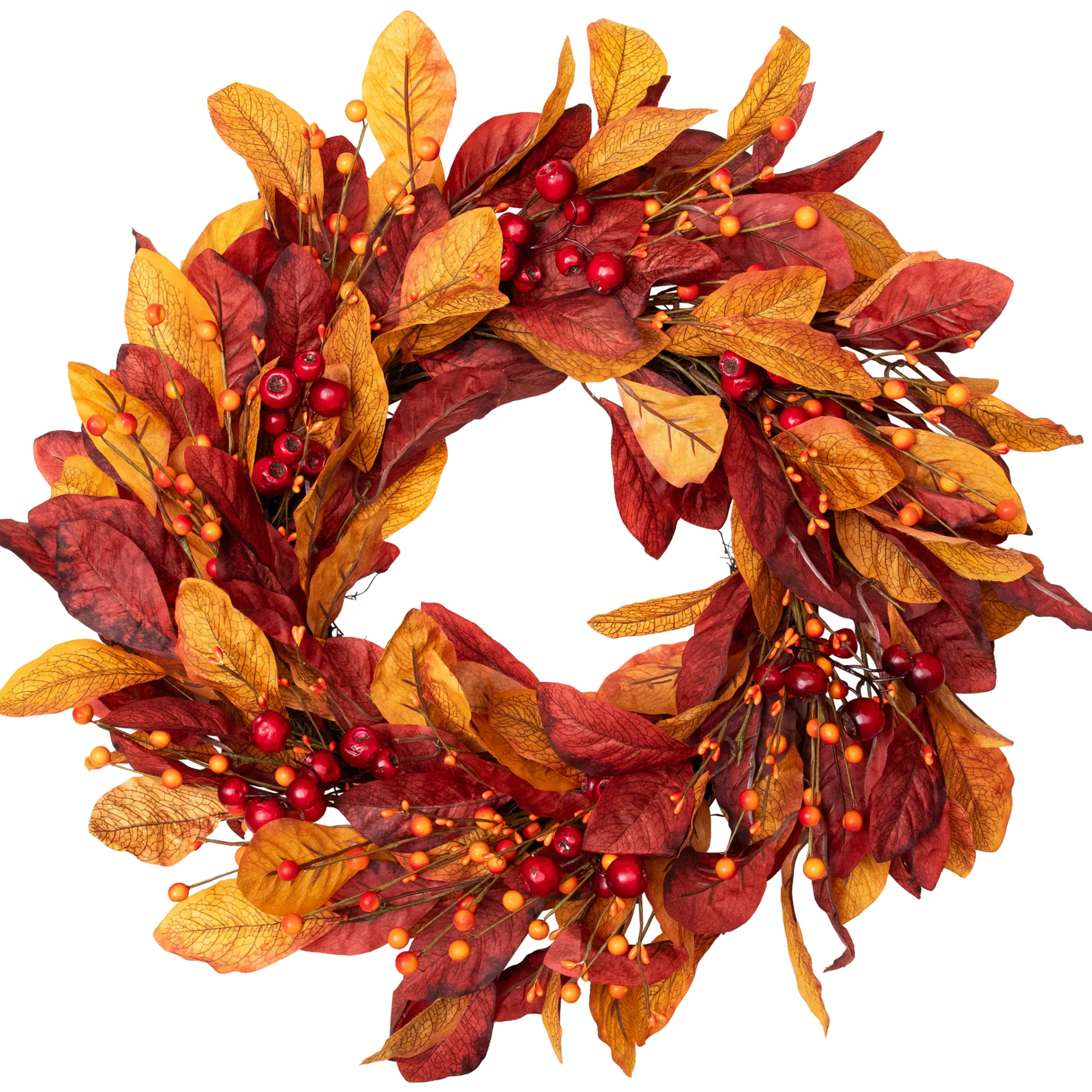Northlight Berries With Leaves Artificial Fall Harvest Twig Wreath, 24-Inch, Unlit