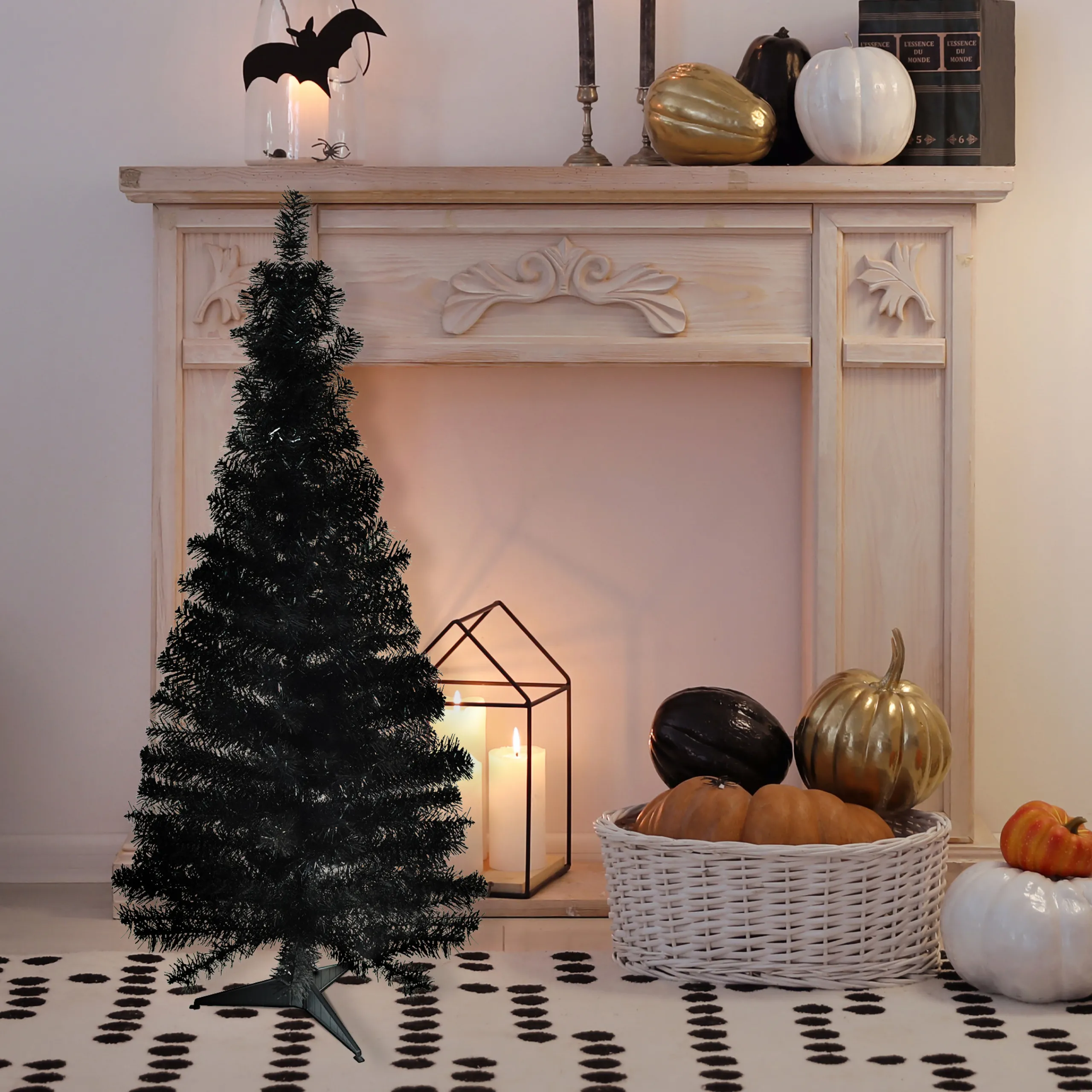 Northlight Black Trees>4′ X 24″ Slim Black Tinsel Artificial Christmas Tree – Unlit