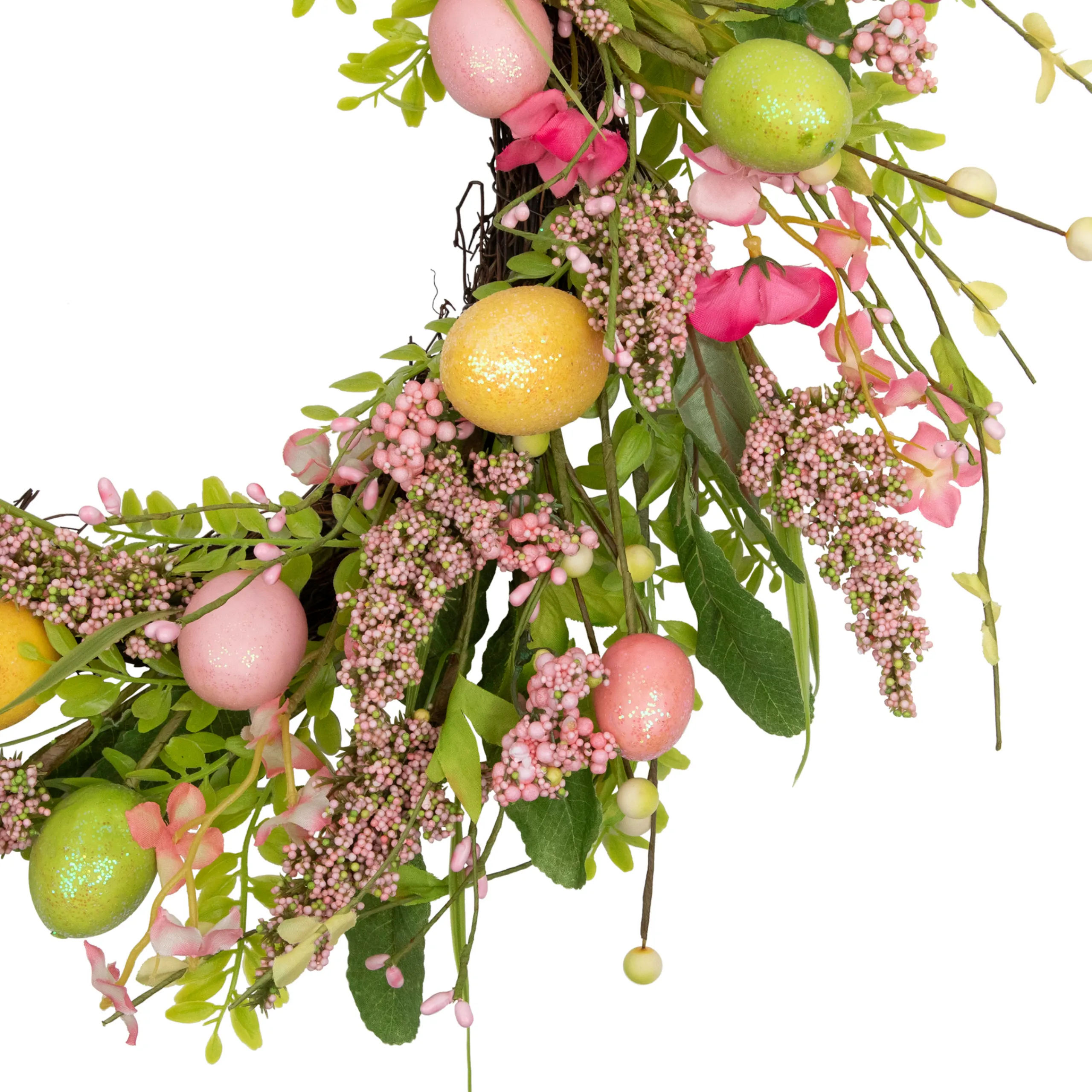 Add Bright Pops Of Color To Your Home With This Easter Egg Wreath. Featuring Realistic Silk Flowers Intertwined With A Natural Grapevine Base, What Better Way To Welcome Guests And Spring To Your Home.
