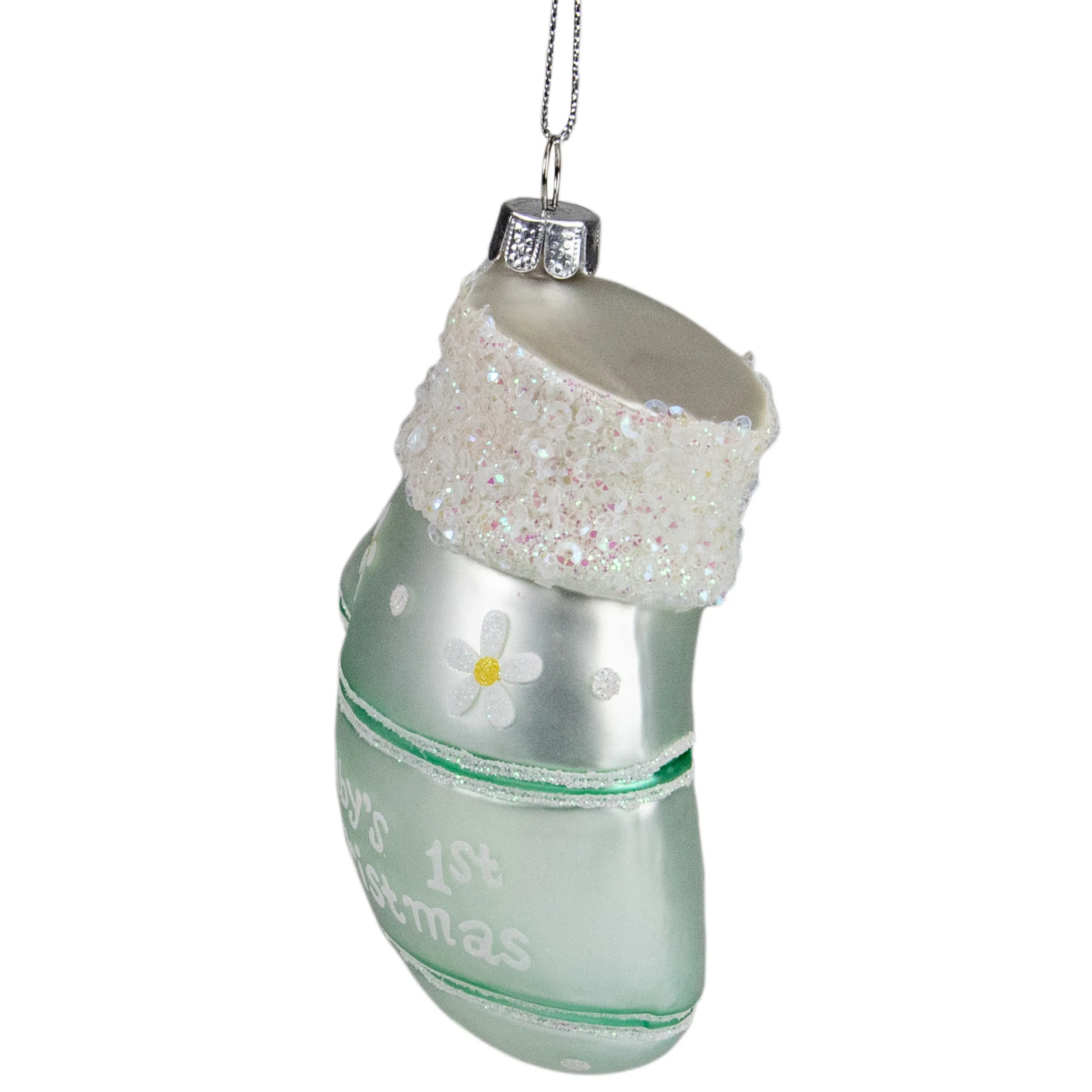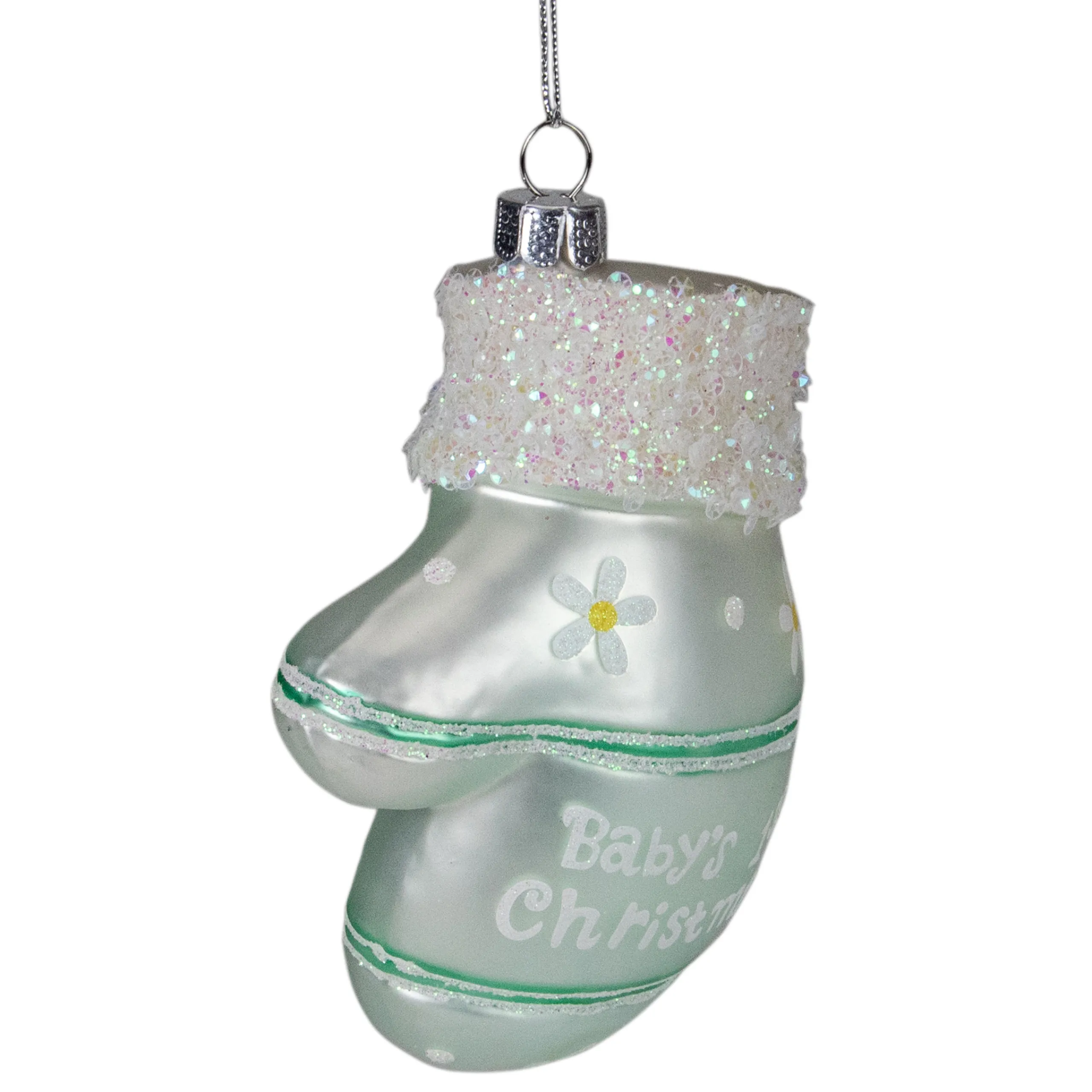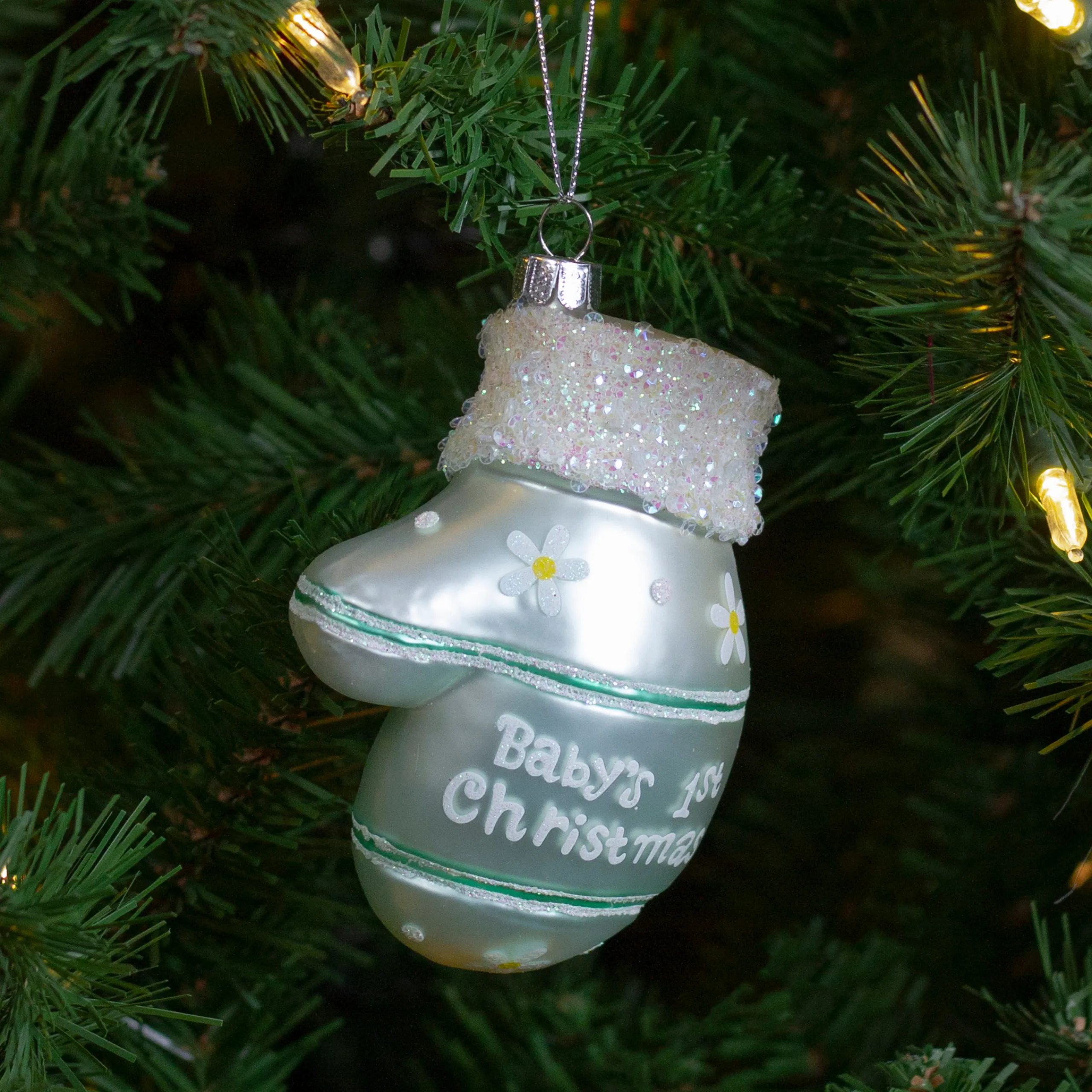 Northlight Family & Friends>4″ Baby’s 1St Christmas Mint Green Glass Mitten Holiday Ornament