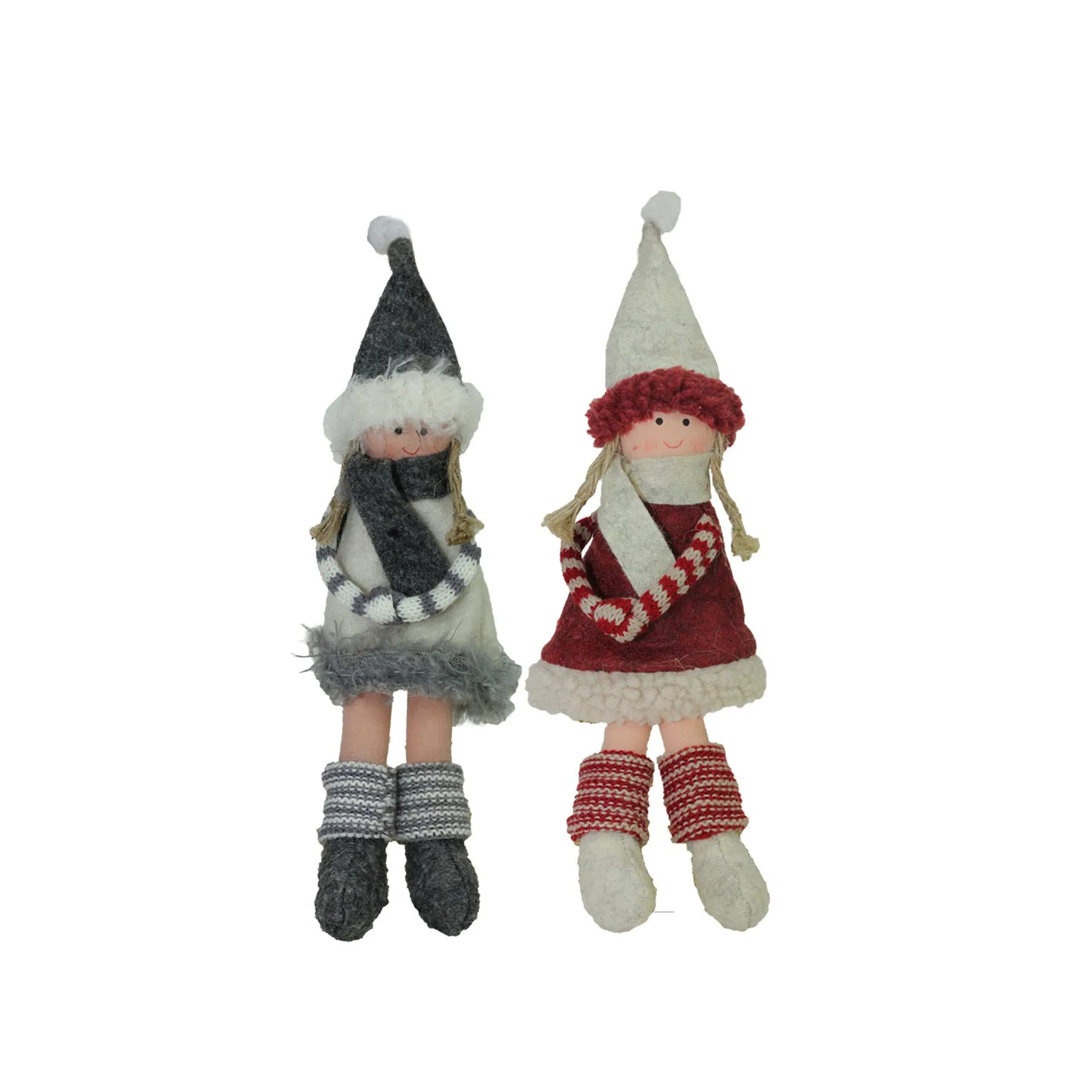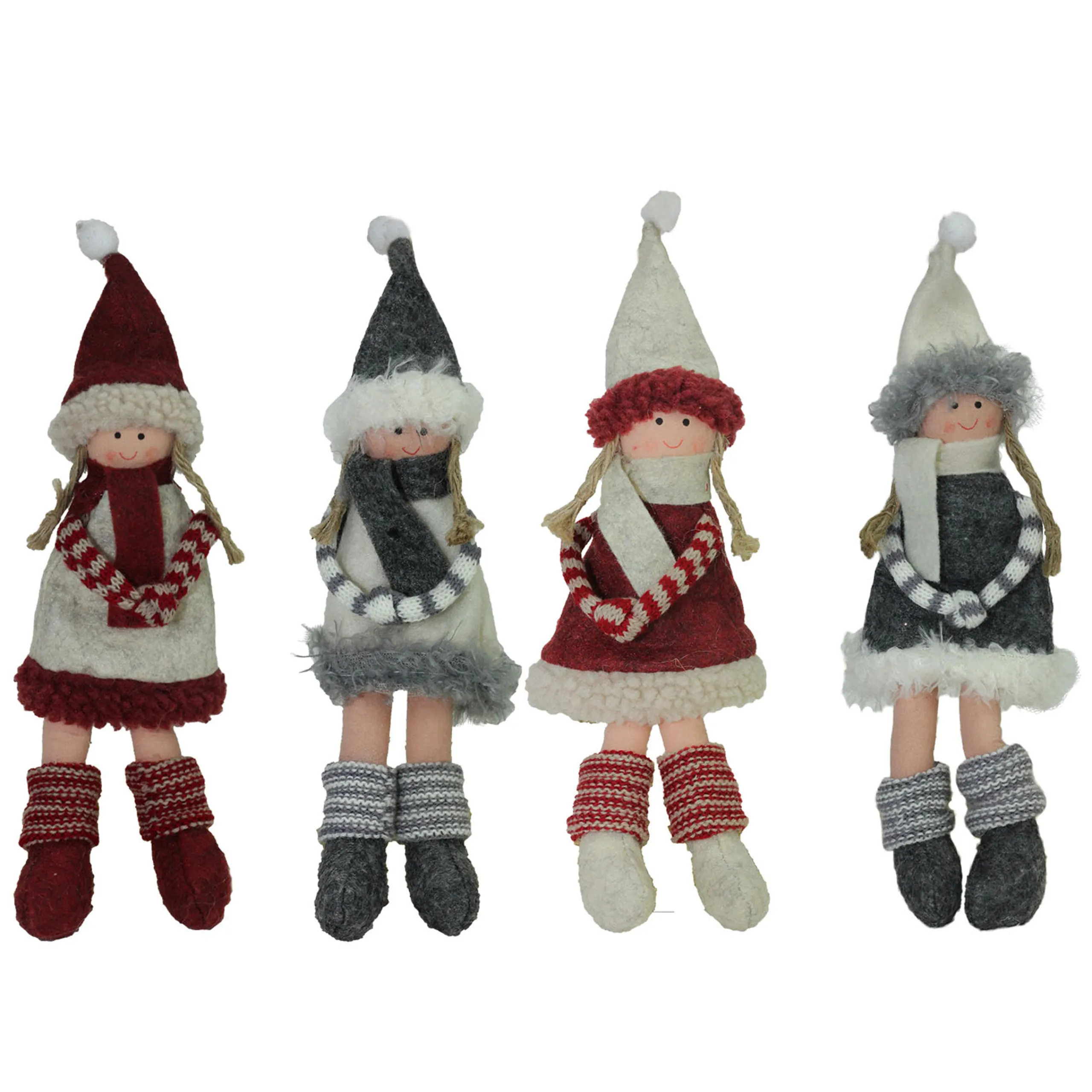 Northlight Fantasy & Sci Fi>4Ct Red And Gray Girls With Scarves Christmas Doll Ornaments 12″