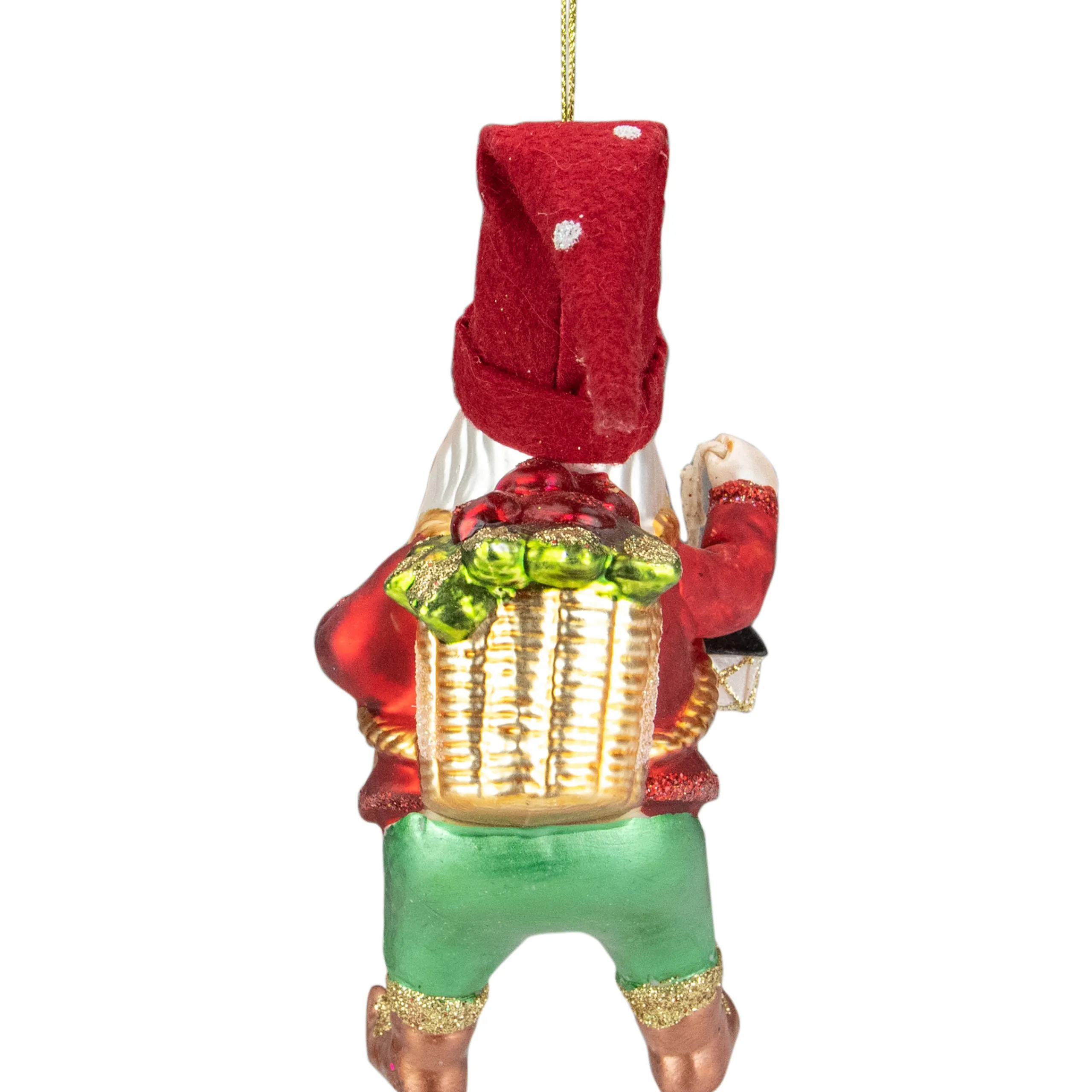 Add Some Whimsical Charm To Your Tree This Season With This Glass Gnome Ornament. Features A Gnome Holding A Lantern And Carrying A Basket Of Flowers On His Back. Cute And Colorful, This Ornament Will Bring A Smile To Everyone Season After Season.