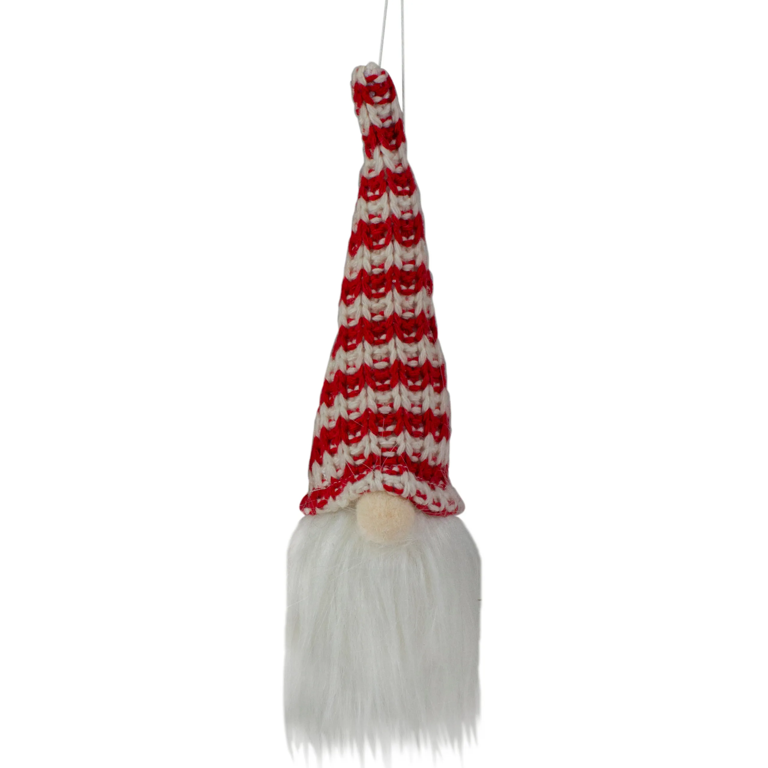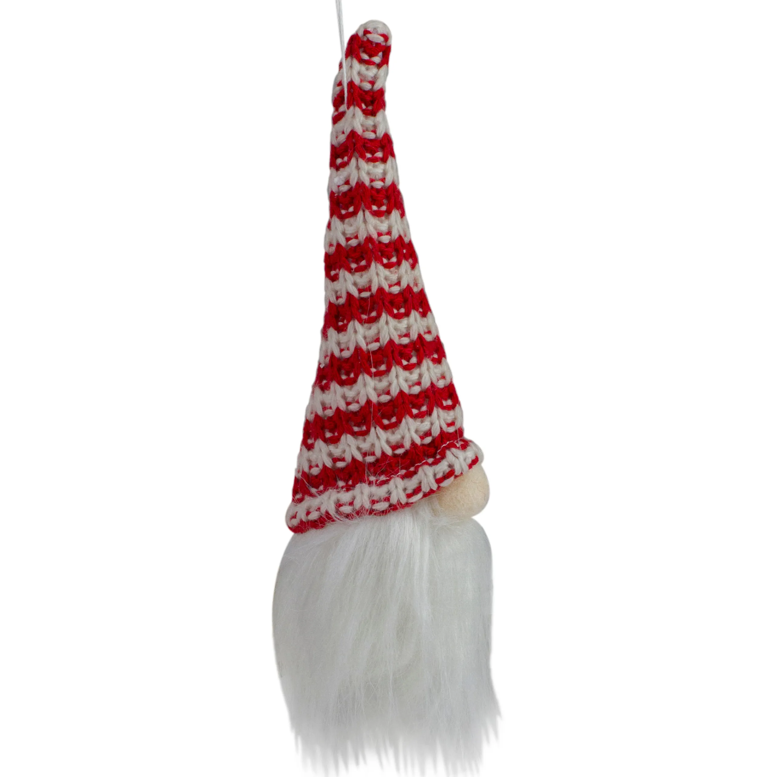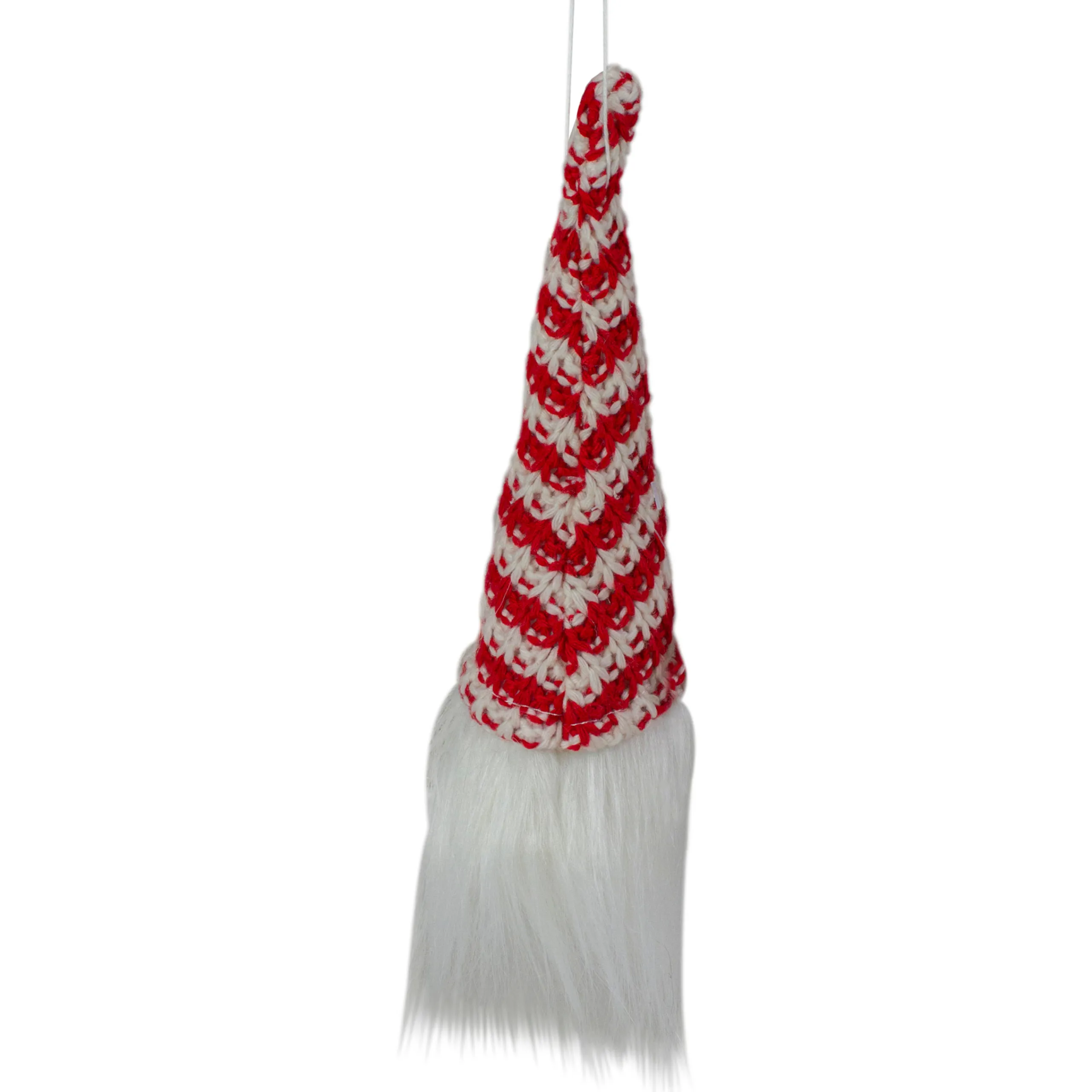 The Gnome Is Wearing A Red And White Knit Winter Hat