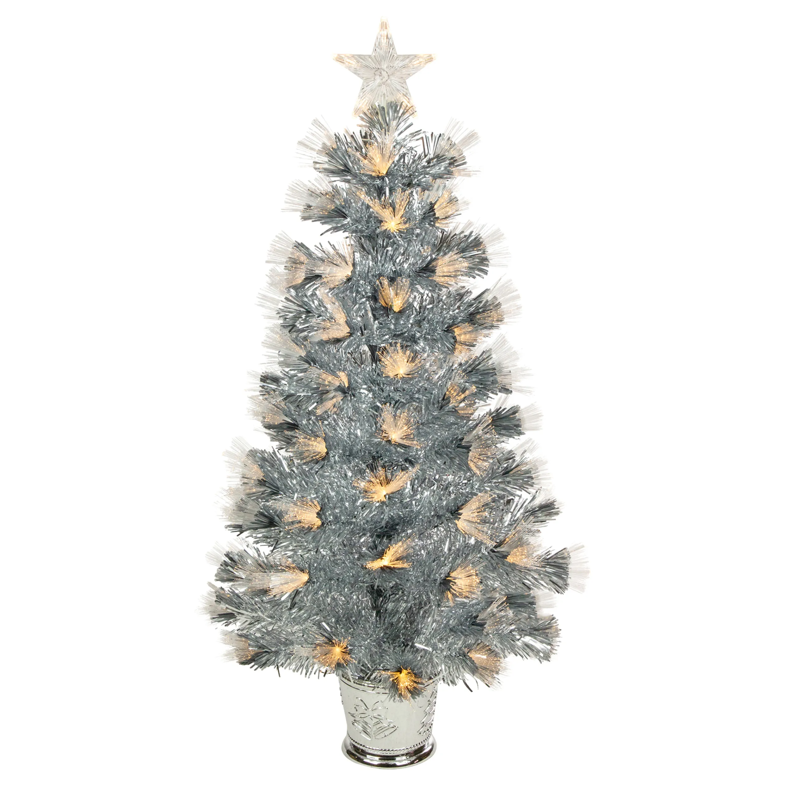 Northlight Fiber Optic Trees>3′ Pre-Lit Silver Fiber Optic Artificial Christmas Tree, Warm White Lights