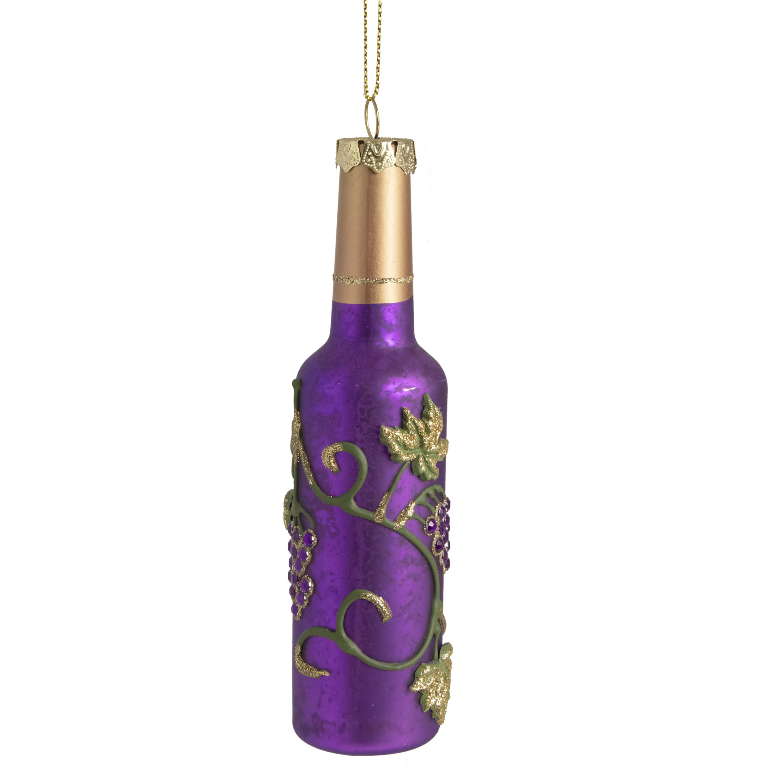 Wine Making Was Perfected In Ancient Egypt Around 3000 B.C. And It Spread Around The World Thereafter. Wine Was Once Considered To Be A Gift From The Gods And Enjoyed At Celebrations Large Or Small. Add This Glass Wine Bottle Ornament To Your Decor To Add A Bit Of Sparkle To Your Holiday Celebrations. This Mercury-Style Ornament Is Accented With Rhinestone Grapes, Grapevines, And Glitter. This Ornament Will Be The Perfect Addition To Your Tree Or The Perfect Gift For The Wine Connoisseur In Your Life.