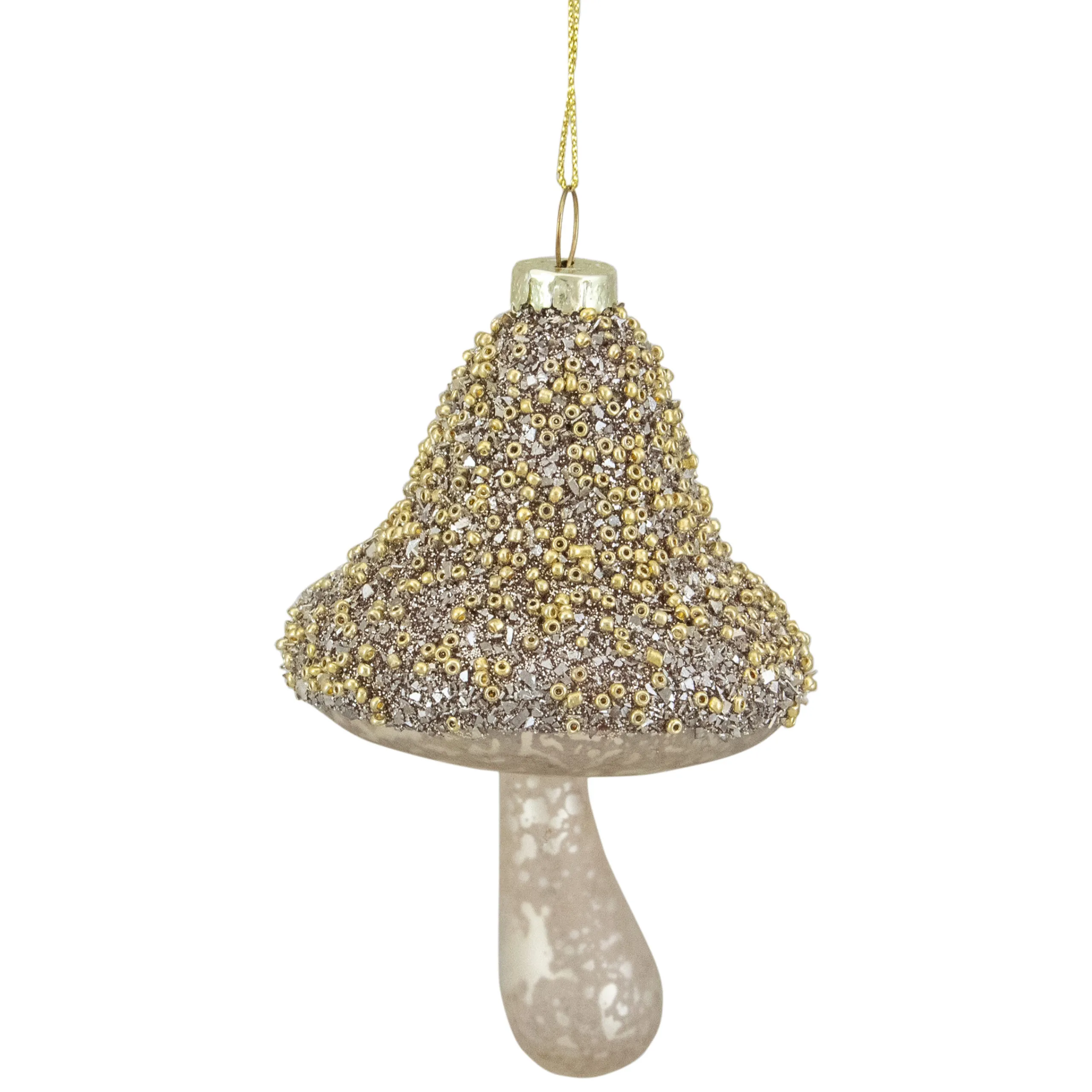 Give Your Holiday Decor A Fun Look With This Detailed Glass Ornament. This Mushroom Features Champagne Gold Mercury Glass And Is Accented With Glitter And Gold Beads. Great To Hand Out To Family Or Friends Or To Put Into Holiday Gift Bags And Stockings. This Ornament Will Look Great As An Added Decoration On Your Wrapped Christmas Gifts!