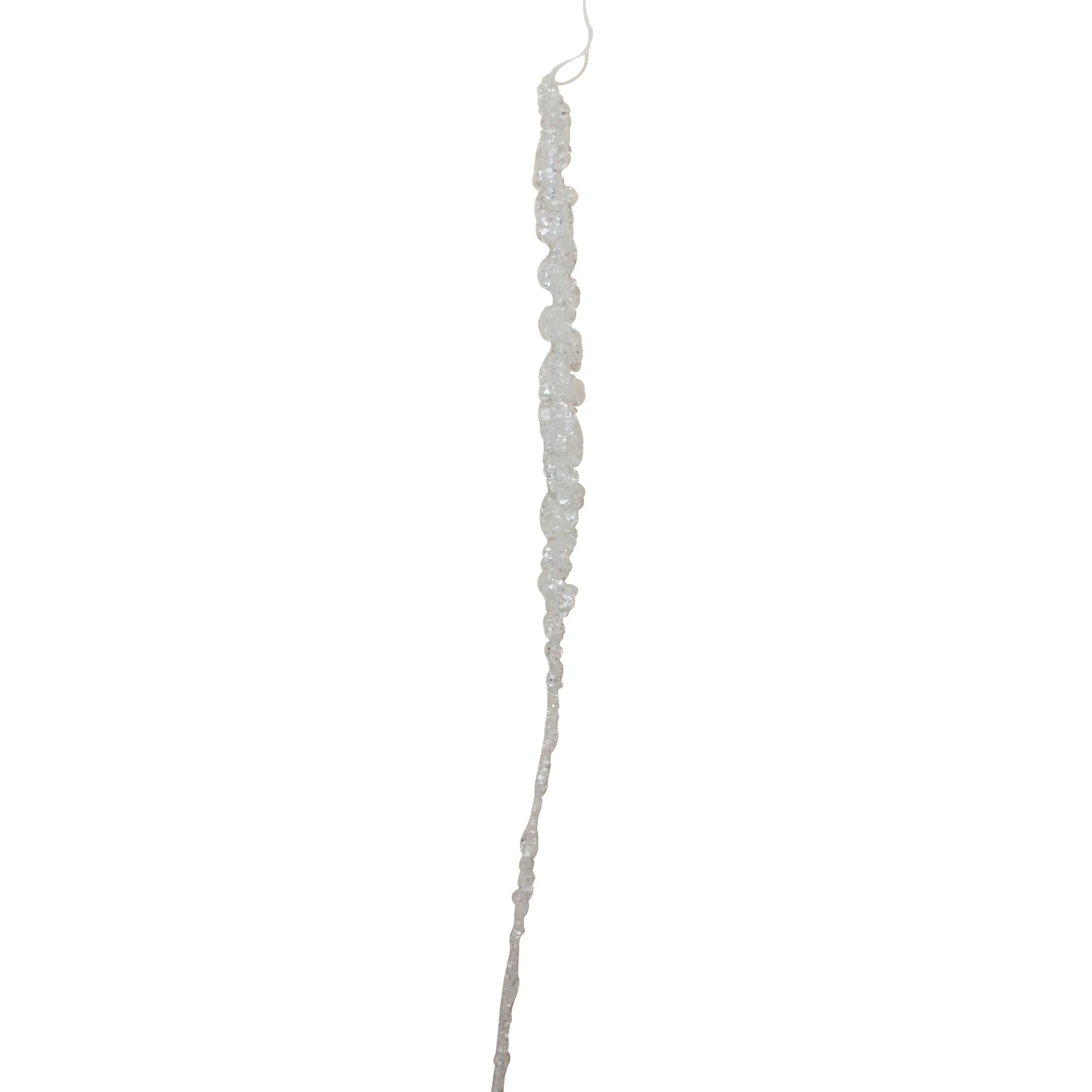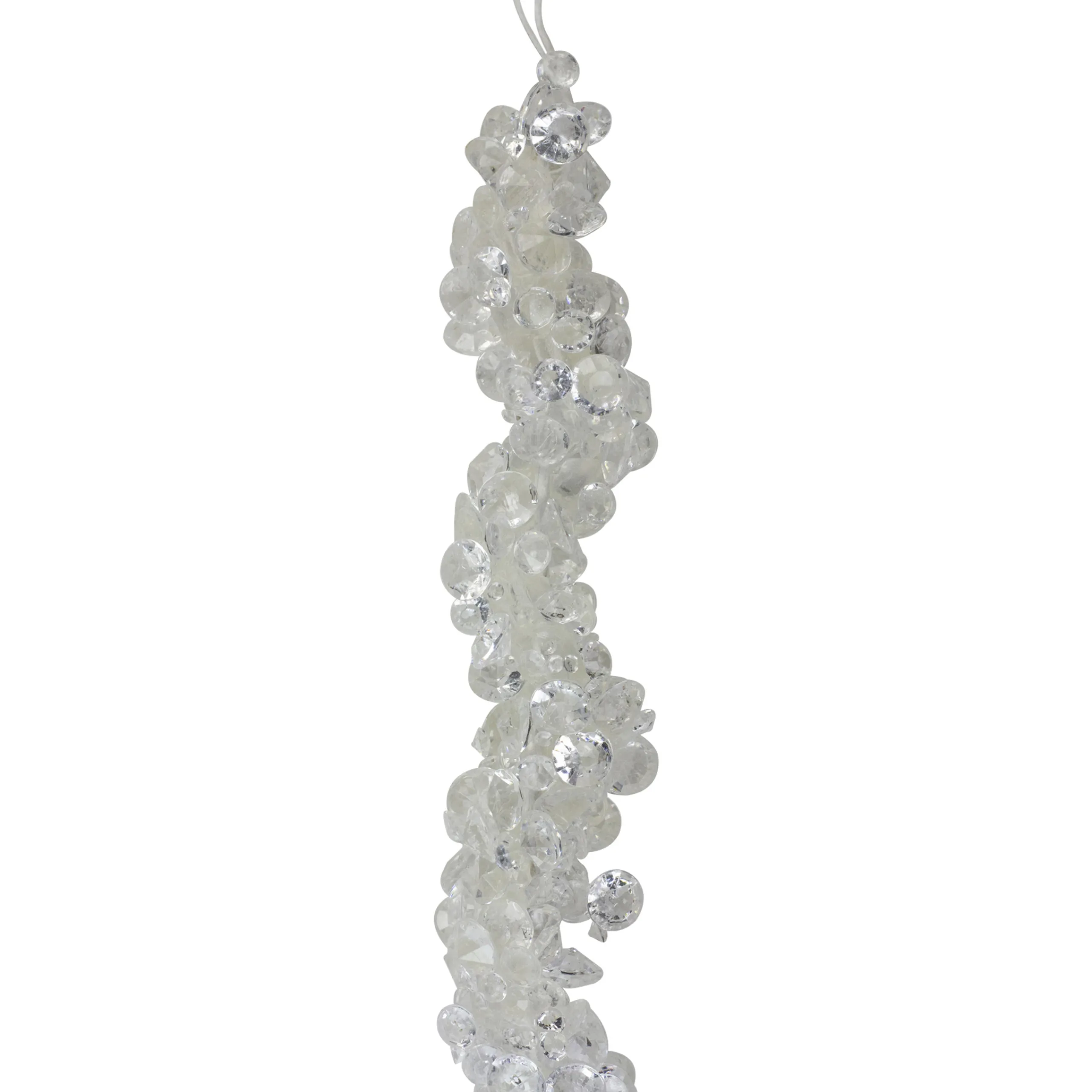 Features A Clear Icicle Ornament Made Of Acrylic Crystals In Various Sizes And Shapes On A White Wire.