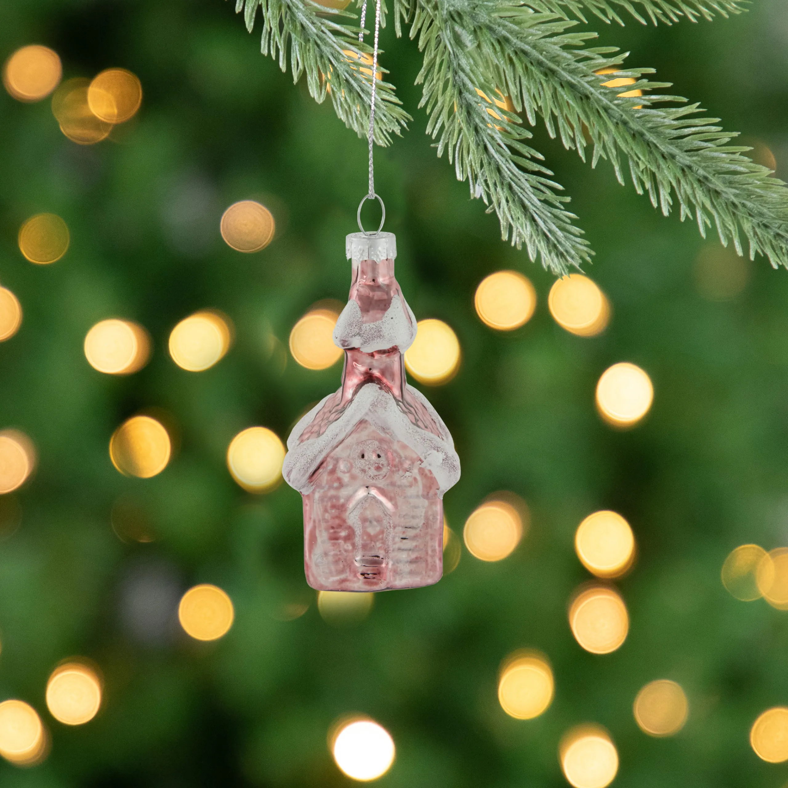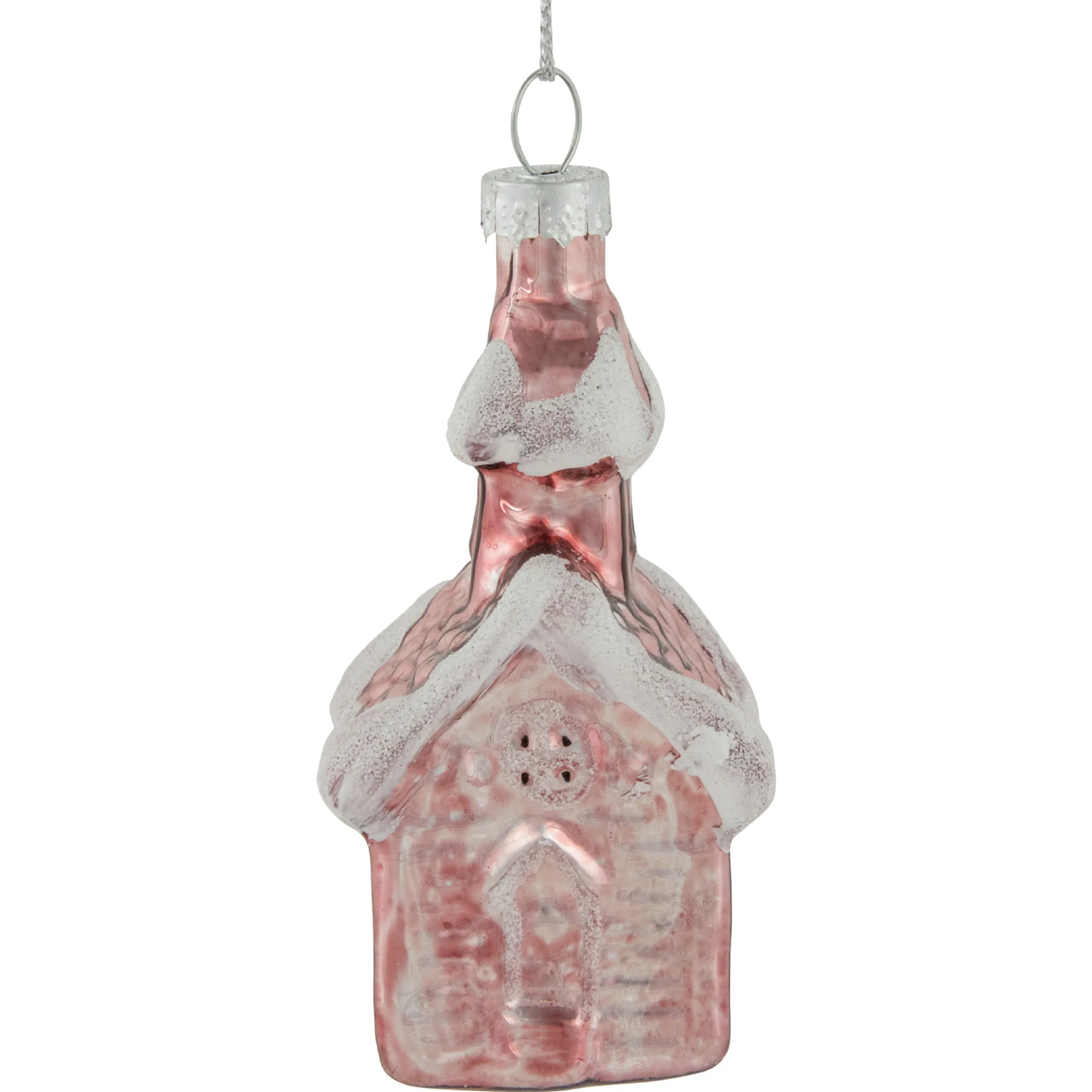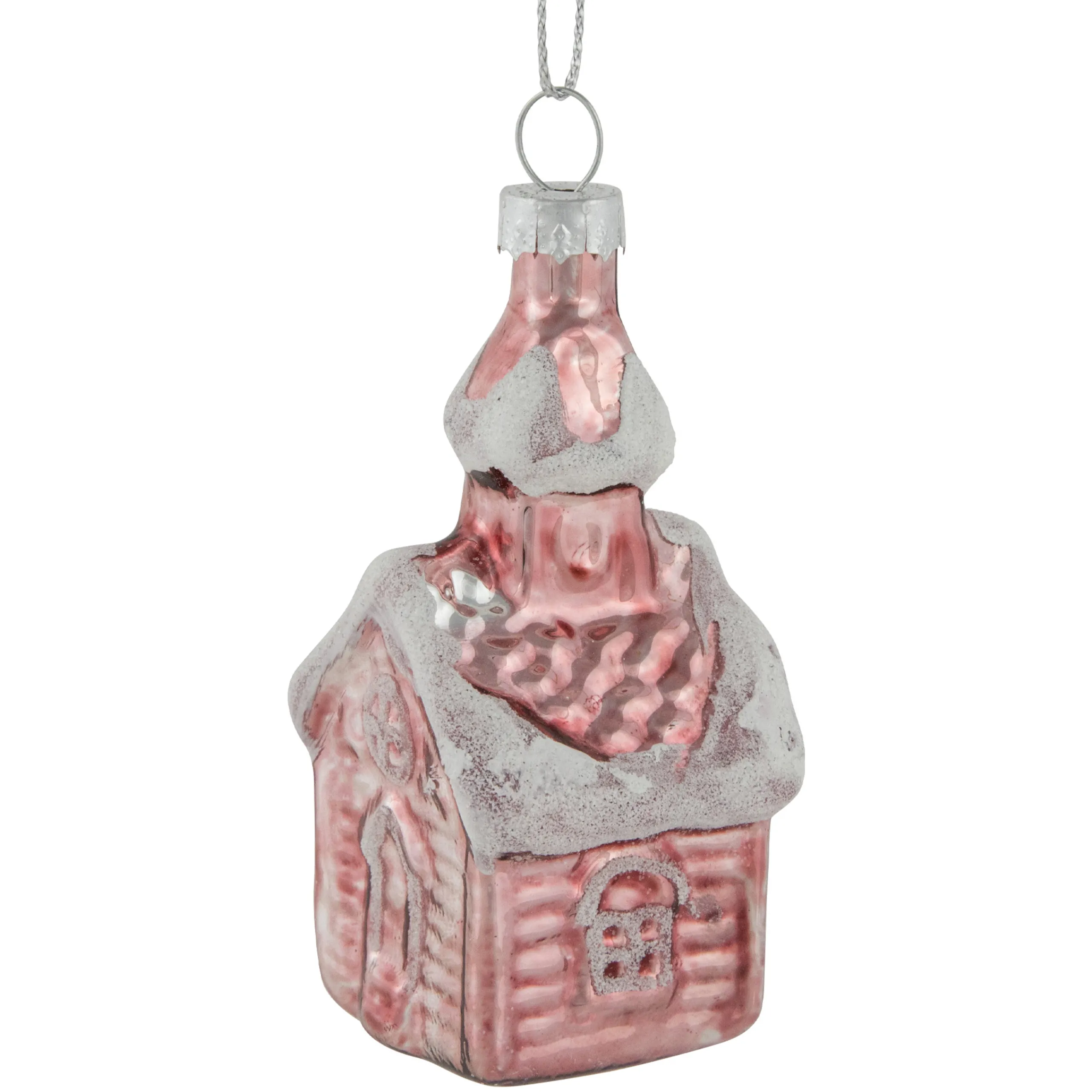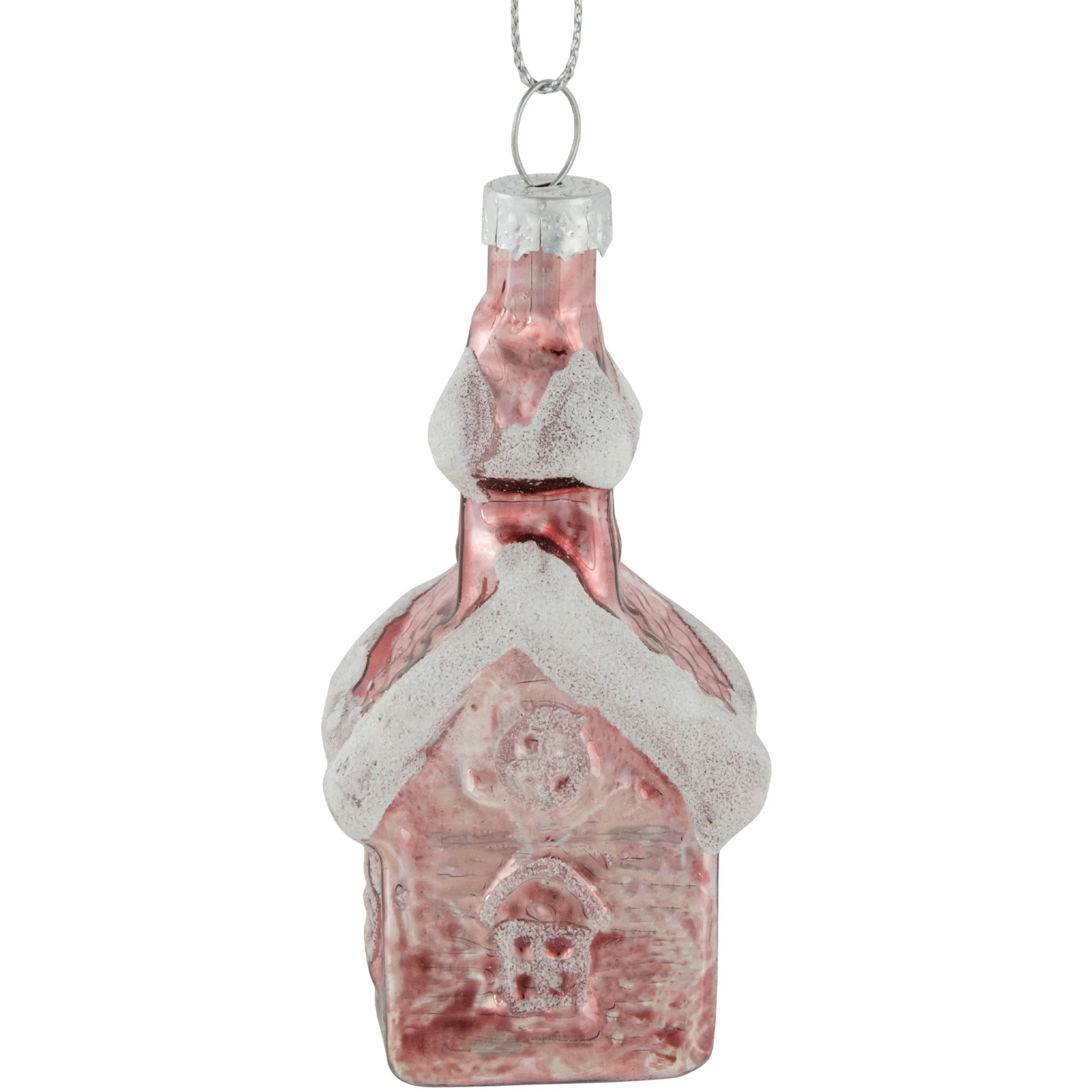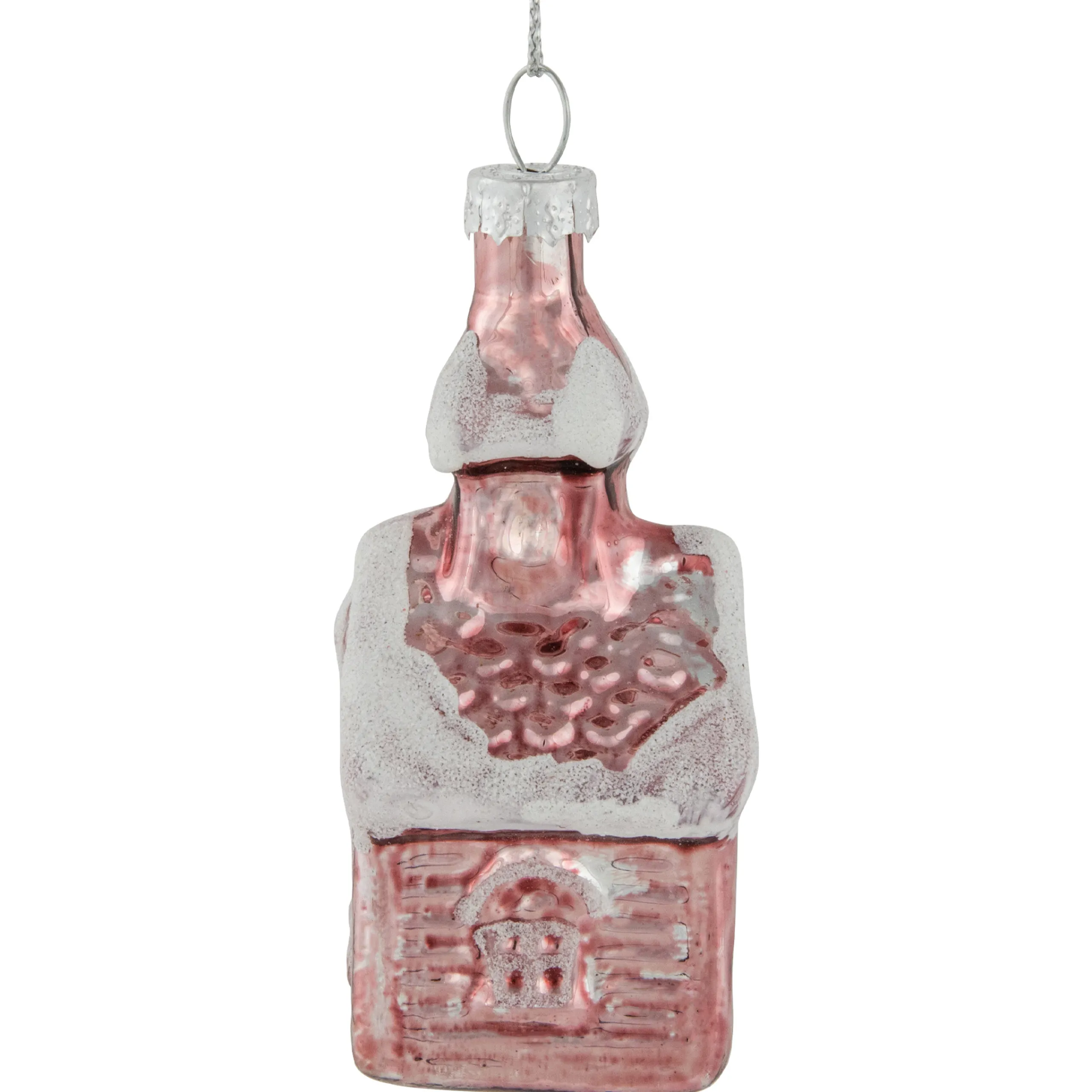 Northlight Inspirational>3.25″ Snow Covered Pink Church Glass Christmas Ornament