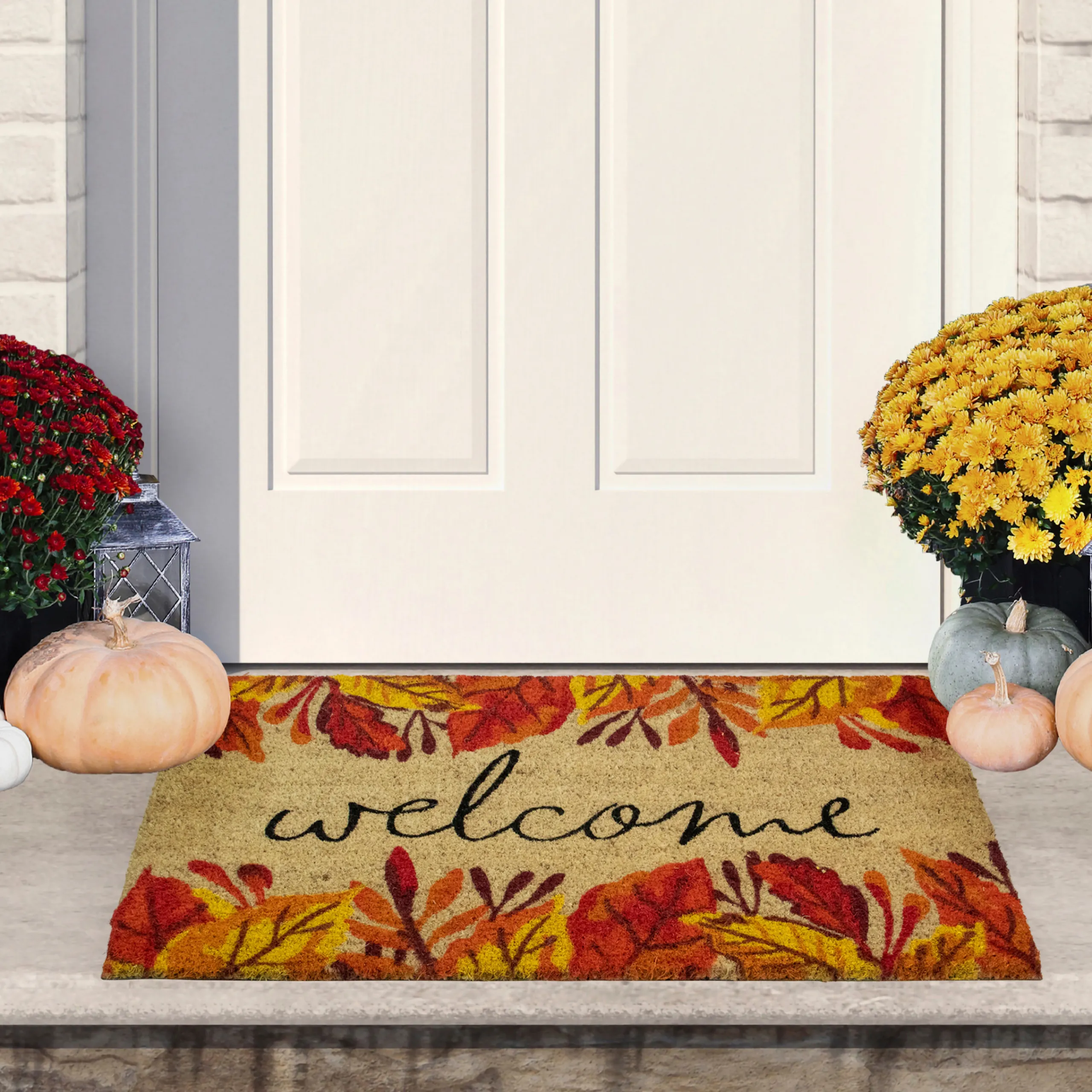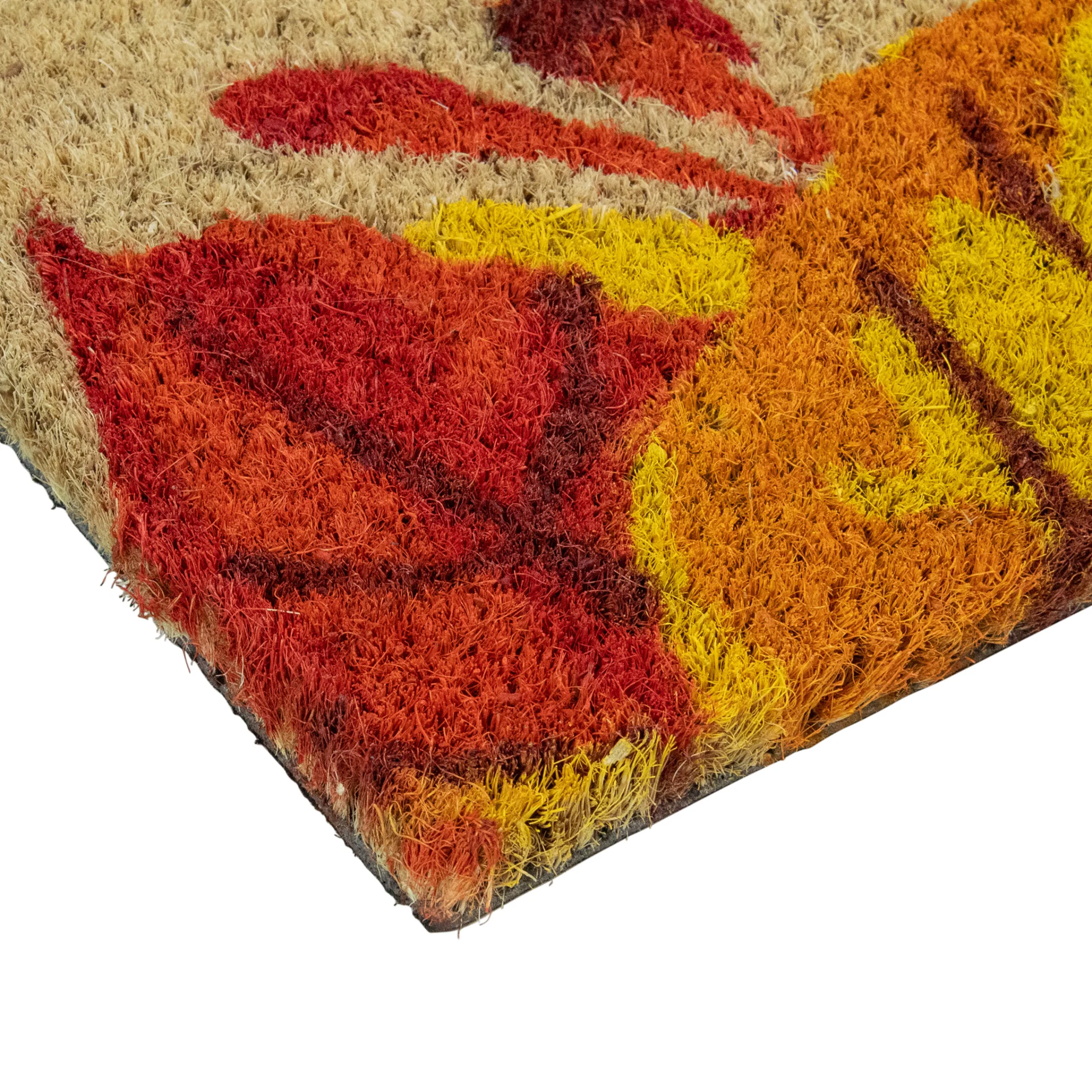 Enhance Your Doorways With This Outdoor “Welcome” Doormat While Also Protecting Your Floors And Carpets From Outside Debris. It Will Add A Bright Pop Of Color With Its Leaf Design While Doing Double-Duty Trapping In Dirt And Moisture. Made From Durable Materials Coir Brush Mat Fibers, It Will Withstand Your Family And Friend’s Foot Traffic.