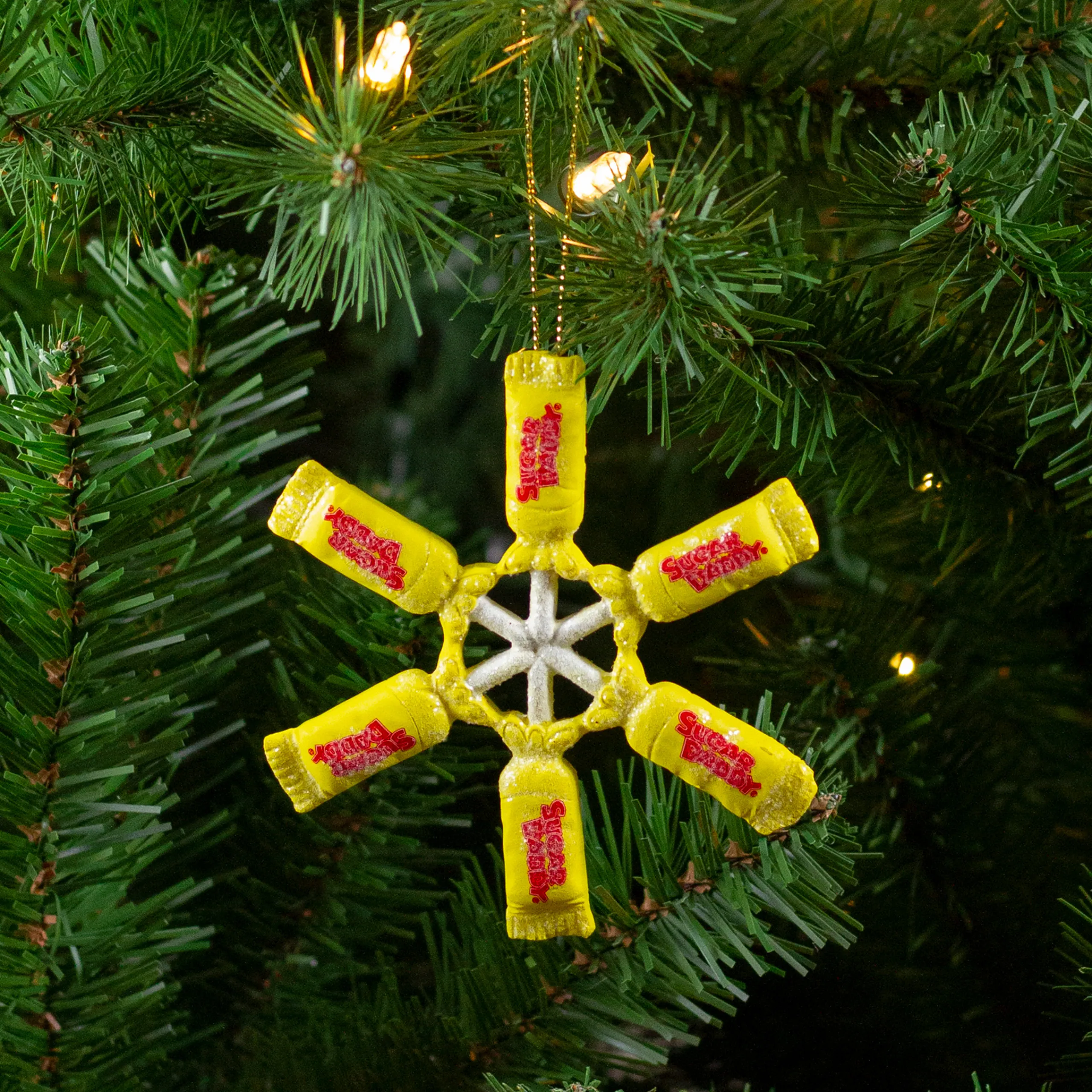 Features A Sugar Daddy Lollipop Snowflake Ornament
