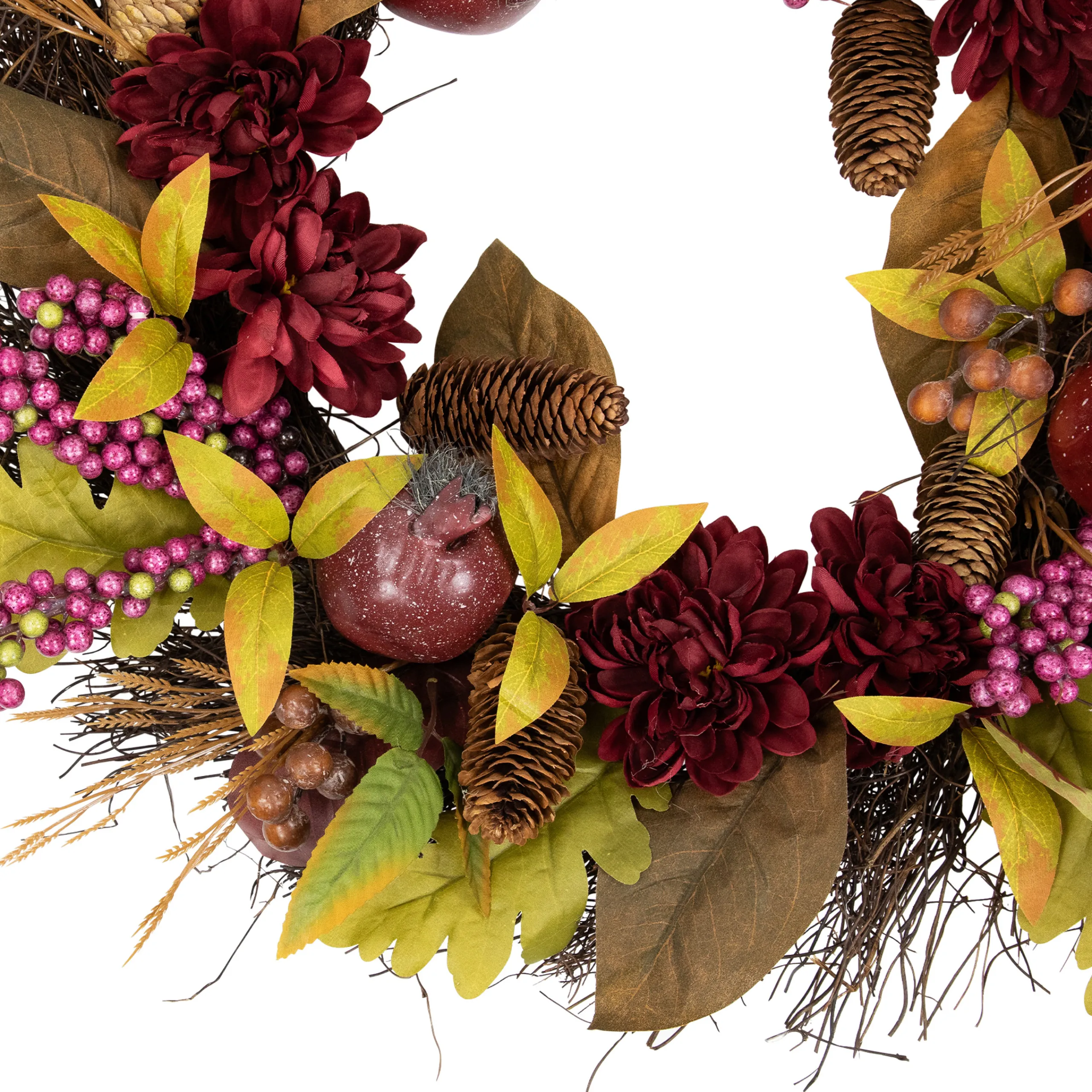 Northlight Mums And Pomegranates Artificial Fall Harvest Floral Wreath, 28-Inch