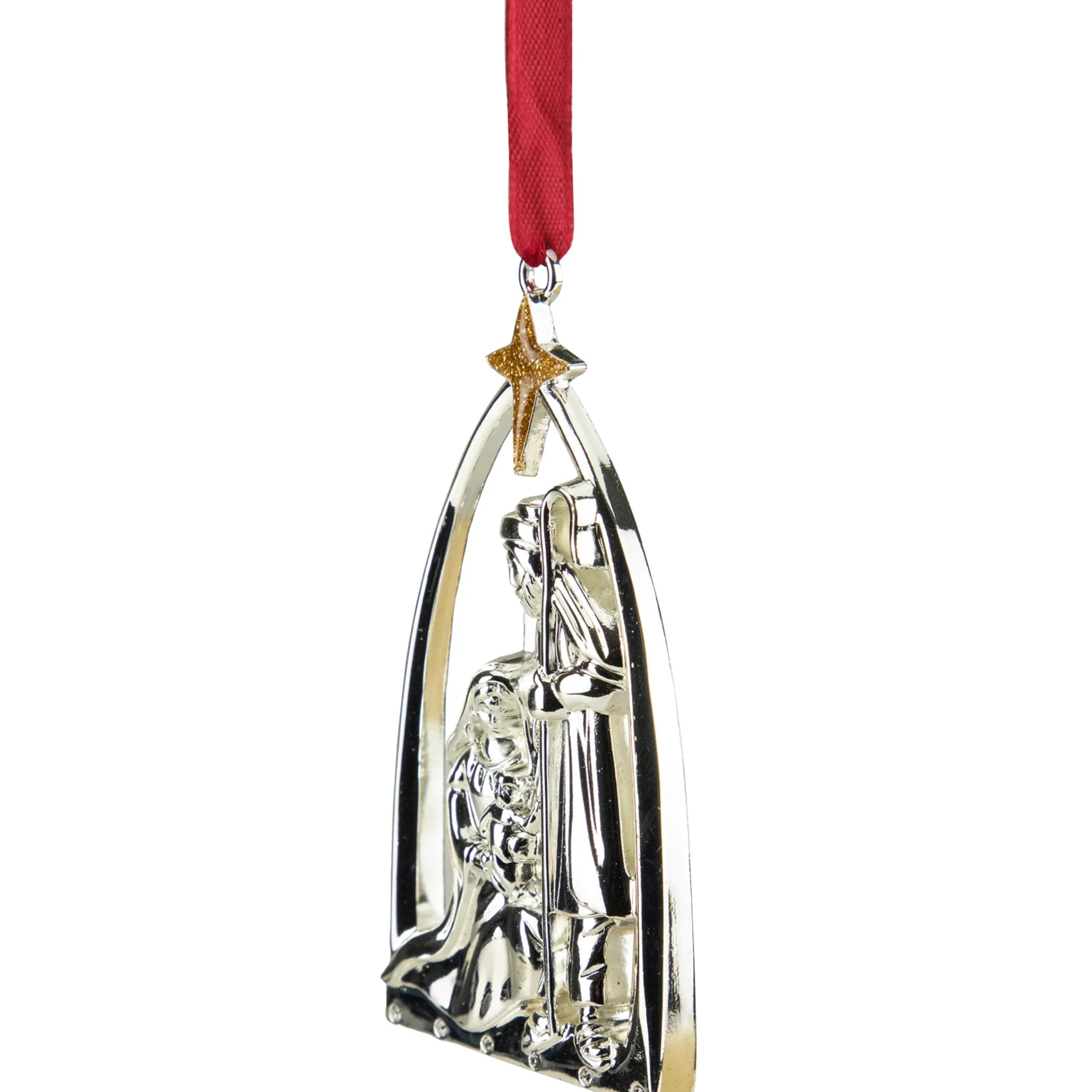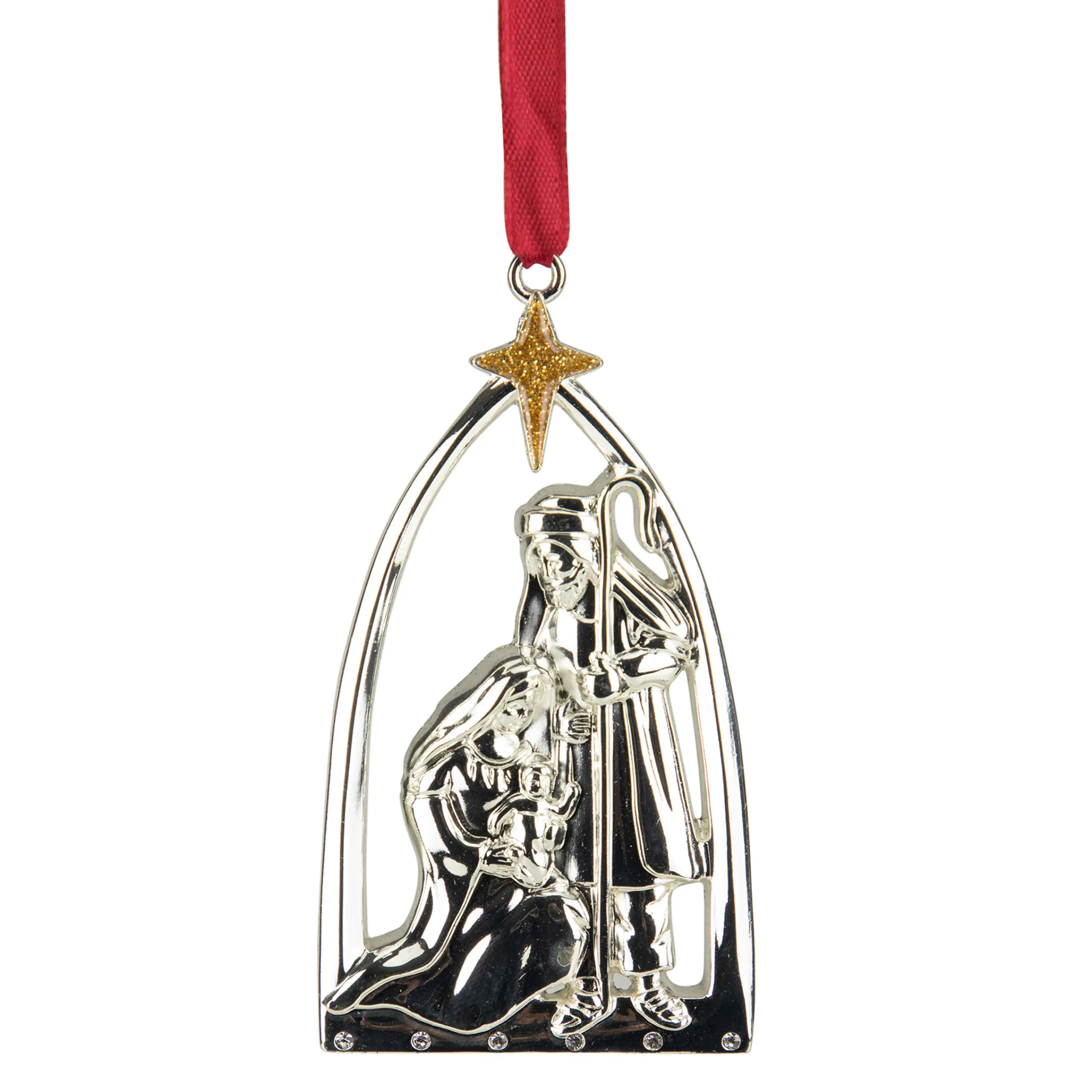 Northlight Nativity & Religious>3.5″ Silver-Plated Nativity Scene Christmas Ornament With European Crystals