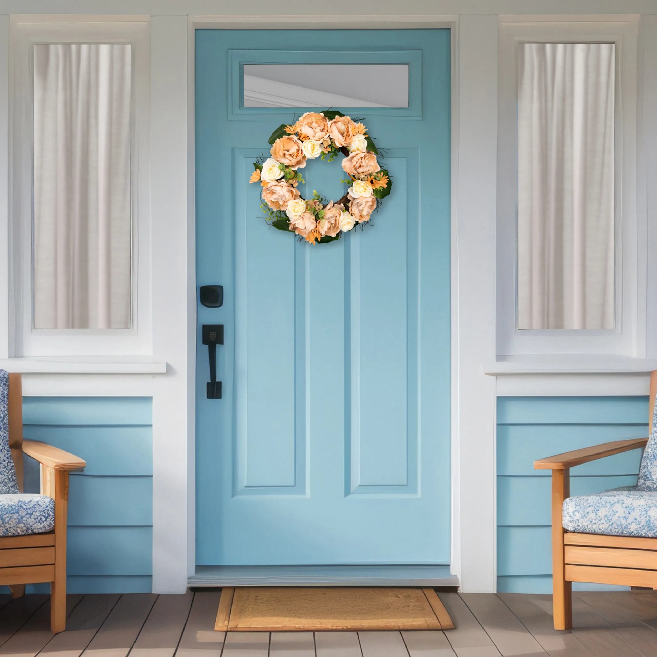 This Fall Harvest Floral Wreath Would Be The Perfect Addition To Your Thanksgiving Or Spring Decor. Filled With Peach And White Peony Flowers, It Will Add A Romantic Touch Of Nature To Your Home Or Office. Perfect To Place On Tabletops And Hang Over Mantles.