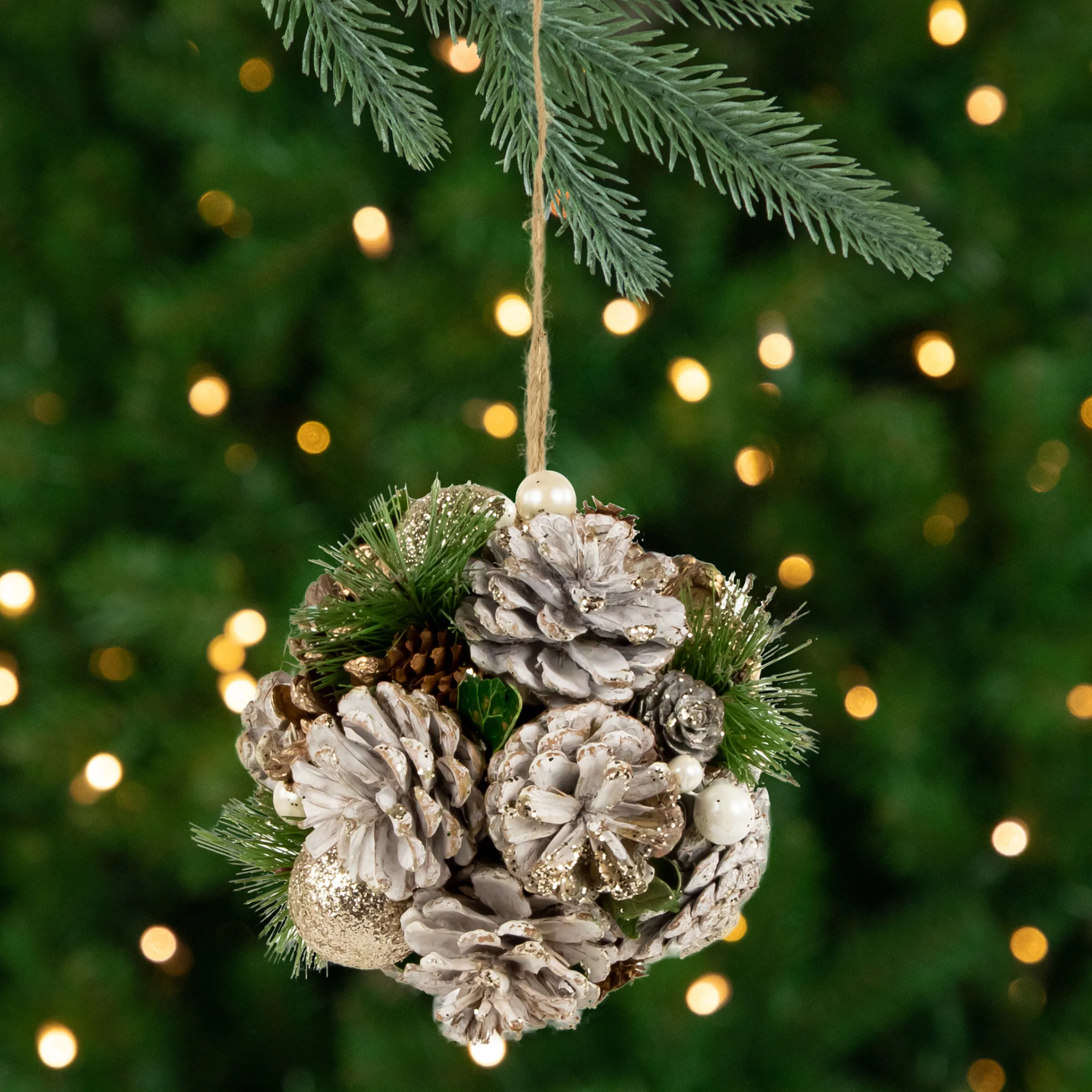 Northlight Pine Cones>5.5″ Glittered Pine Needle And Pinecone Hanging Christmas Ball Ornament