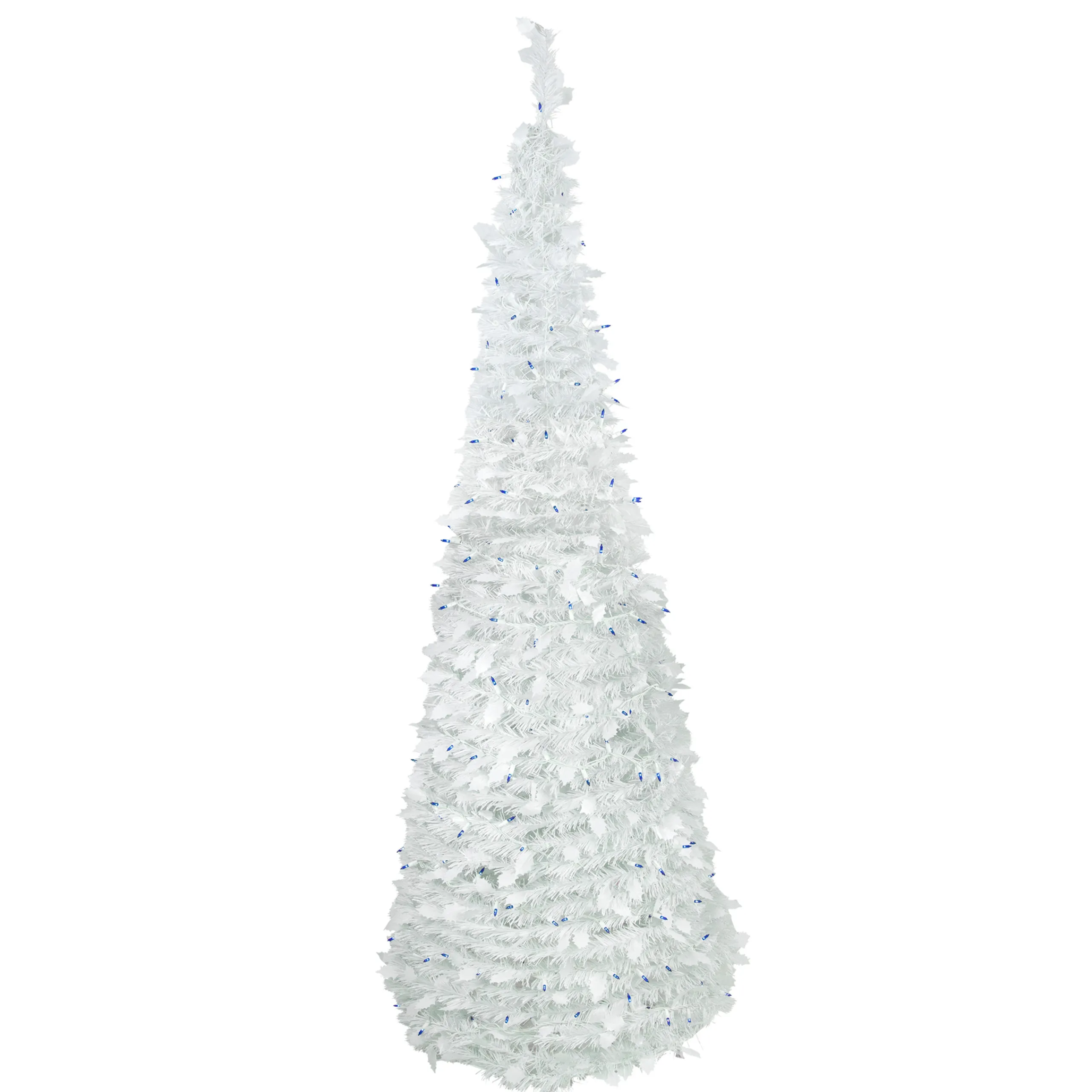 Northlight Pop Up Trees>6Ft Lighted White Tinsel Pop-Up Artificial Christmas Tree, Blue Lights