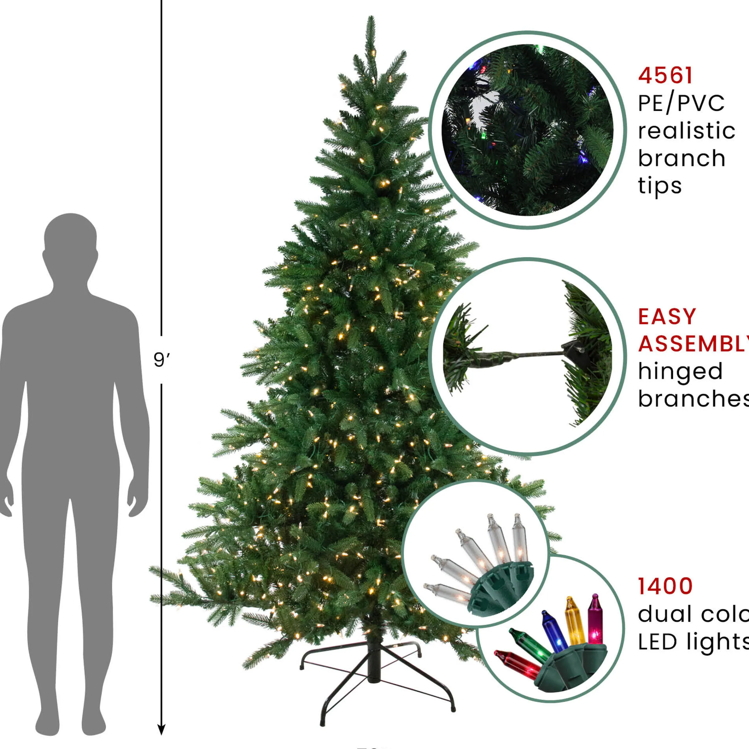 Northlight Pre-Lit Traditional Trees>9′ Pre-Lit Instant Connect Noble Fir Artificial Christmas Tree – Multicolor Led Lights
