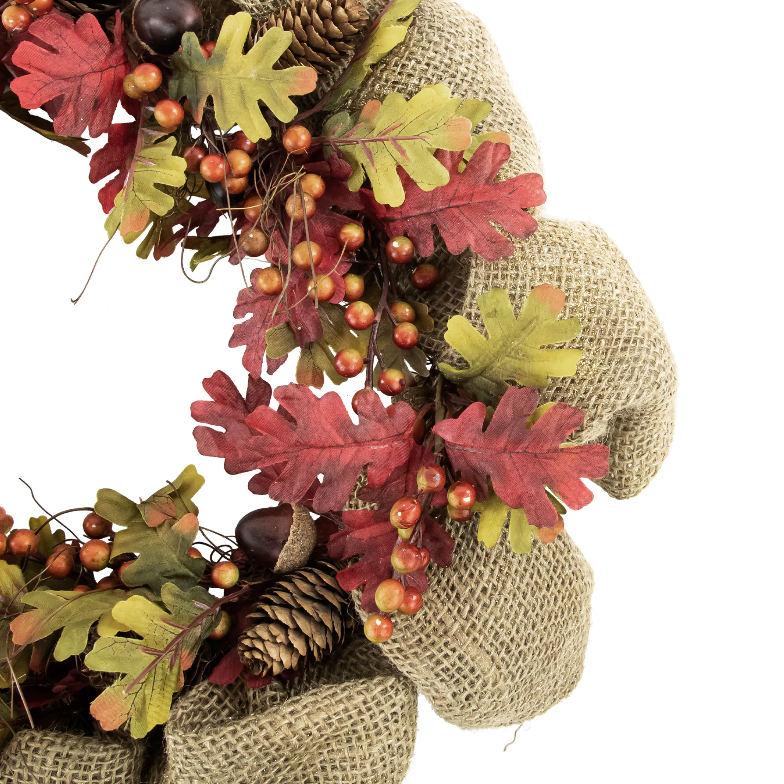 Northlight Rustic Burlap Fall Harvet Wreath With Acorns And Berries, 18-Inch