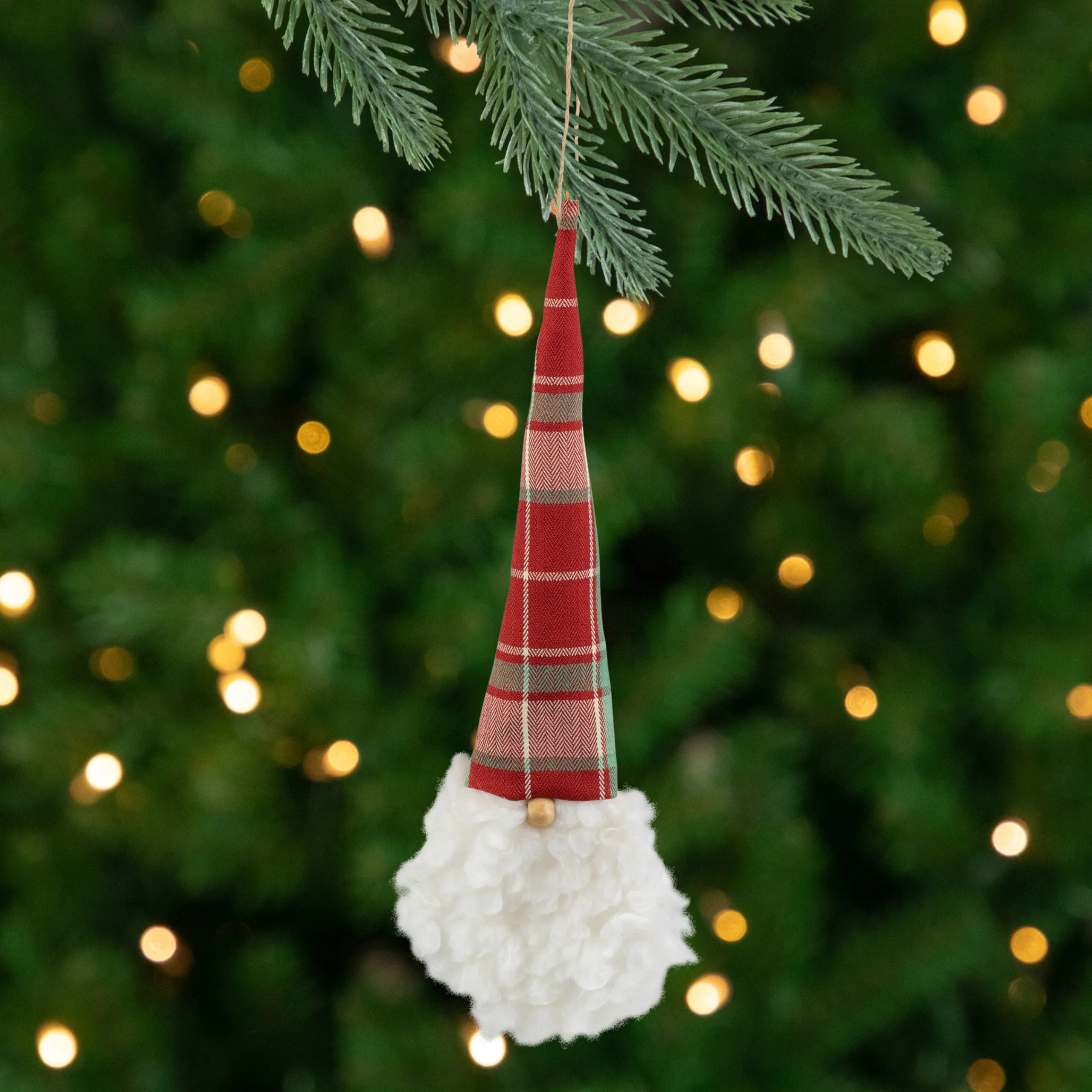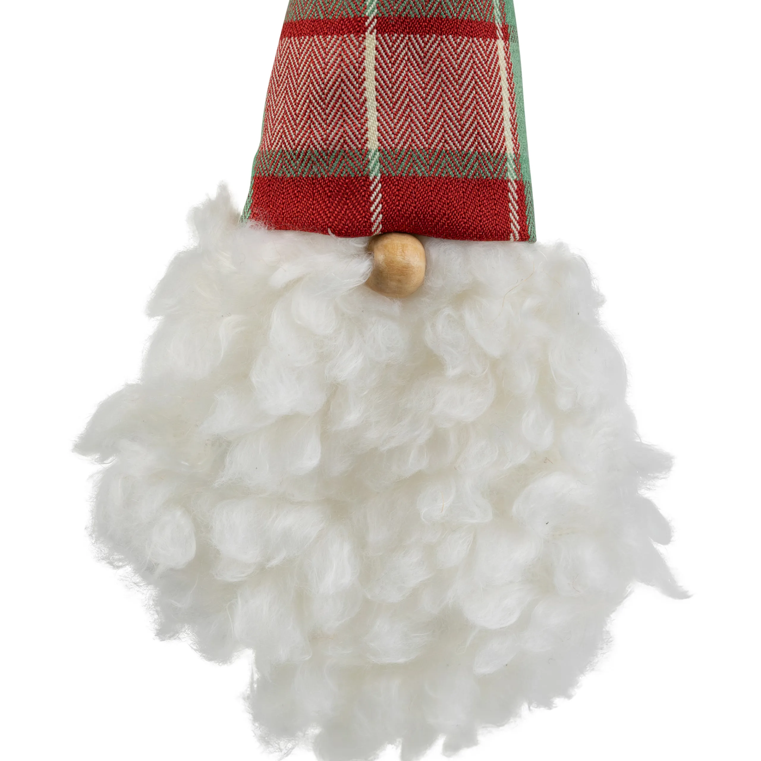 Add This Unique Plush Santa Head Ornament To Your Christmas Tree This Holiday Season! Features A Red, Green, And Beige Plaid Hat With A Wooden Bead Nose! The Long White Beard Brings The Traditional Look To Your Holiday Decor. You Can Add This Ornament To Your Tree, Hang It From Your Mantel Or Doorways For A Fun Addition To Your Christmas Festivities.