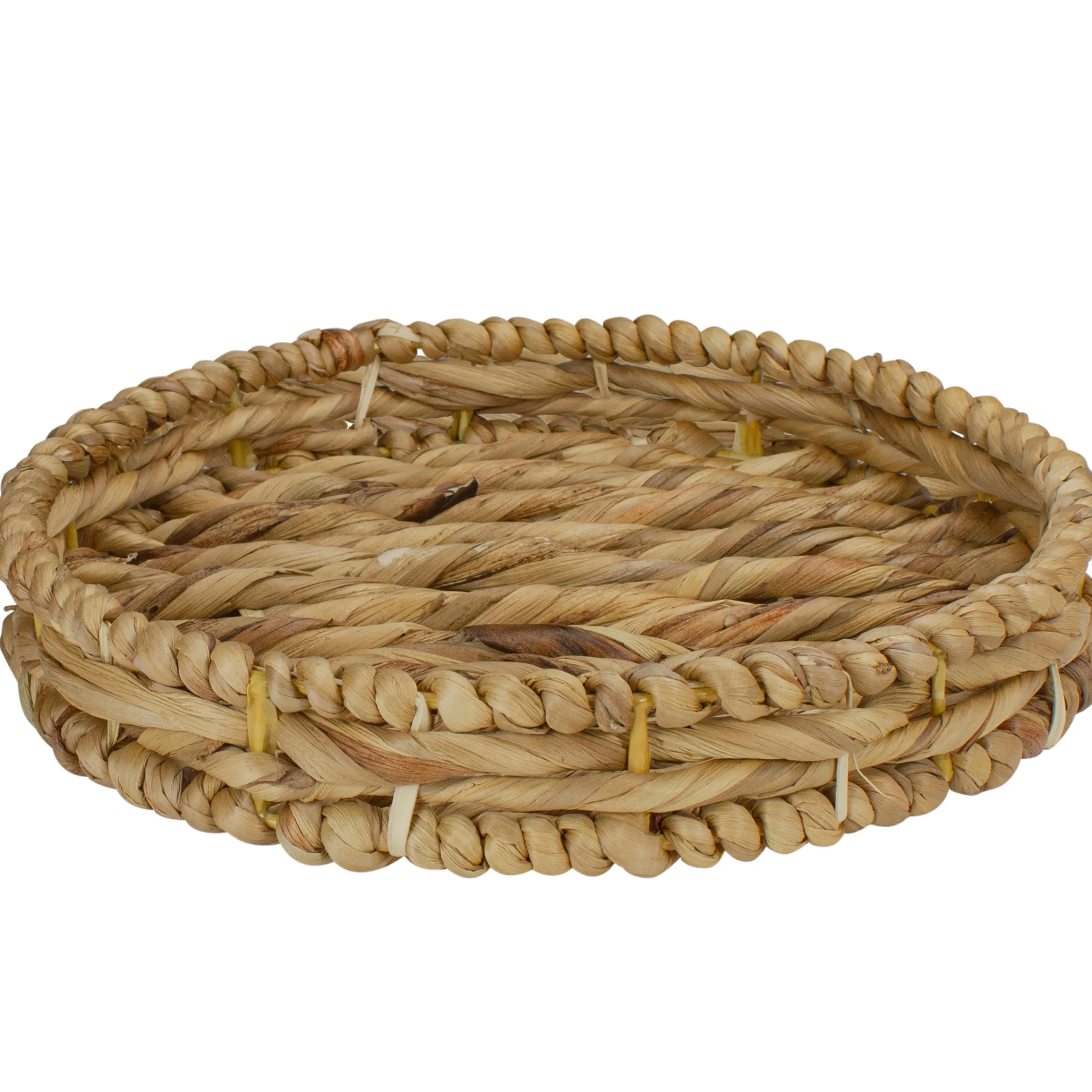 Round Woven Water Hyacinth Tray Set