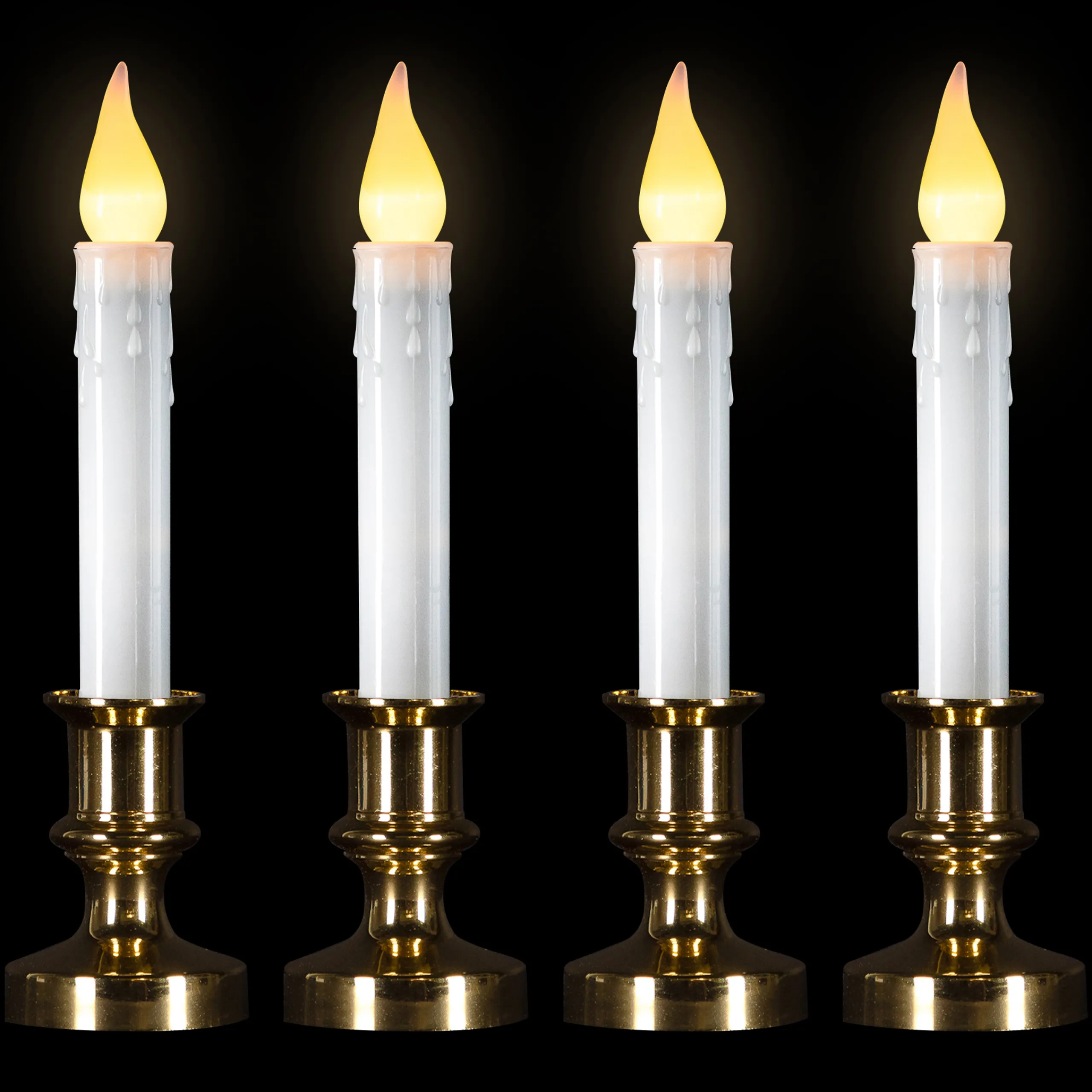 Northlight Set Of 4 White And Gold Led C5 Flickering Window Christmas Candle Lamp With Timer 8.5″