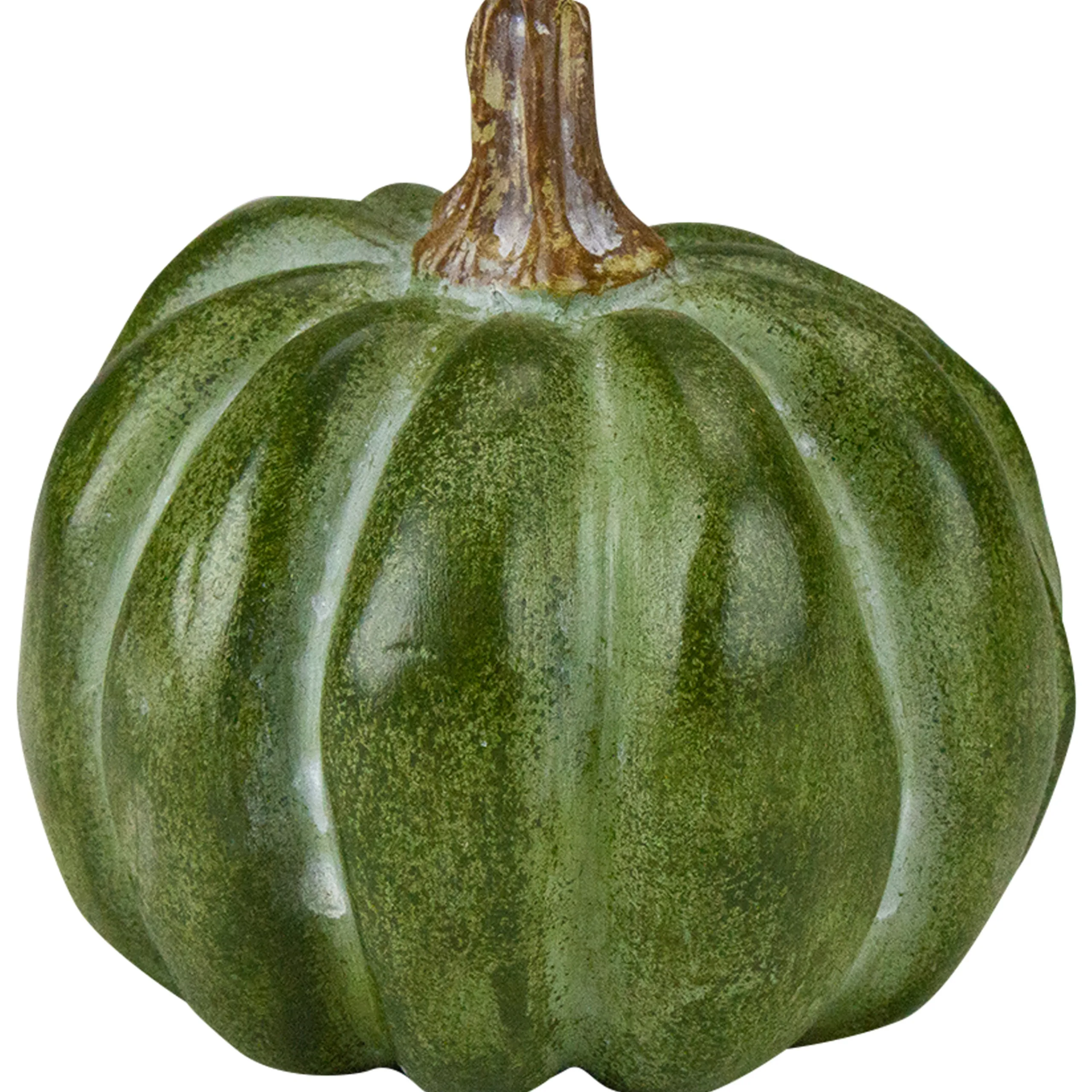 Features Shades Of Orange And Dark Green Pumpkins With Stems