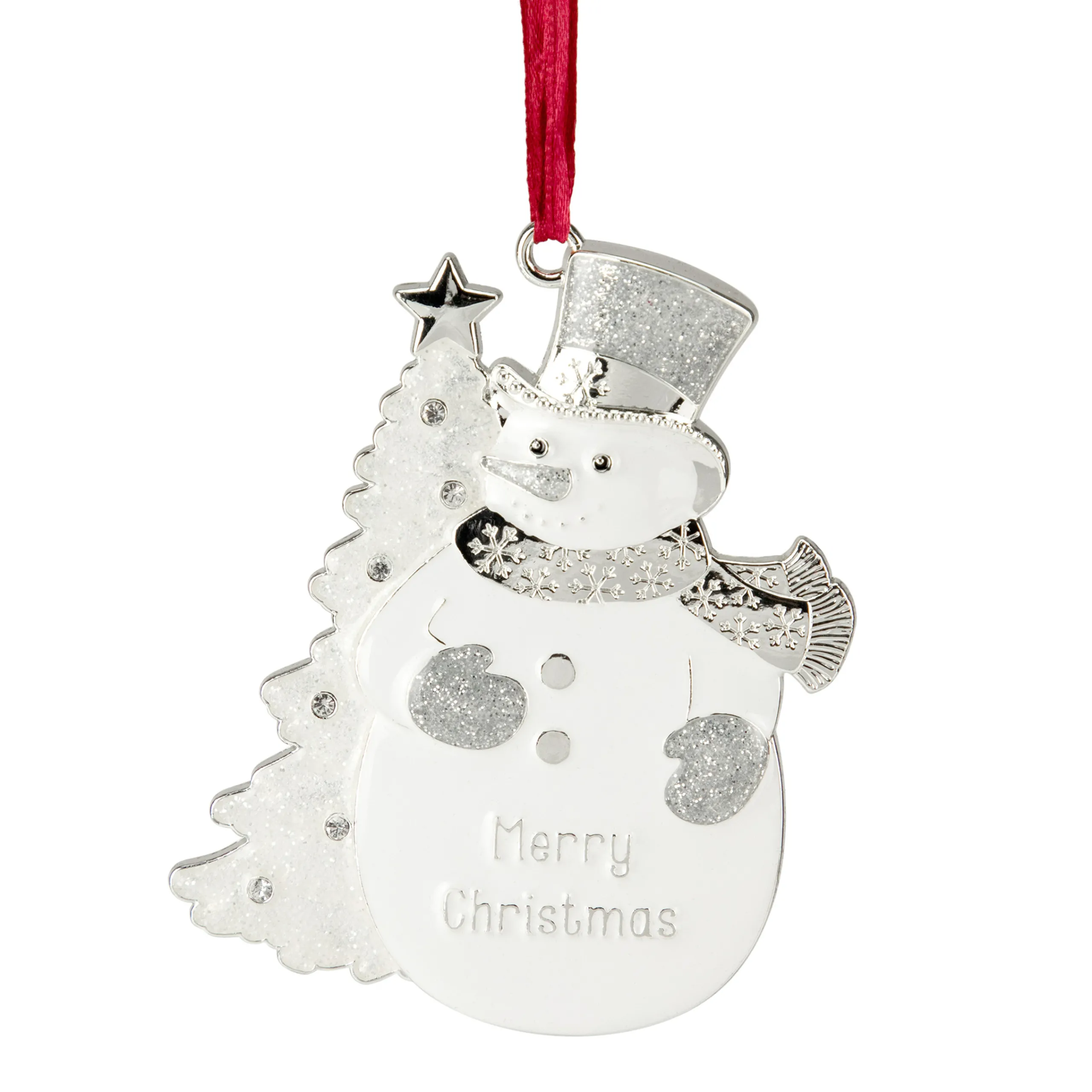 This Enchanting Decoration Showcases A Charming Snowman Wearing A Dashing Top Hat, Adorned With Sparkling Silver Glitter. Crafted With Attention To Detail, The Snowman Also Wears A Scarf Decorated With Meticulously Engraved Snowflakes, Adding A Delightful Touch Of Intricate Artistry. European Crystals Are Strategically Placed To Enhance Its Allure, Casting A Shimmering Glow As They Catch The Light.