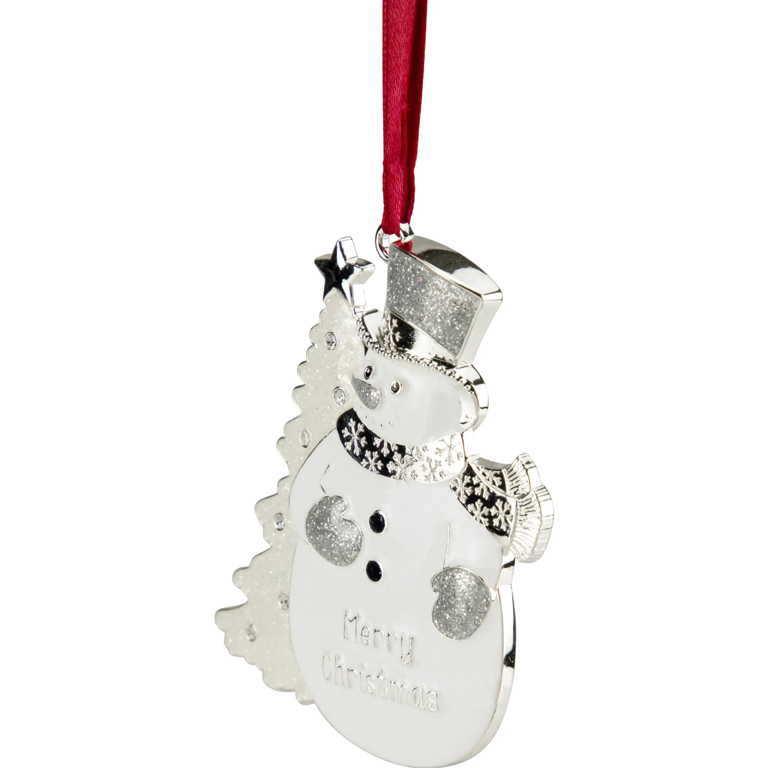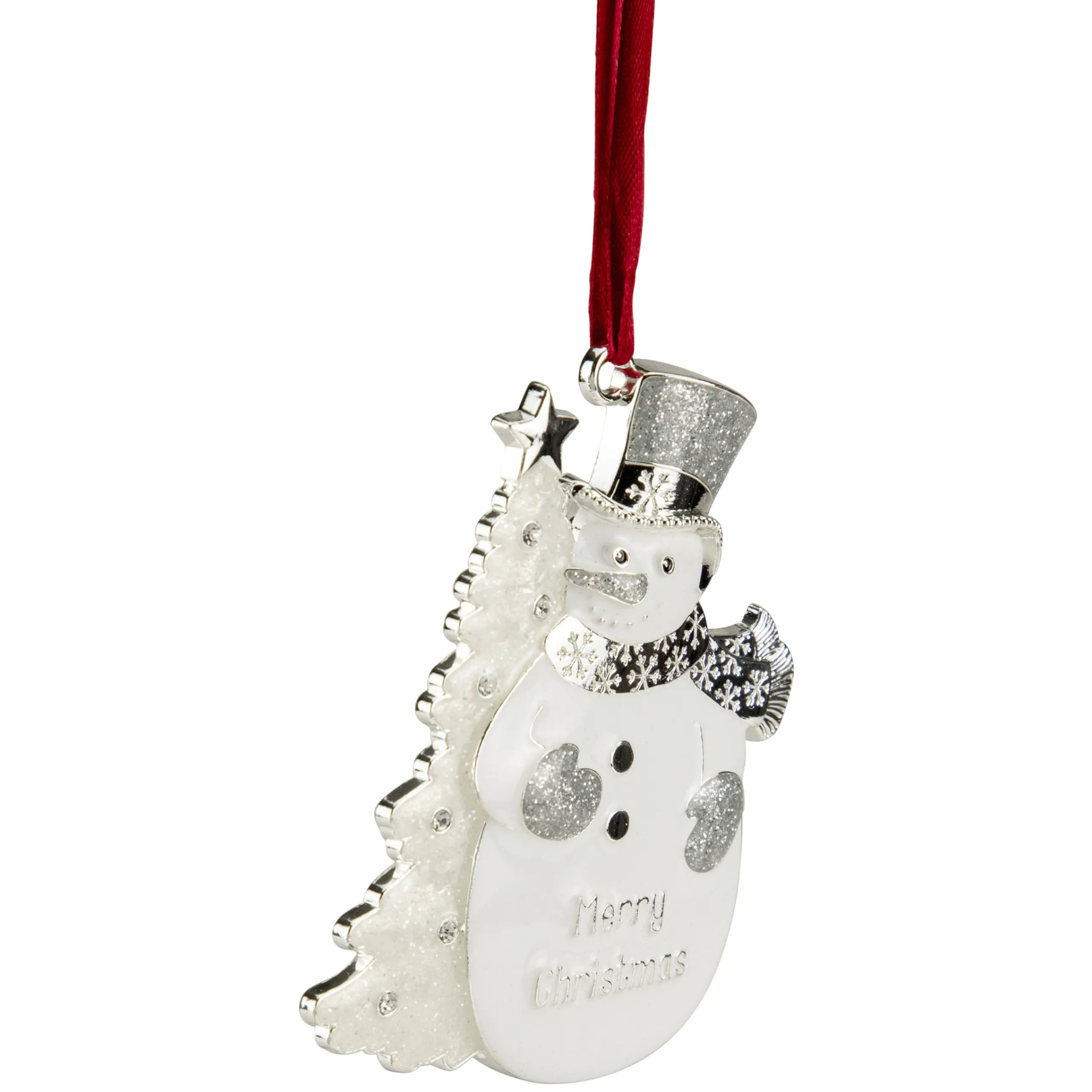 Northlight Snowmen>3.5″ White Silver-Plated Snowman Merry Christmas Ornament With European Crystals