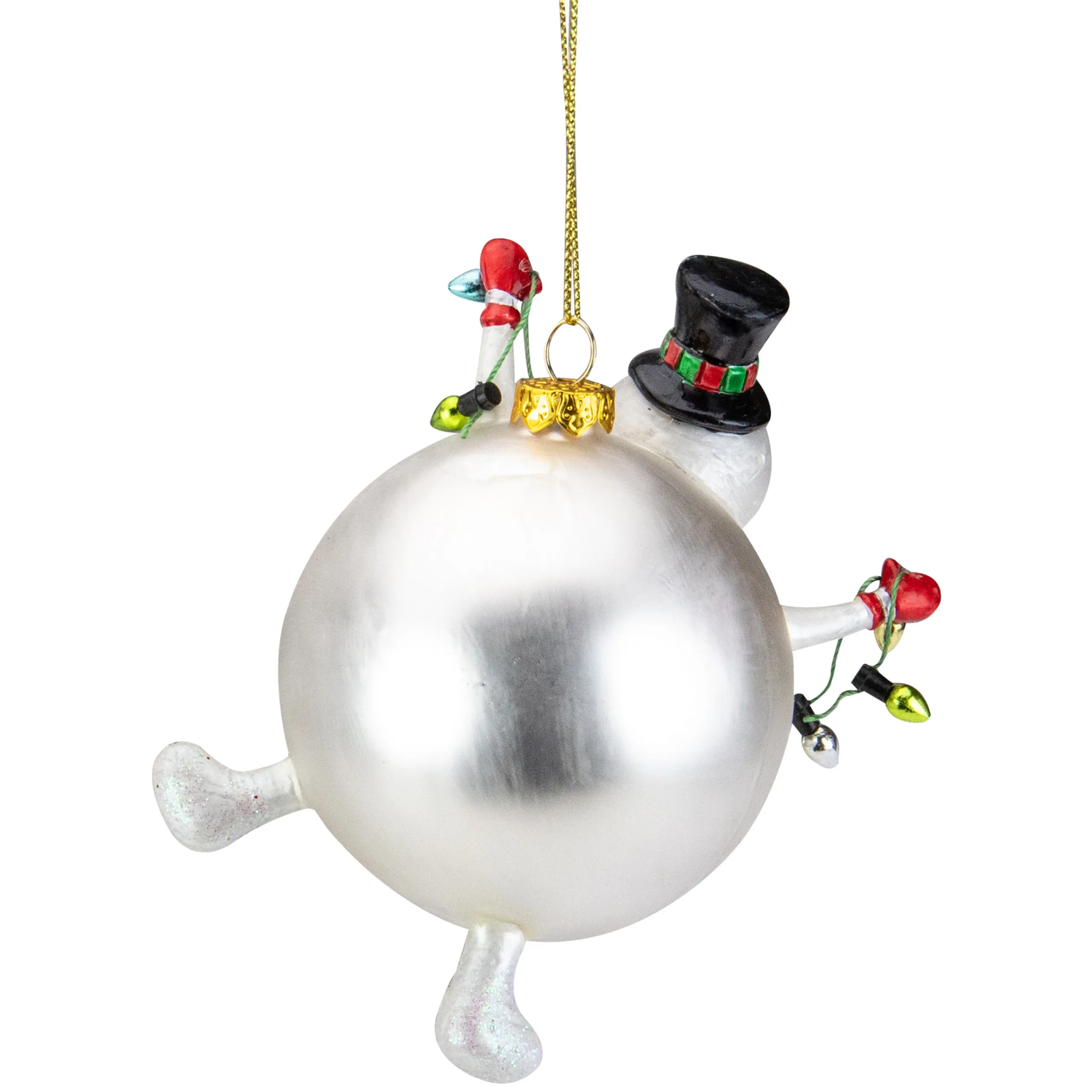 Northlight Snowmen>4.25″ Round Snowman With Black Top Hat Glass Christmas Ornament
