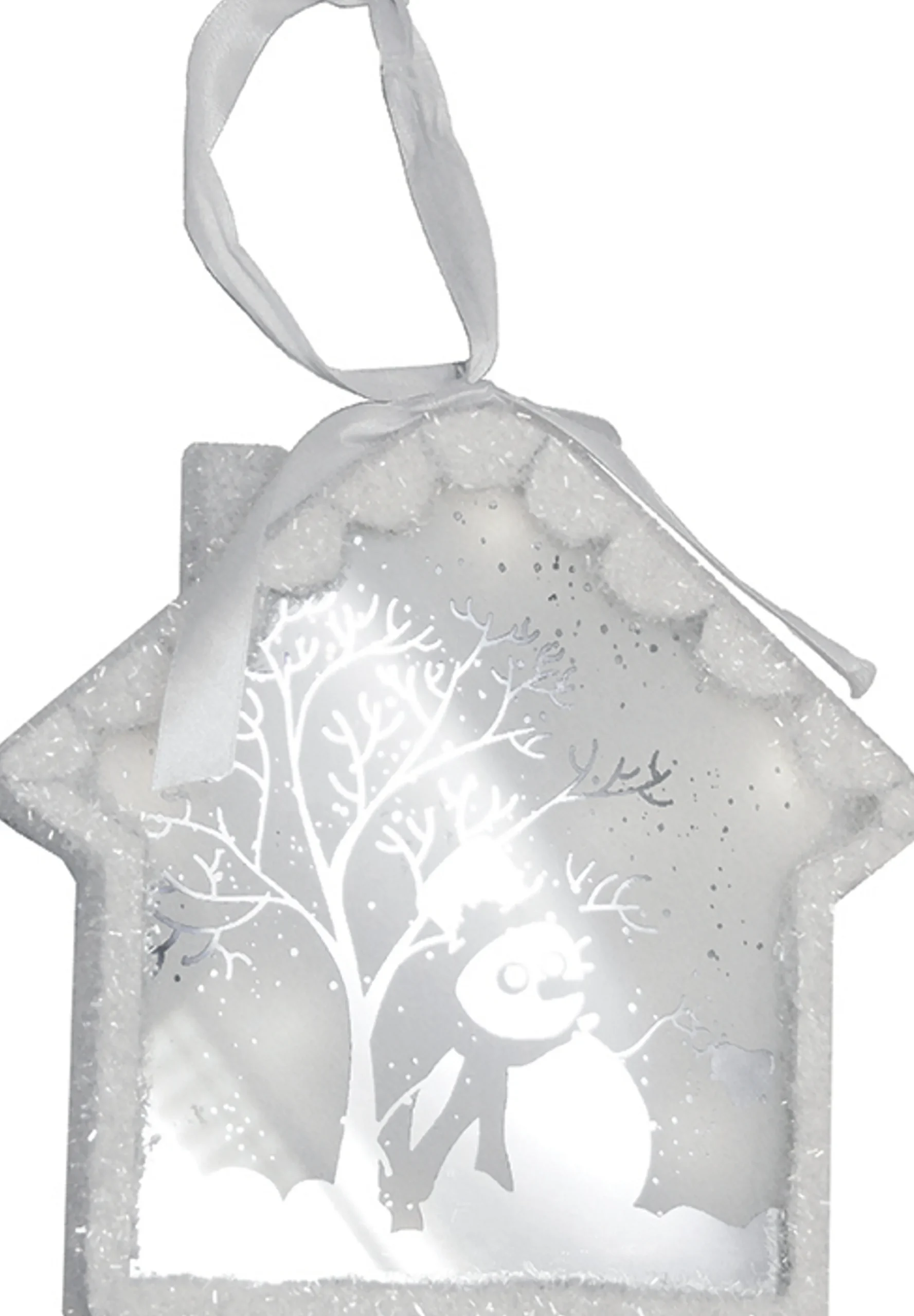 Northlight Snowmen>8″ White Backlit Led Sparkle Snowman Scene Christmas House Ornament