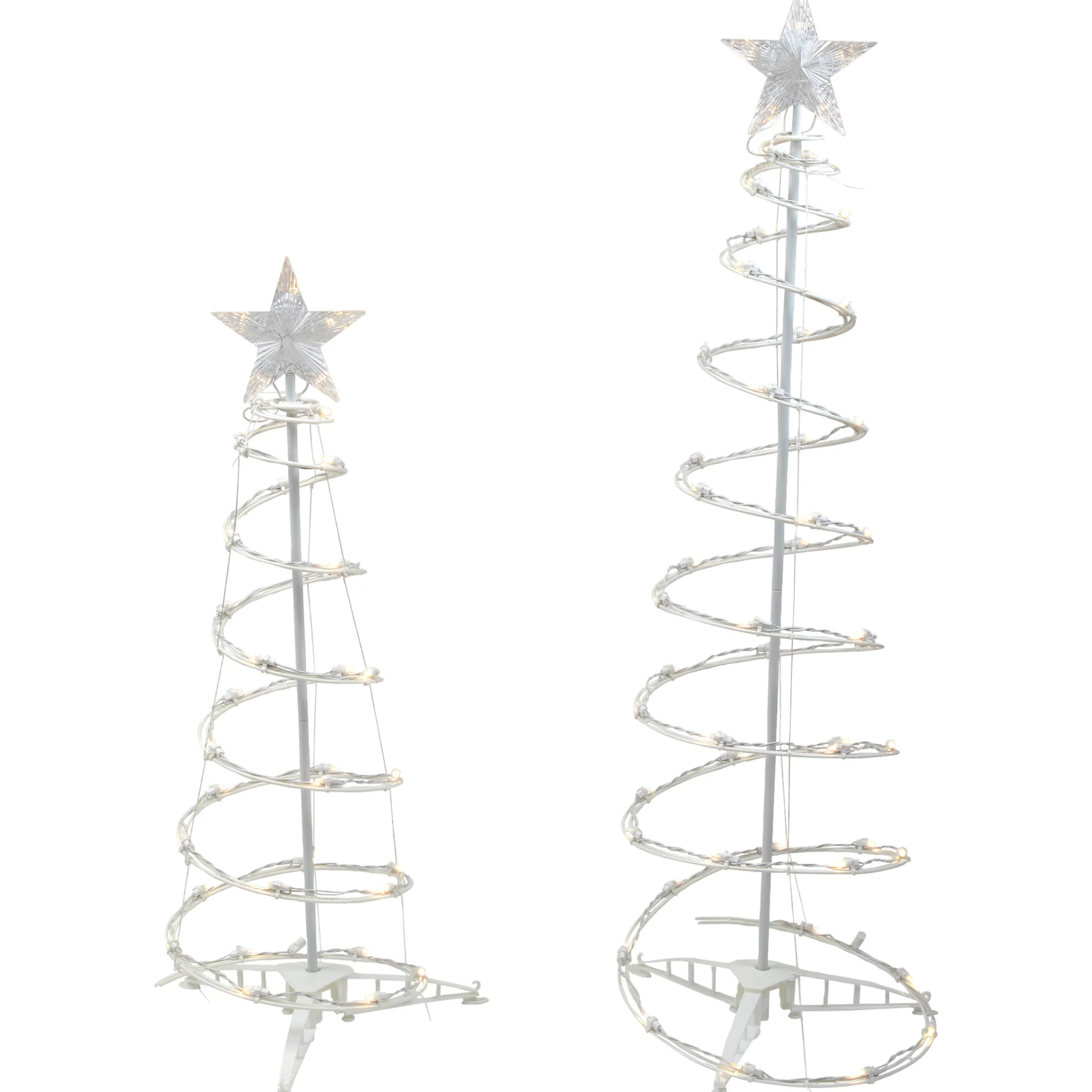 Northlight Spiral Trees>Set Of 2 Led Lighted Warm White Outdoor Spiral Christmas Cone Trees 3′, 4′