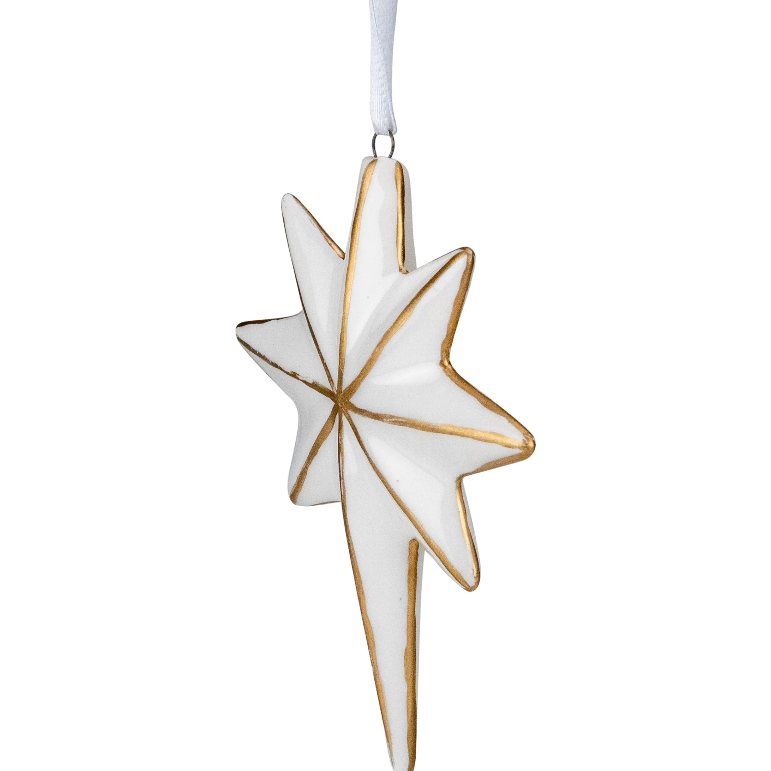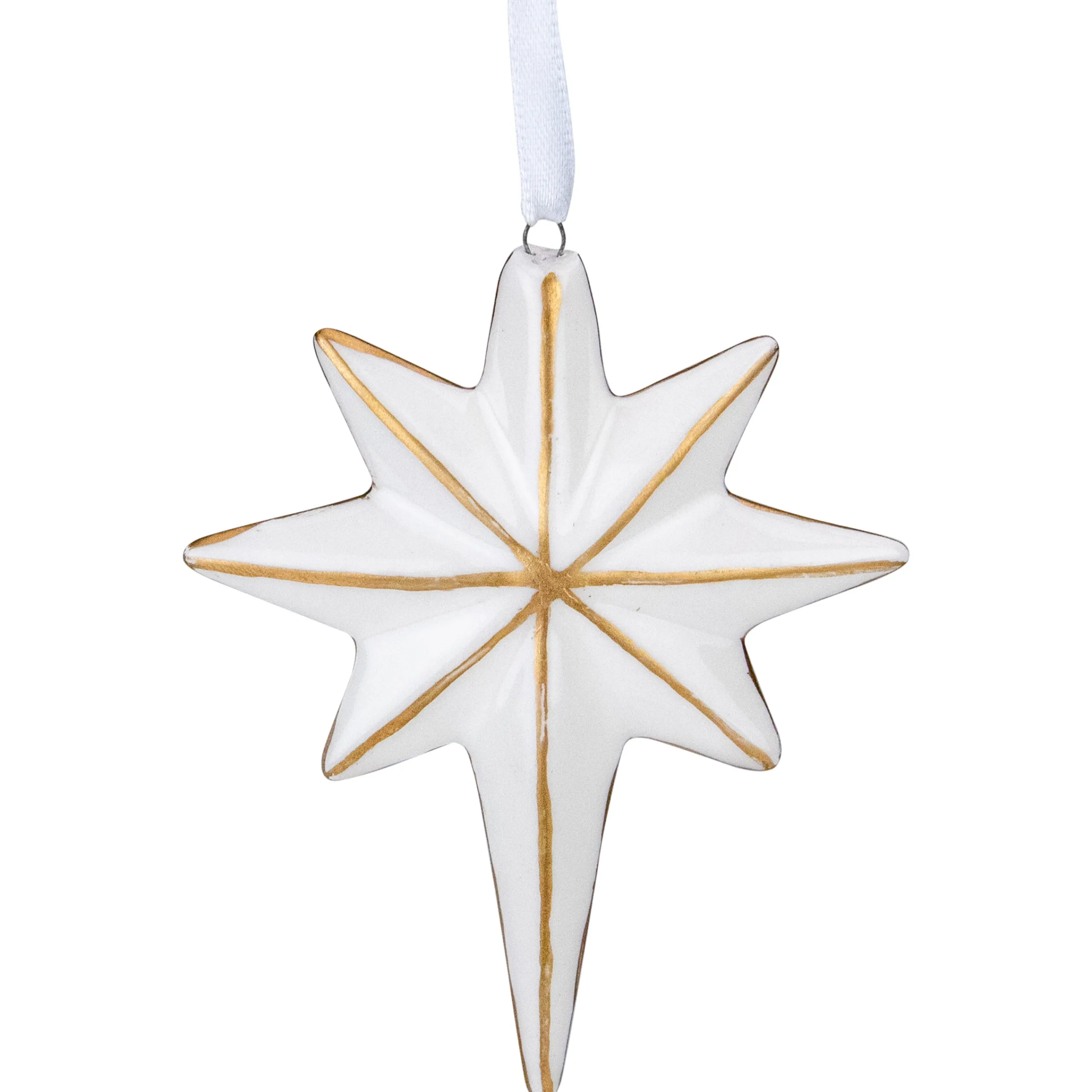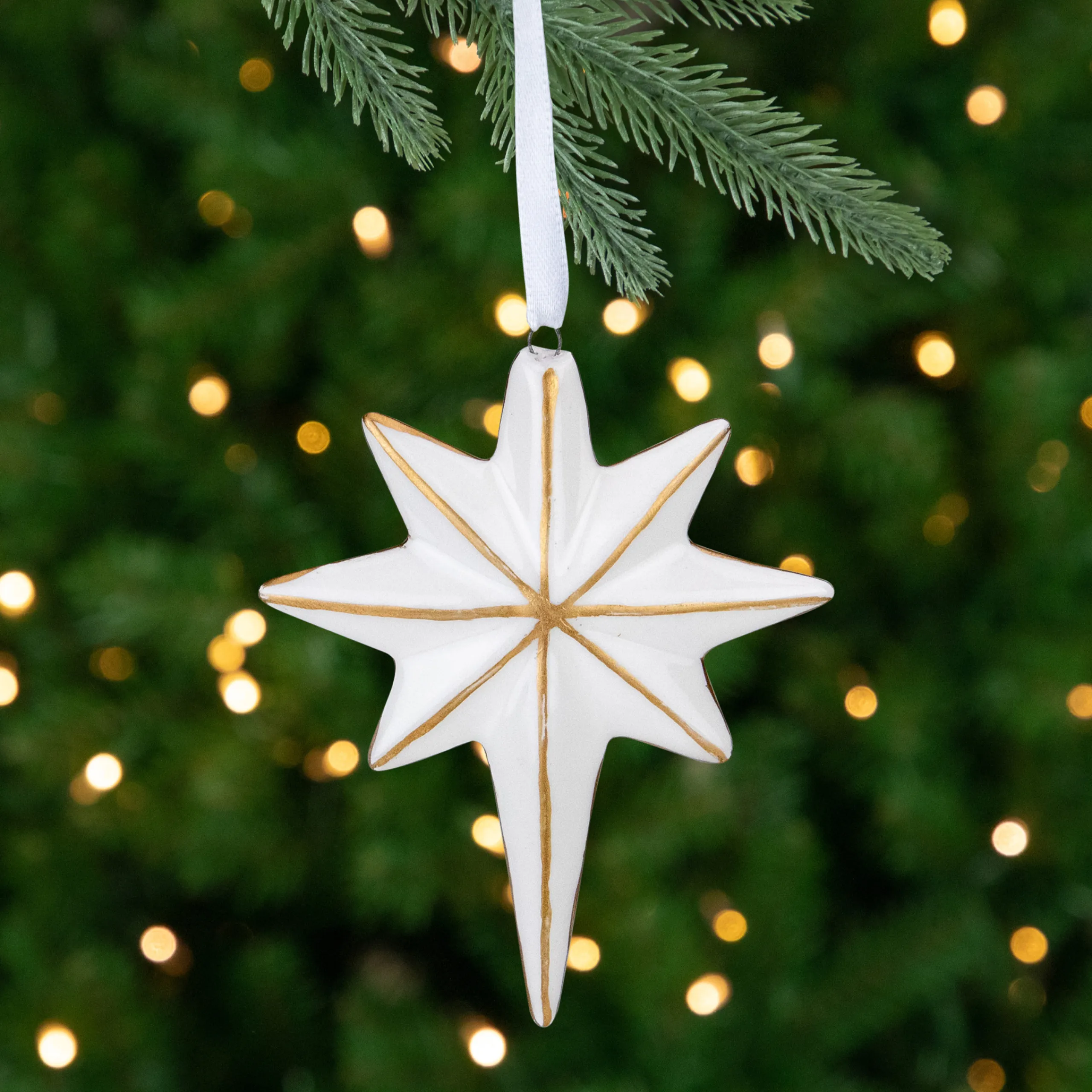 Add A Classic Touch To Your Christmas Tree With This Shiny, Off-White Star Ornament. The Gold Linear Accents Will Add A Little Shine Anywhere It Is Placed. Can Be Hung From Trees And Mantles, Or Given As A Gift To Family And Friends.