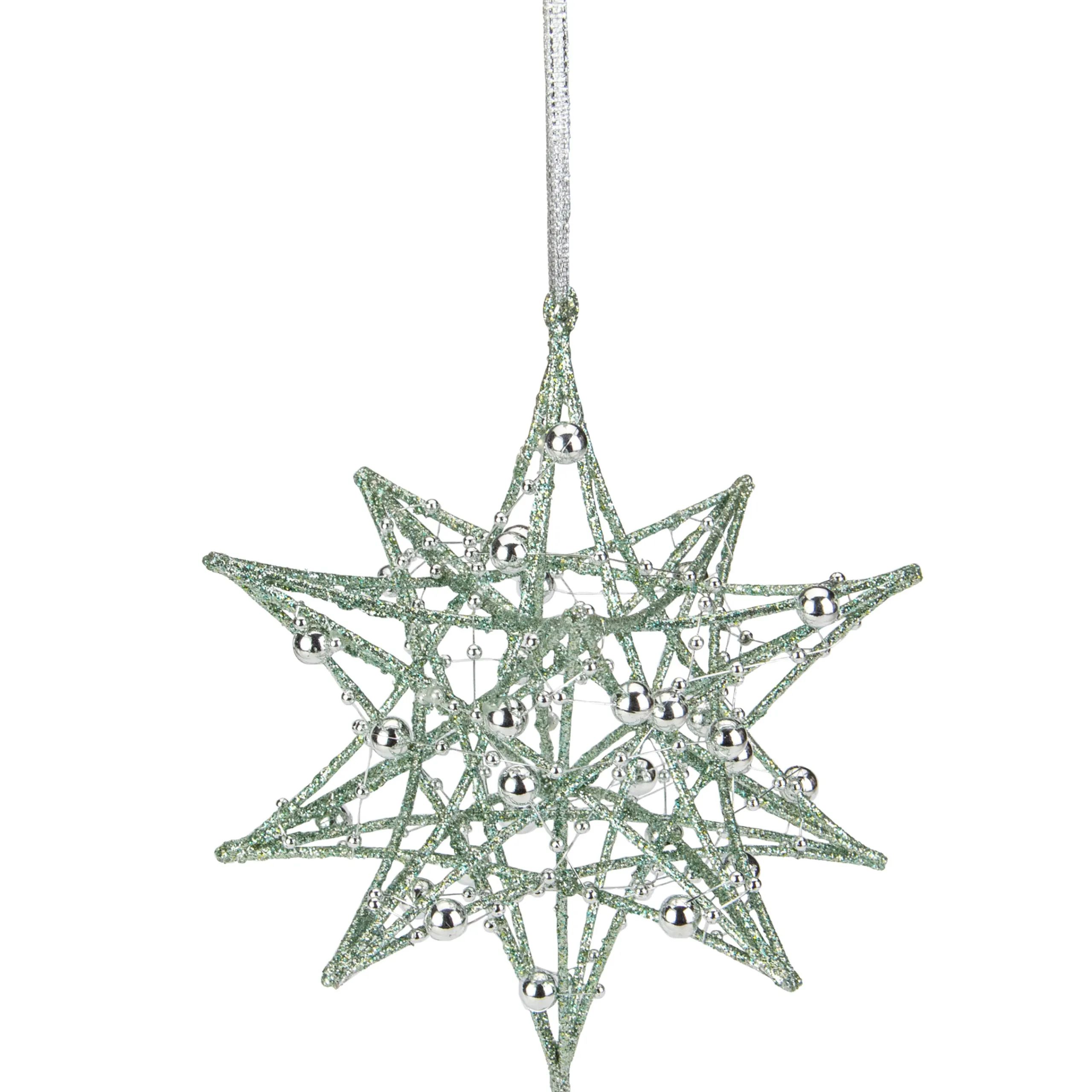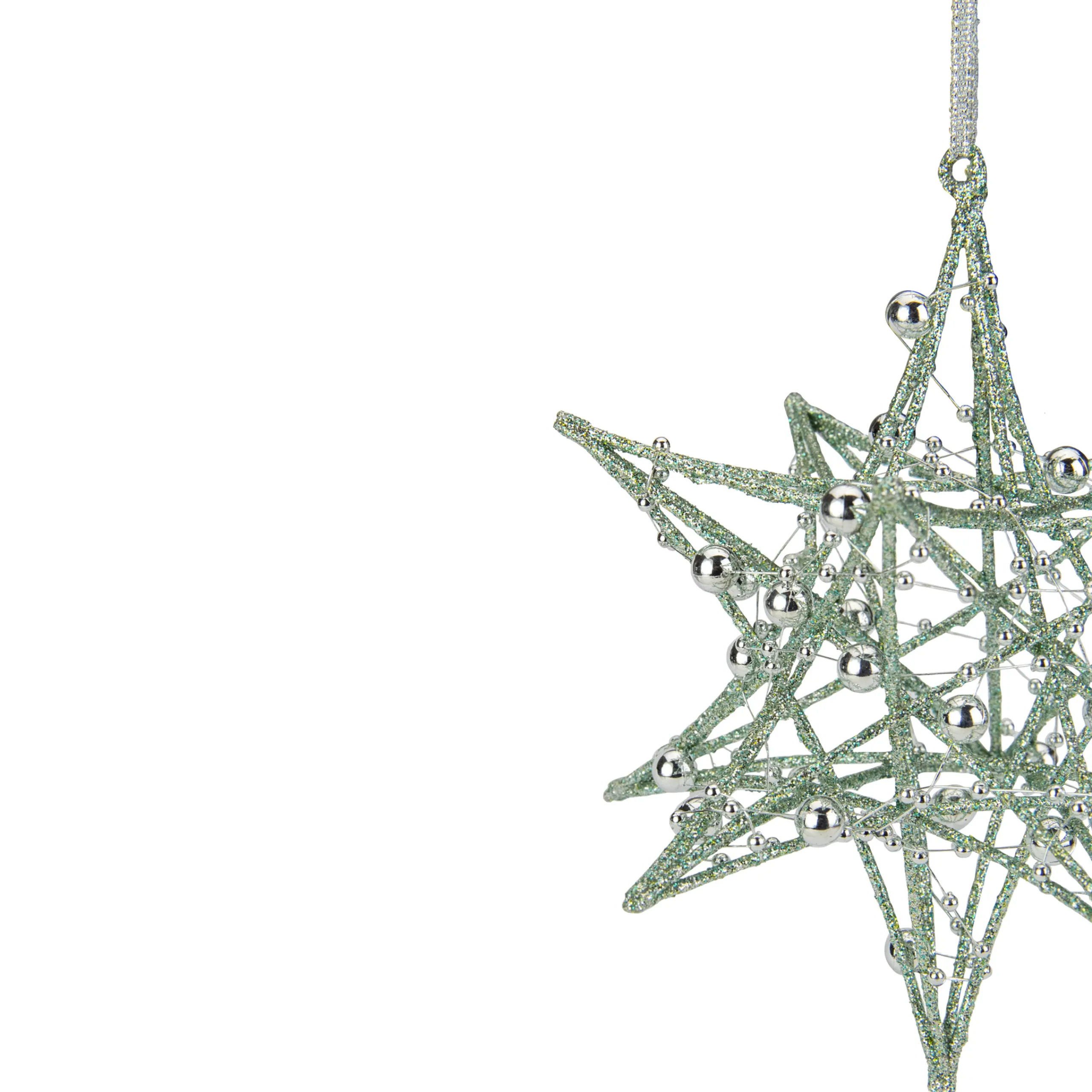 Northlight Stars>5″ Glitter Green Iron Wire Starburst With Beads Christmas Ornament