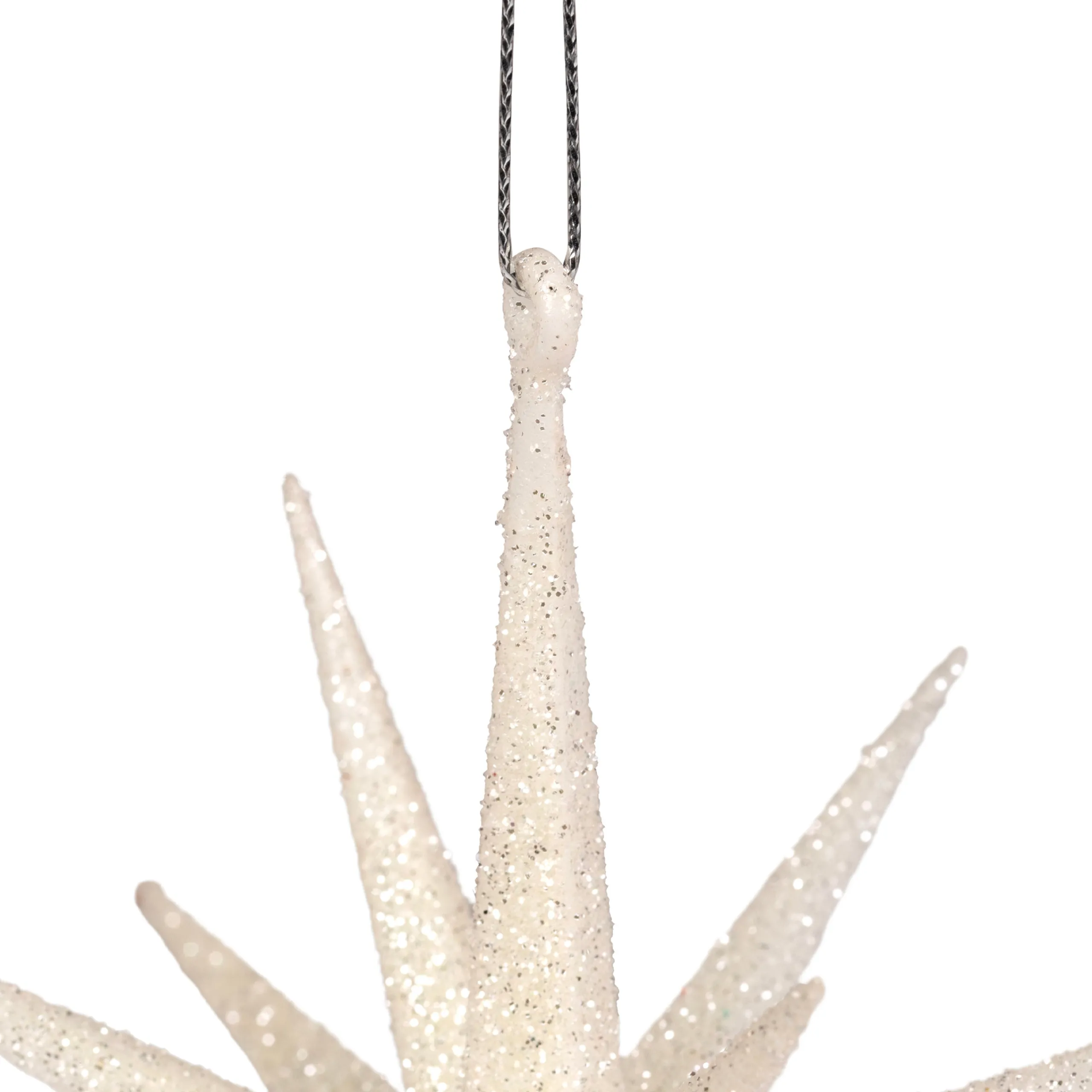 Bring That Wintry Feeling Indoors With This Stunning Ornament. It Displays A White Starburst, Accented With Silver Glitter, That Can Be Added To Your Ornament Collection To Display Every Year. This Timeless Ornament Will Add A Little Sparkle To Your Tree, Your Mantle, Your Windows, Or Anywhere You Wish To Add A Little Bit Of Flair.