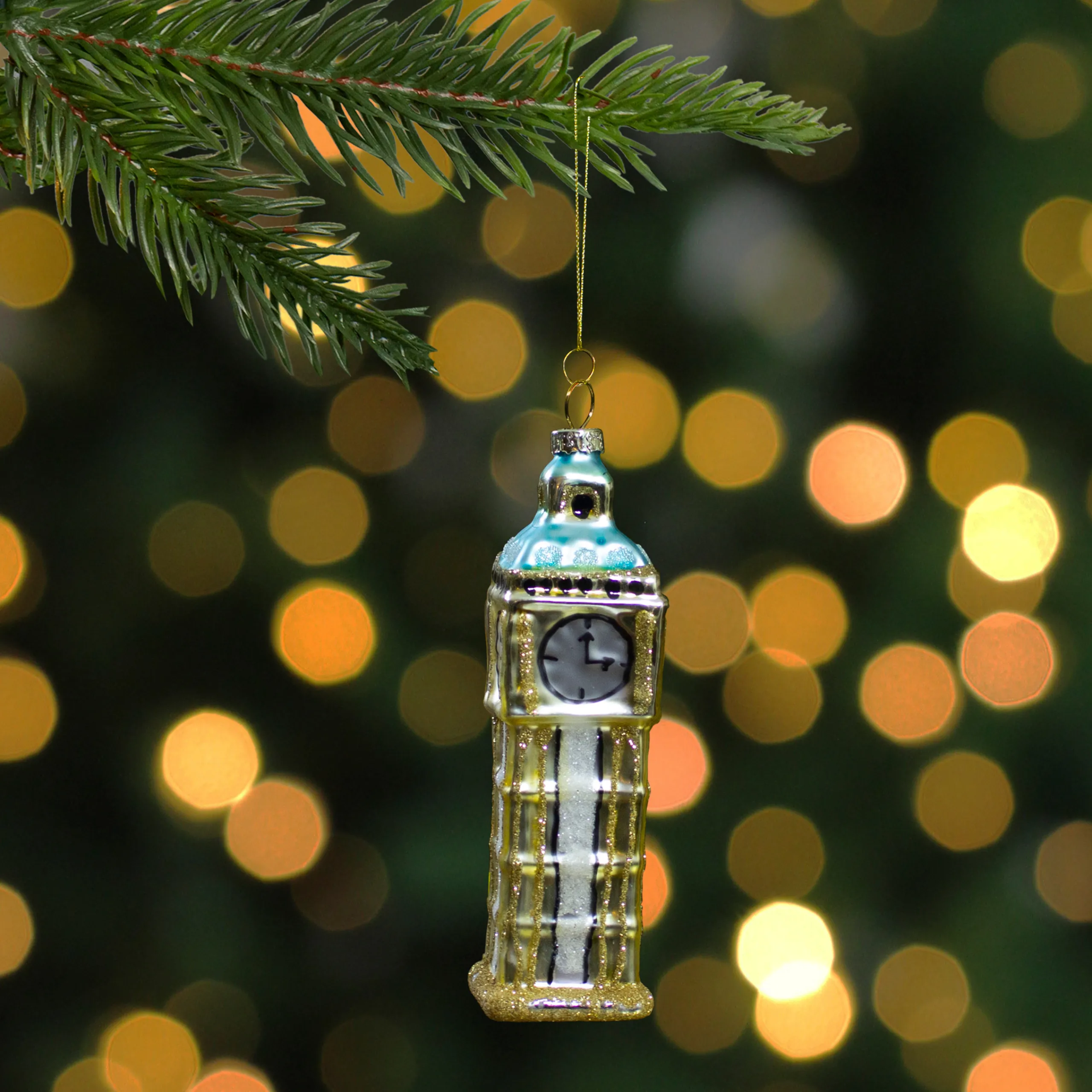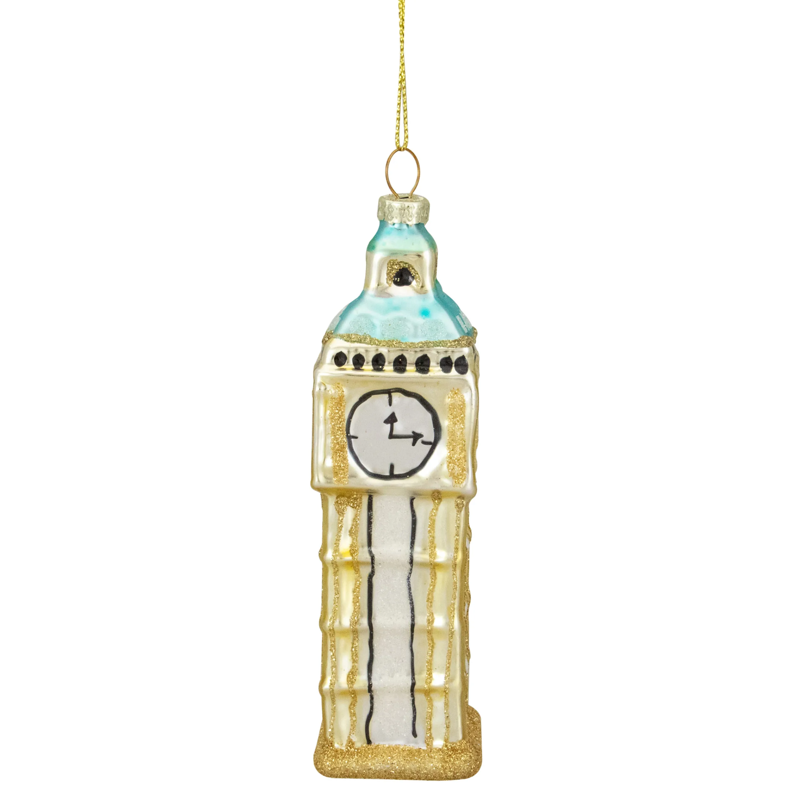 Chime In The Holidays With This Glass Big Ben Christmas Ornament! This Miniature Rendition Is A Great Addition To Your Holiday Decor And The Gold Glitter Embellishments Will Definitely Sparkle In Your Christmas Lights. Whether This Clock Is Added To Your Own Home, Used At A Themed Festivity, Or Given As A Gift, This Ornament Will Be The Perfect Addition!