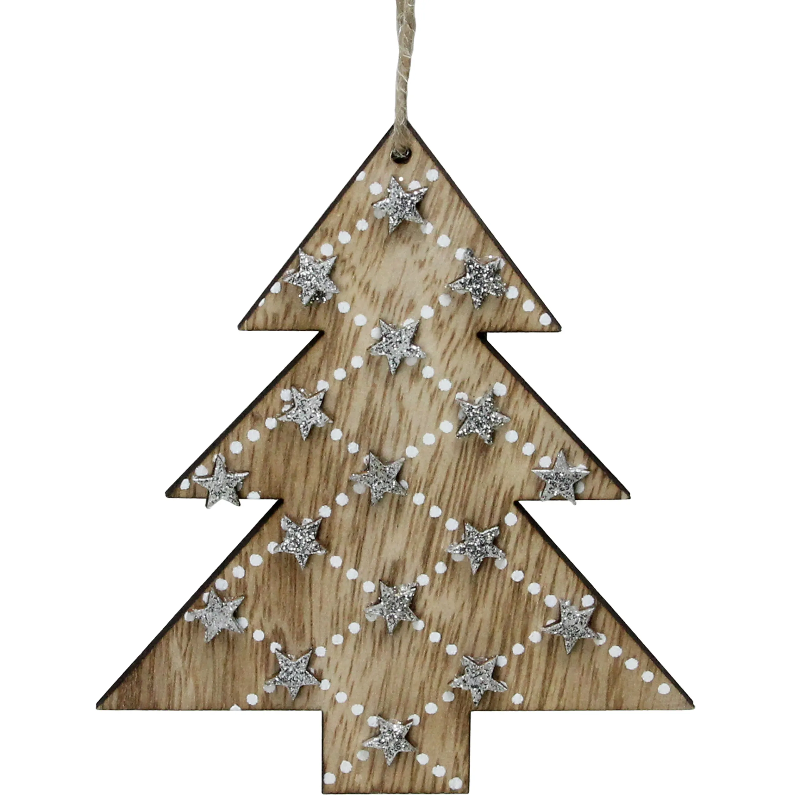 Tree Shaped Christmas Ornament Accented With Silver Glittered Stars