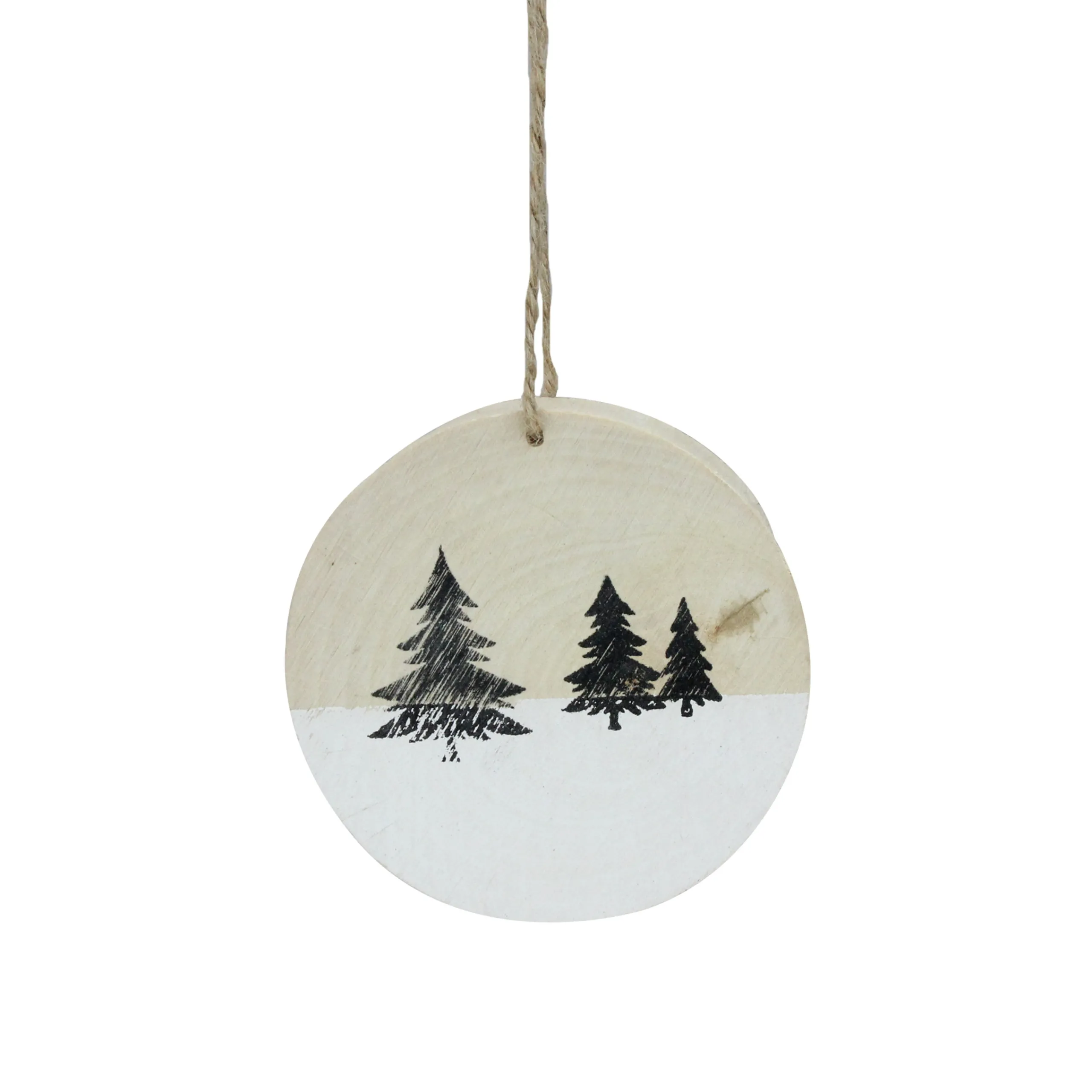 This Wonderful Wood Ornament, Lends A Cabin Feel By Adding That Rustic Touch To Your Holiday Decor. Features A Snowy Backdrop For Three Pine Trees, Bringing The Outdoors Into Your Decor. Perfect To Hang On Your Christmas Tree, From Your Mantel, Or Added To A Gift In Place Of A Bow.