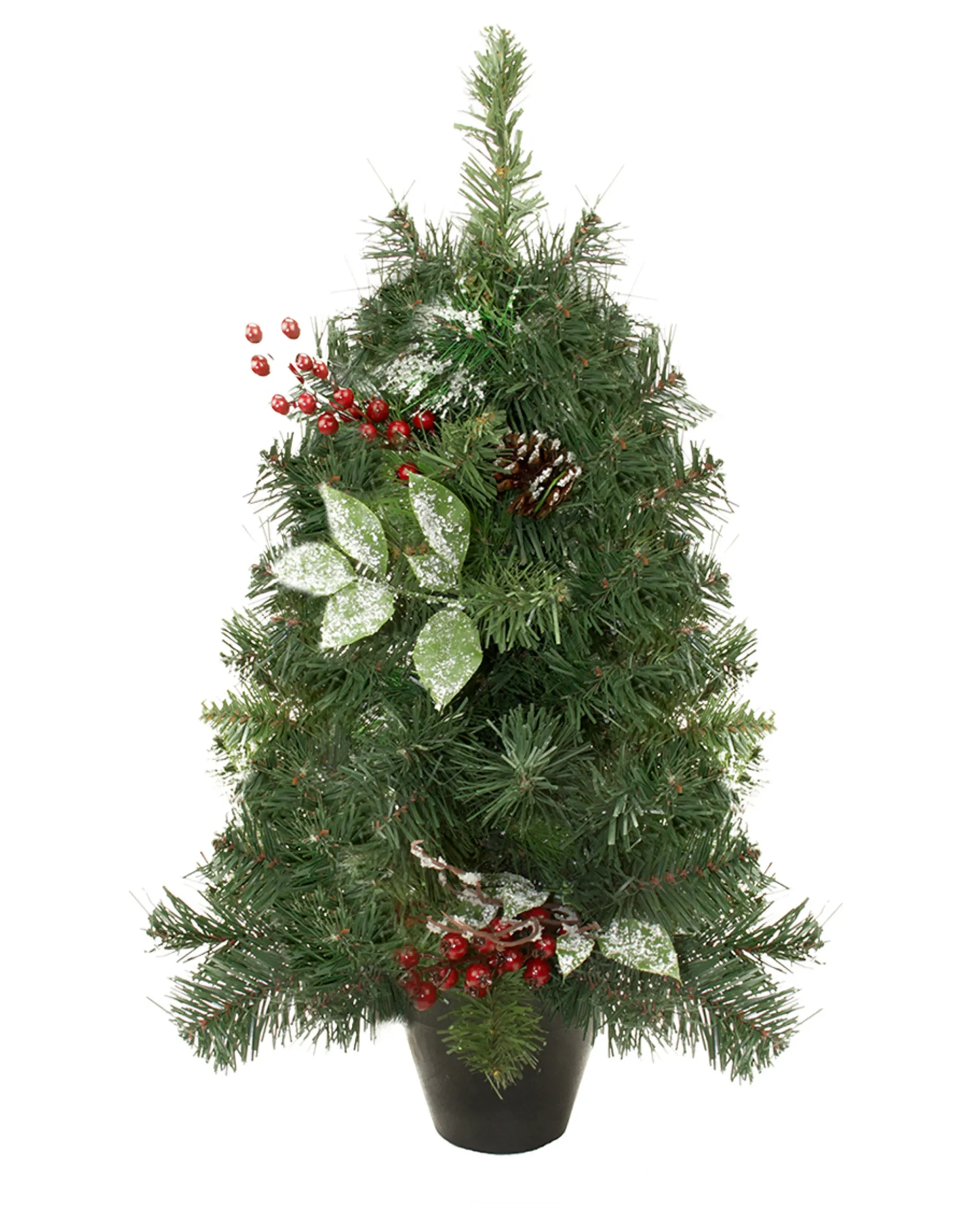 Northlight Unlit Traditional Trees>2′ Green Potted Pre-Decorated Pine Cone And Berry Medium Artificial Christmas Tree – Unlit