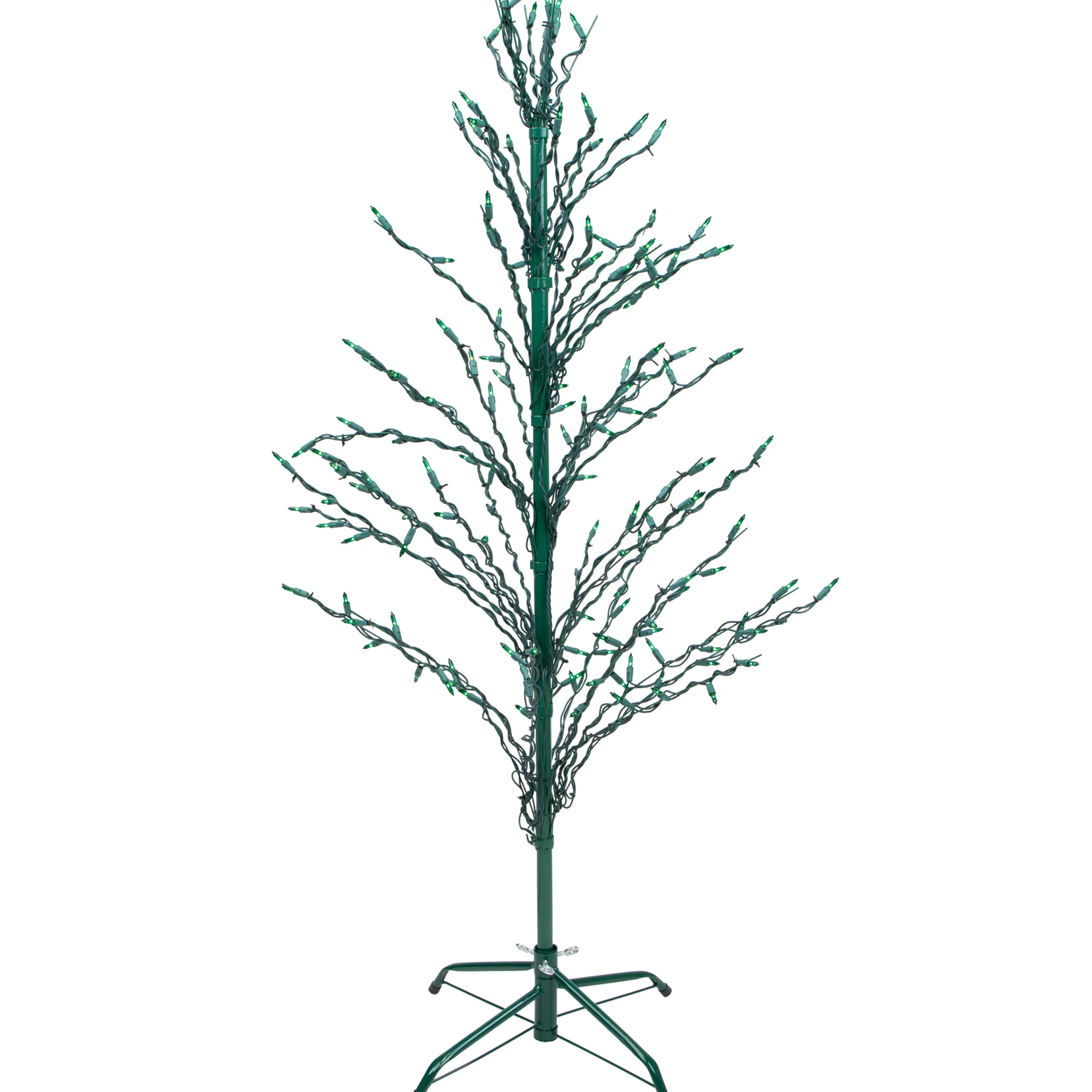 Northlight Yard Art Trees>4′ Pre-Lit Green Slim Profile Cascade Twig Christmas Tree – Green Lights