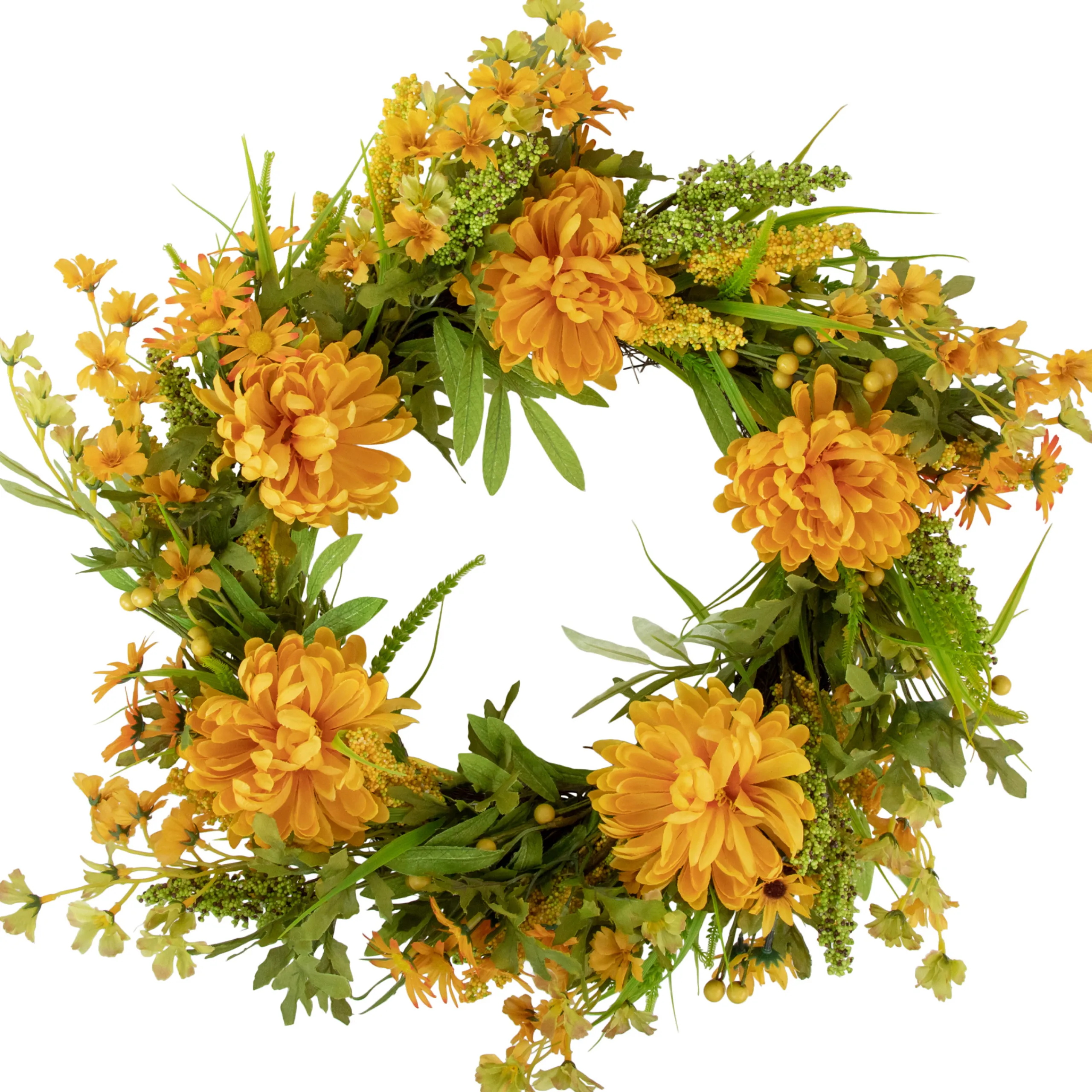 Capture The Feeling Of A Crisp Fall Day With This Beautiful Autumn Wreath. It Features Yellow Peonies, Berries, Wheat, And Green Foliage That Will Give A Pop Of Color To Your Home Decor. Display This Vibrant Wreath On Doors, Walls, Windows, Or Over Your Mantle.