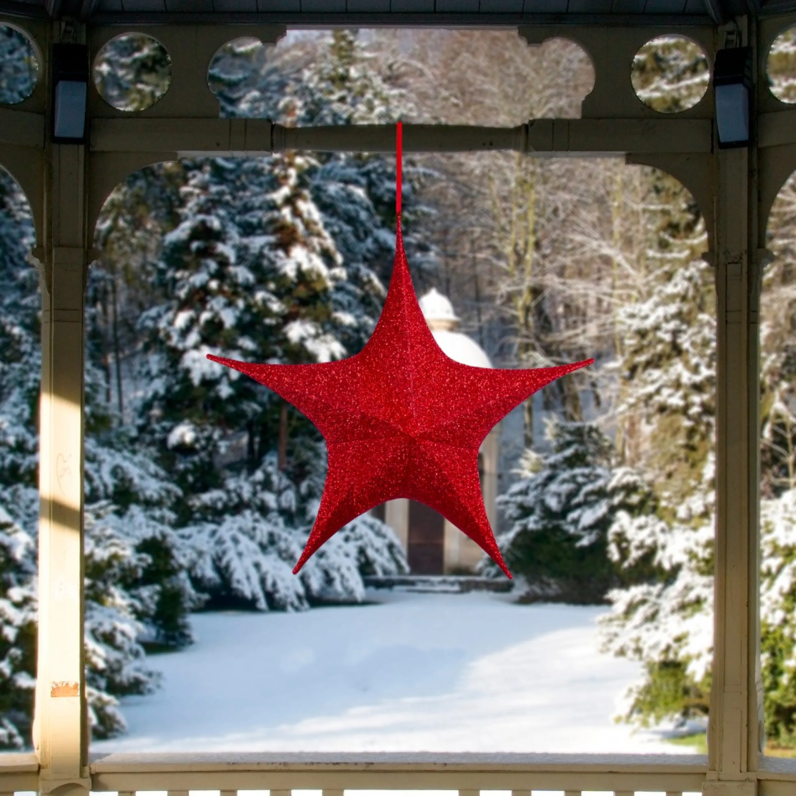 Outdoor Decorations*Northlight 25.5″ Red Tinsel Foldable Christmas Star Outdoor Decoration