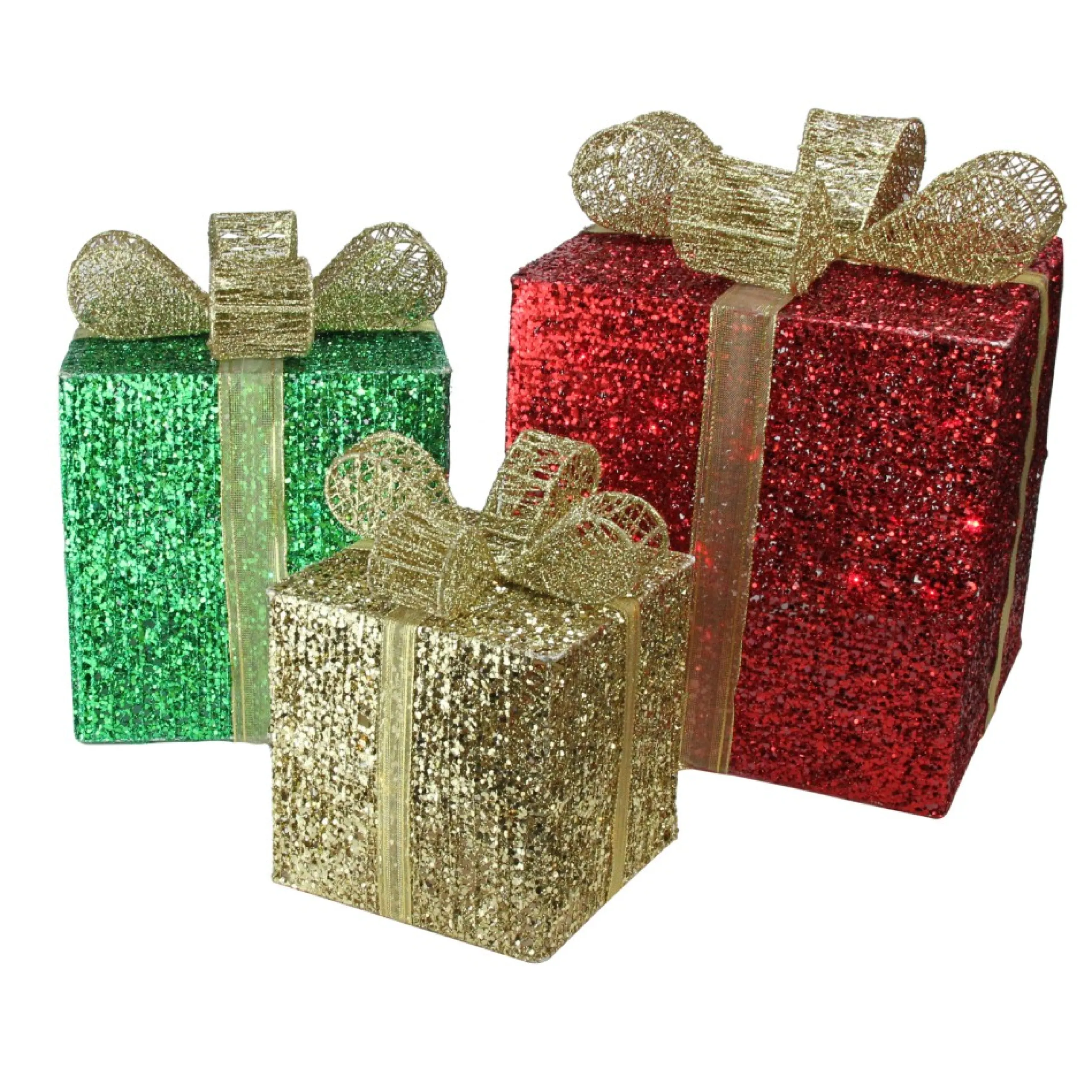Outdoor Decorations*Northlight Set Of 3 Red Pre-Lit Glittering Gift Boxes Christmas Outdoor Decor 15″